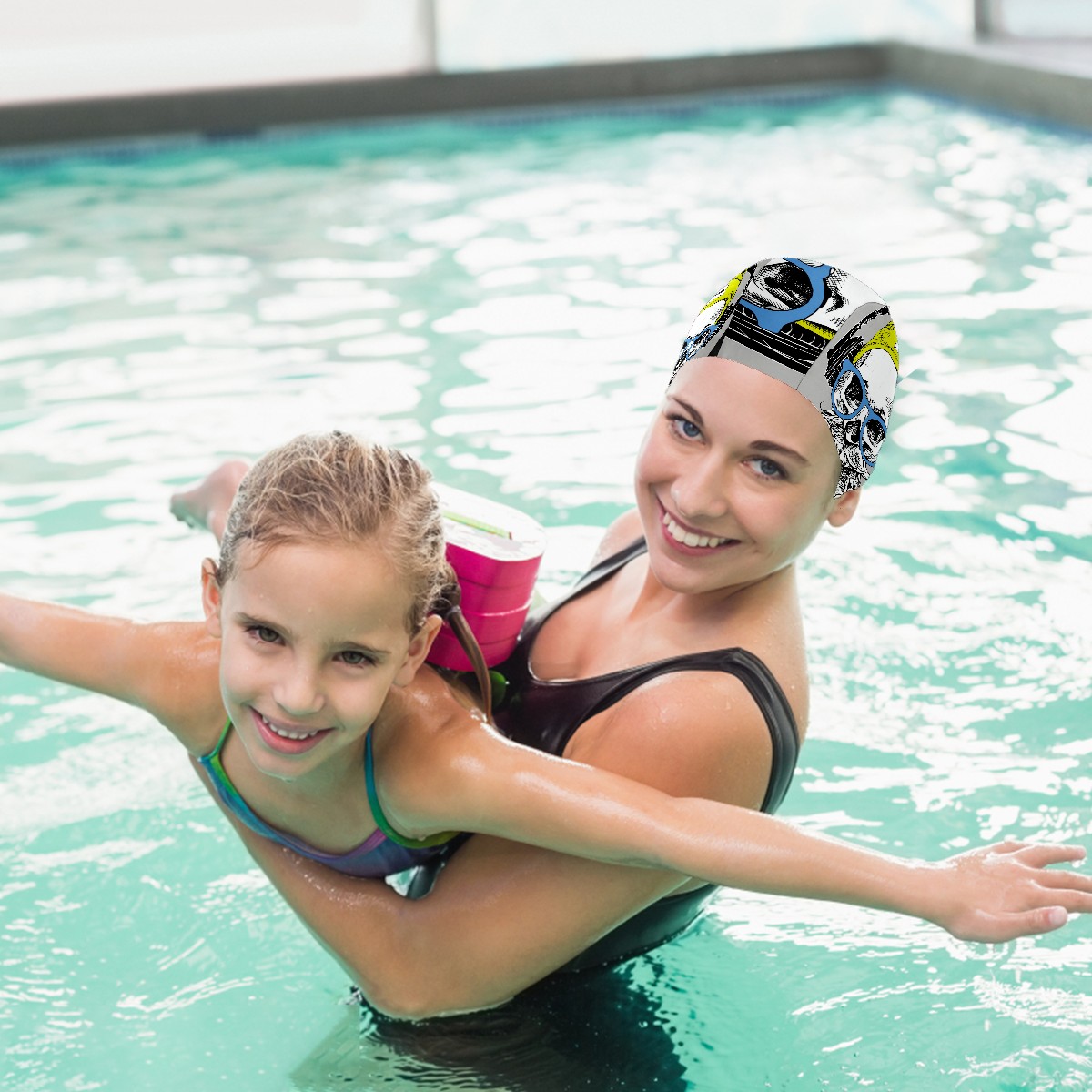 <p><b>Swimming Cap Hat Bathing Shower Hair Cover for Adult Men Women Youth Girls Boys</b></p><p><b>Material:&nbsp;</b><span style="color: rgb(51, 51, 51); font-size: 16px;">88% polyester,</span>12% spandex,&nbsp;</p><p><b>Size:</b>&nbsp;10 x 7.87 Inch (Cap height 7.87 inch, Cap stitching width 10 inch)</p><p><b>Weight:</b>&nbsp;20g</p><p><b>Product Feature:&nbsp;</b></p><p>-Swim cap design keeps hair&amp;ears dry, protecting your hair. This swimming cap is easier to put on and off than the silicone cap.It has a durable and elastic surface,and Anti-slip design</p><p>-Tie your hair up and put it into the swim cap gently, this swimming cap provide great fit for adults no matter you hair is long, short,thick or curly, the swim cap can totally wrap your hair and prevent water</p><p>-Fashionable print swim caps suitable for recreational non-professional swimming personnel, for adults and teenagers to wear</p><p><b>If you have any questions, please contact us.</b></p>