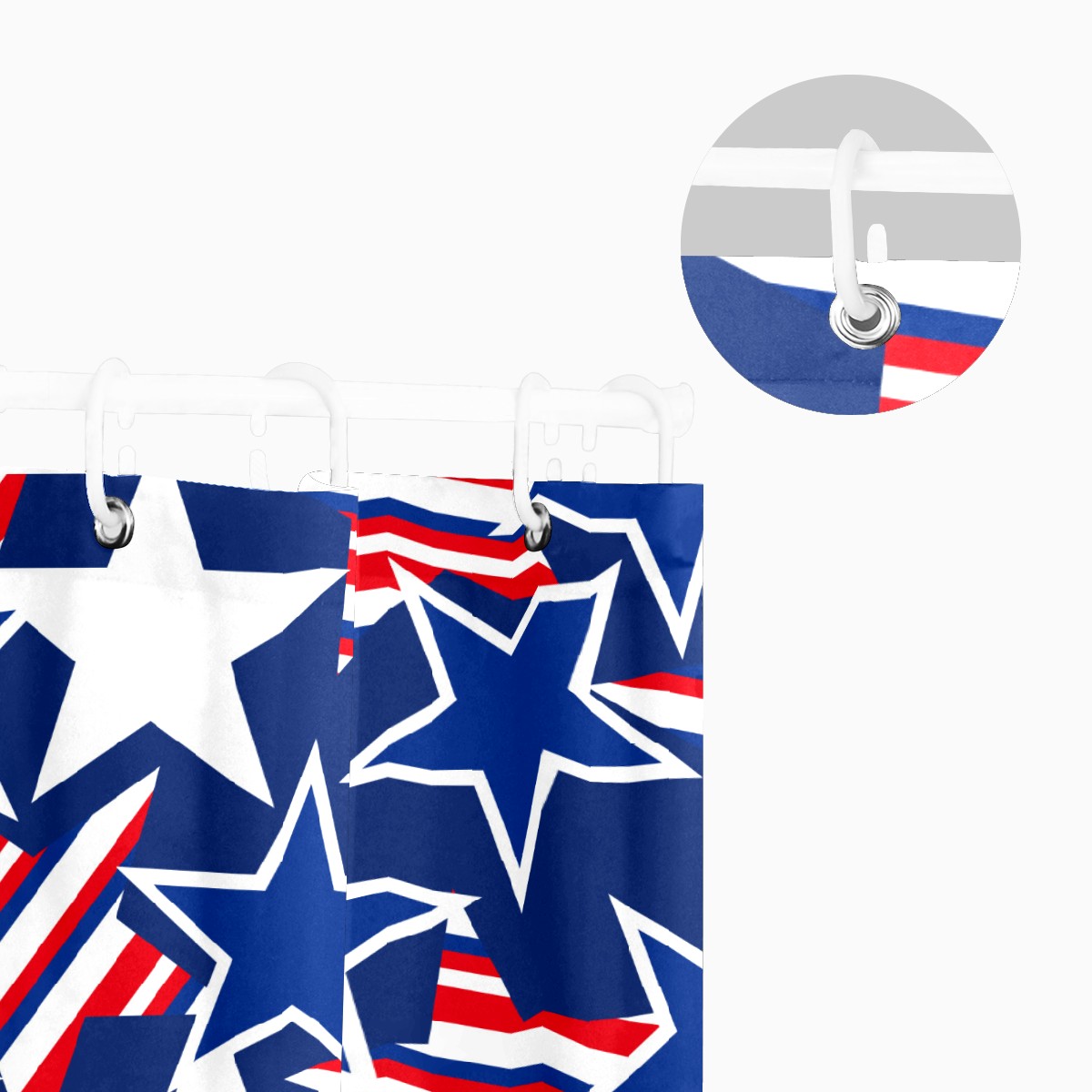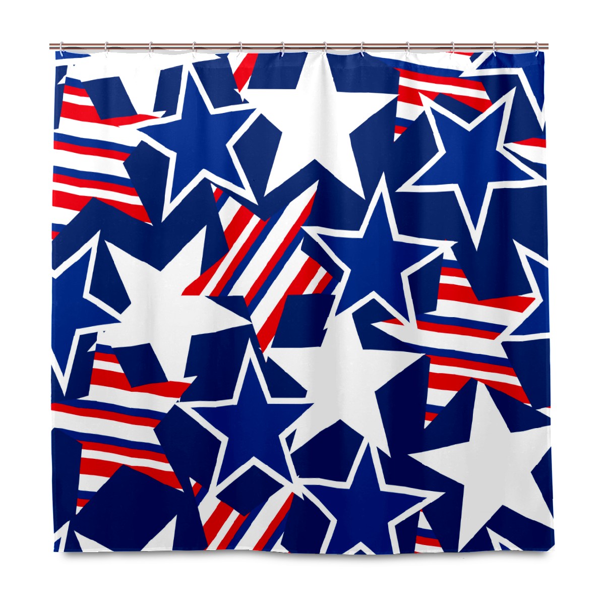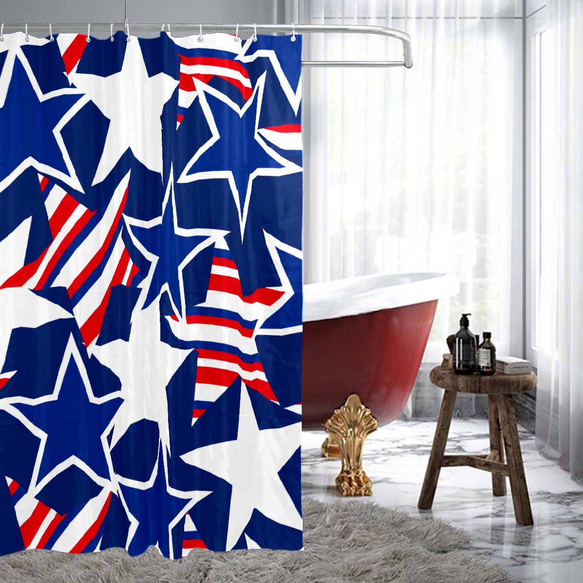 Shower Curtains for Bathroom Retro Red Blue Stars USA Pattern Waterproof Polyester 60 x 72 inches Bathroom Curtains for Girls Boys with 12 Hooks