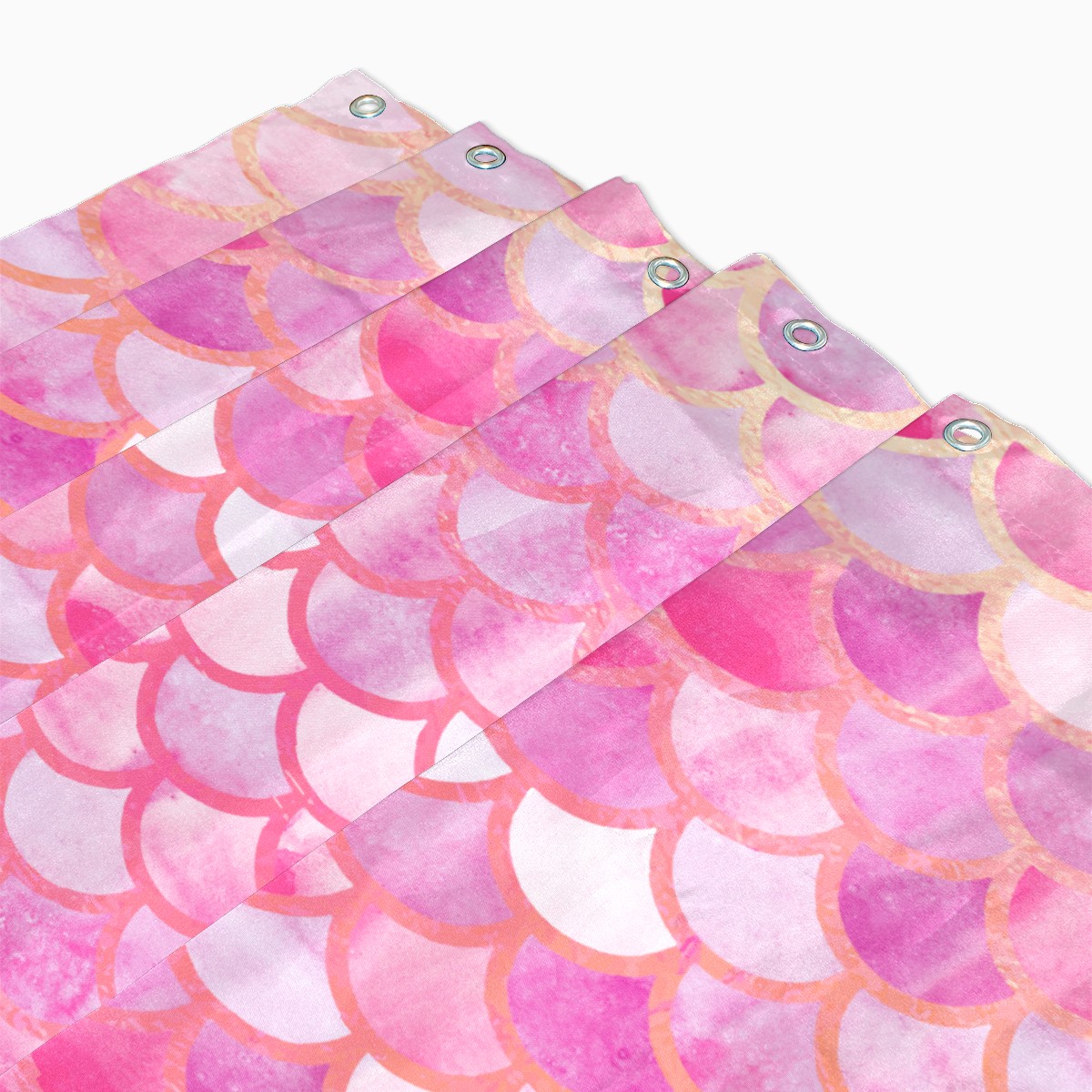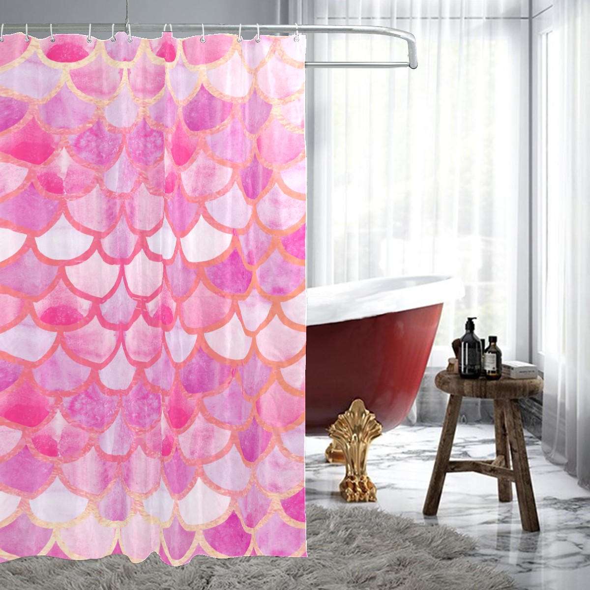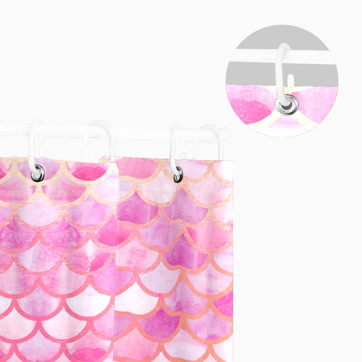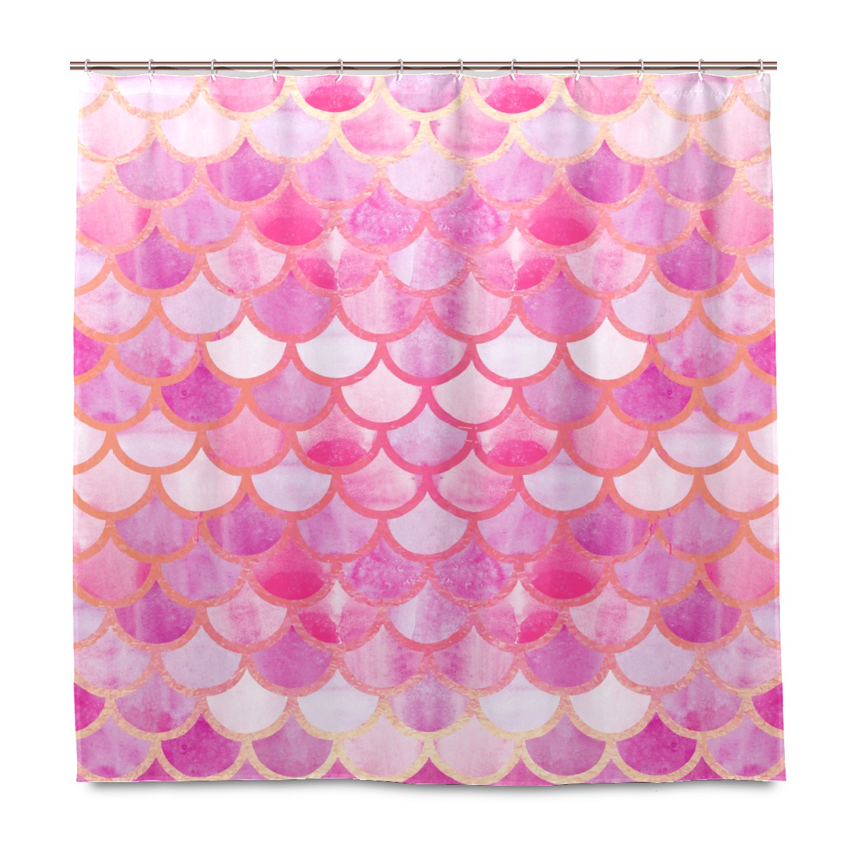 Shower Curtains for Bathroom Pink Watercolor Mermaid Scale Waterproof Polyester 60 x 72 inches Bathroom Curtains for Girls Boys with 12 Hooks