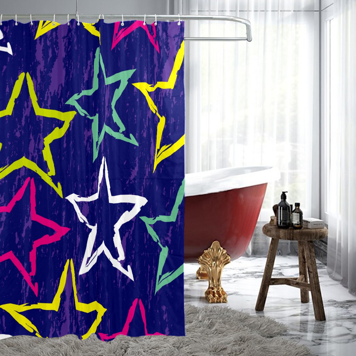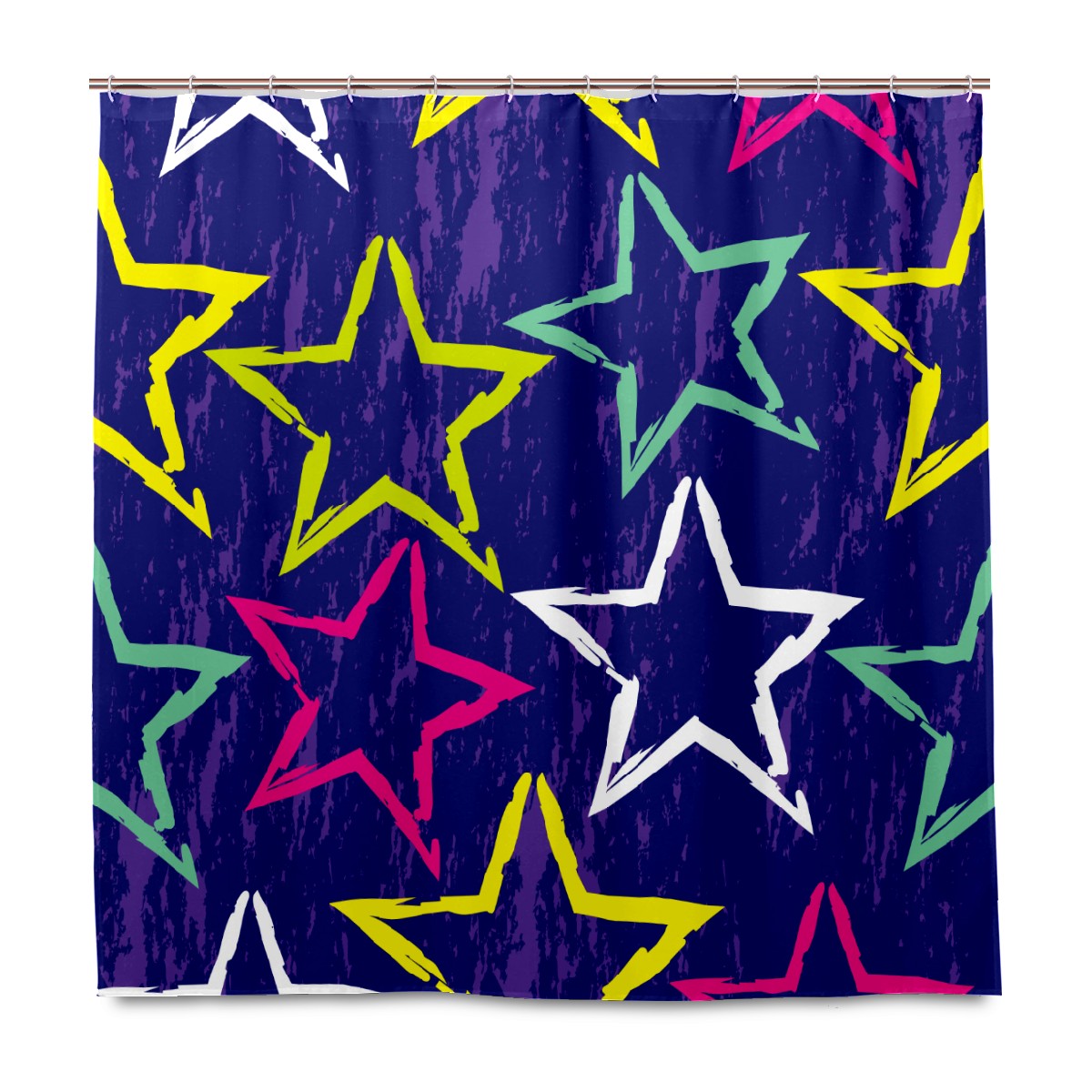 Shower Curtains for Bathroom Retro Colorful Rainbow Stars Pattern Waterproof Polyester 60 x 72 inches Bathroom Curtains for Girls Boys with 12 Hooks