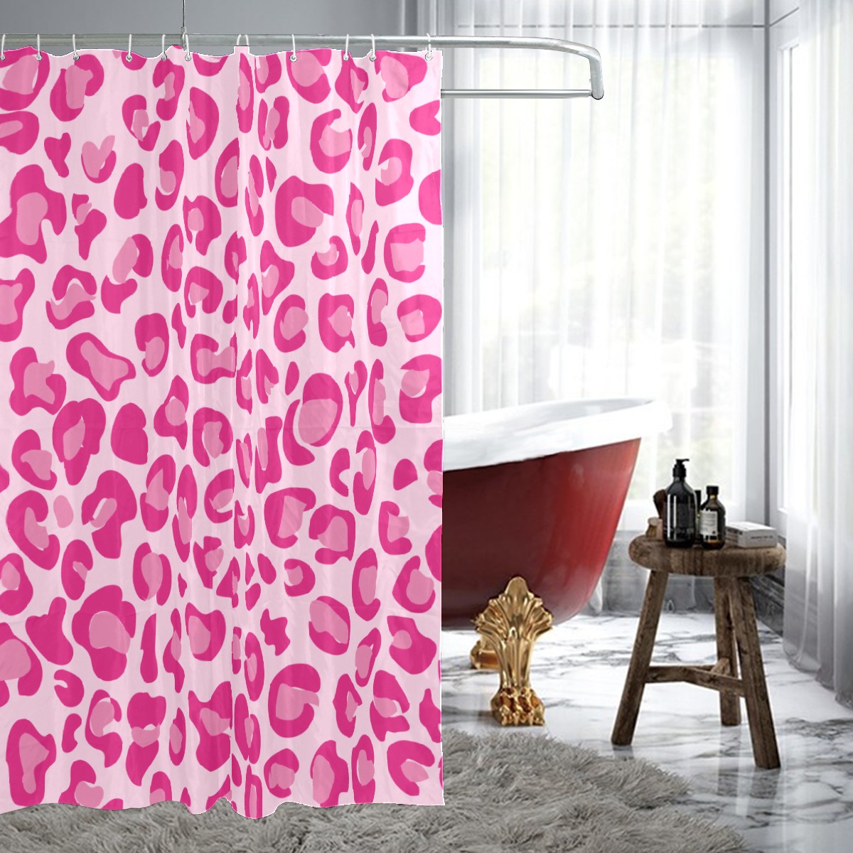 Shower Curtains for Bathroom Pink Leopard Fashion Pattern Waterproof Polyester 60 x 72 inches Bathroom Curtains for Girls Boys with 12 Hooks