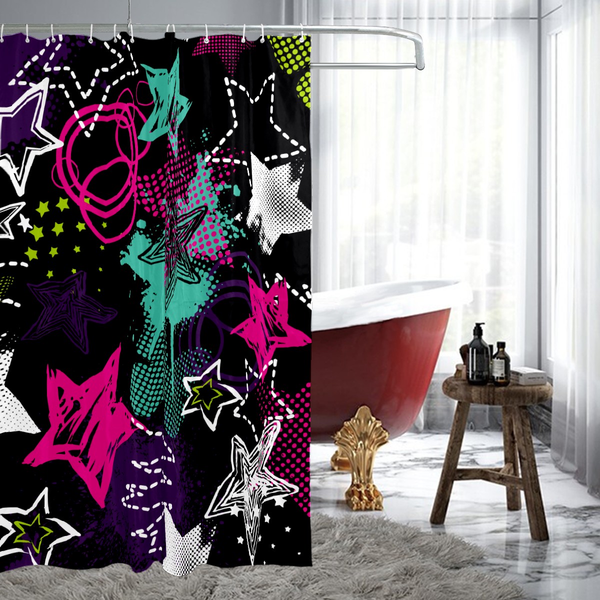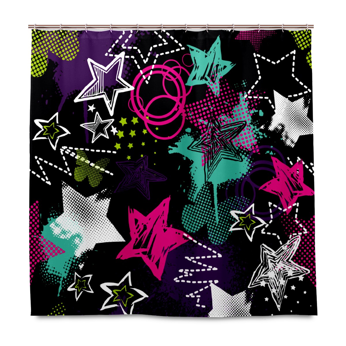 Shower Curtains for Bathroom Colorful Stars Geomtric Pattern Waterproof Polyester 60 x 72 inches Bathroom Curtains for Girls Boys with 12 Hooks