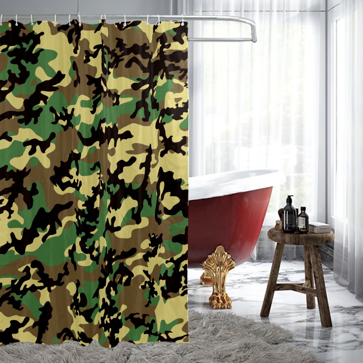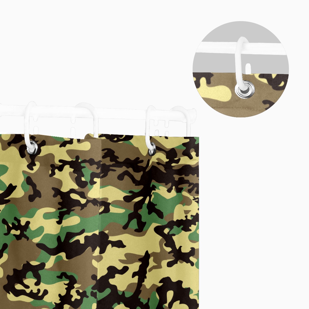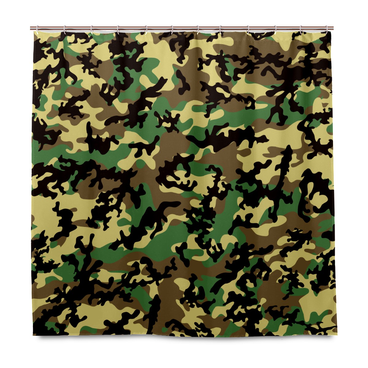 Shower Curtains for Bathroom Green Army Camo Geometric Pattern Waterproof Polyester 60 x 72 inches Bathroom Curtains for Girls Boys with 12 Hooks