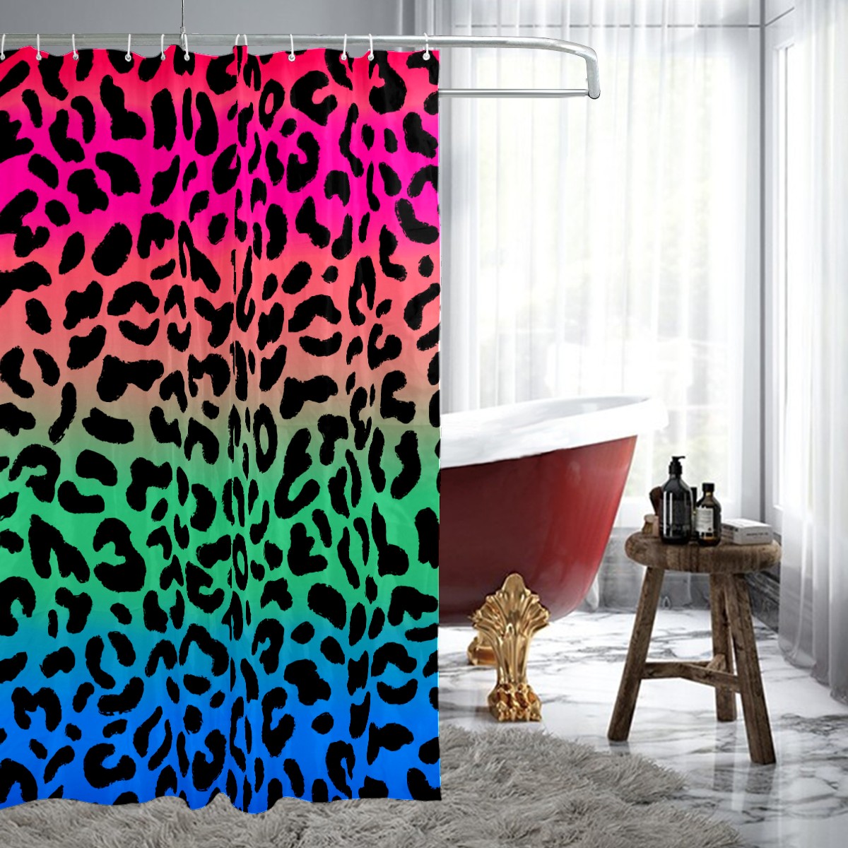 Shower Curtains for Bathroom Colorful Leopard Pattern Waterproof Polyester 60 x 72 inches Bathroom Curtains for Girls Boys with 12 Hooks