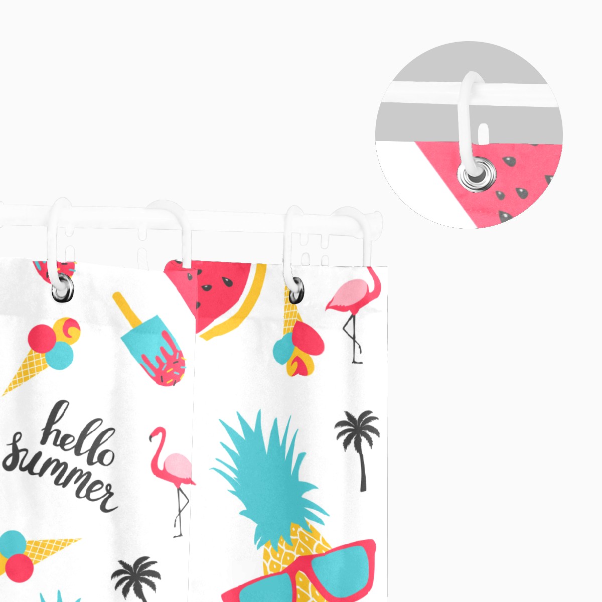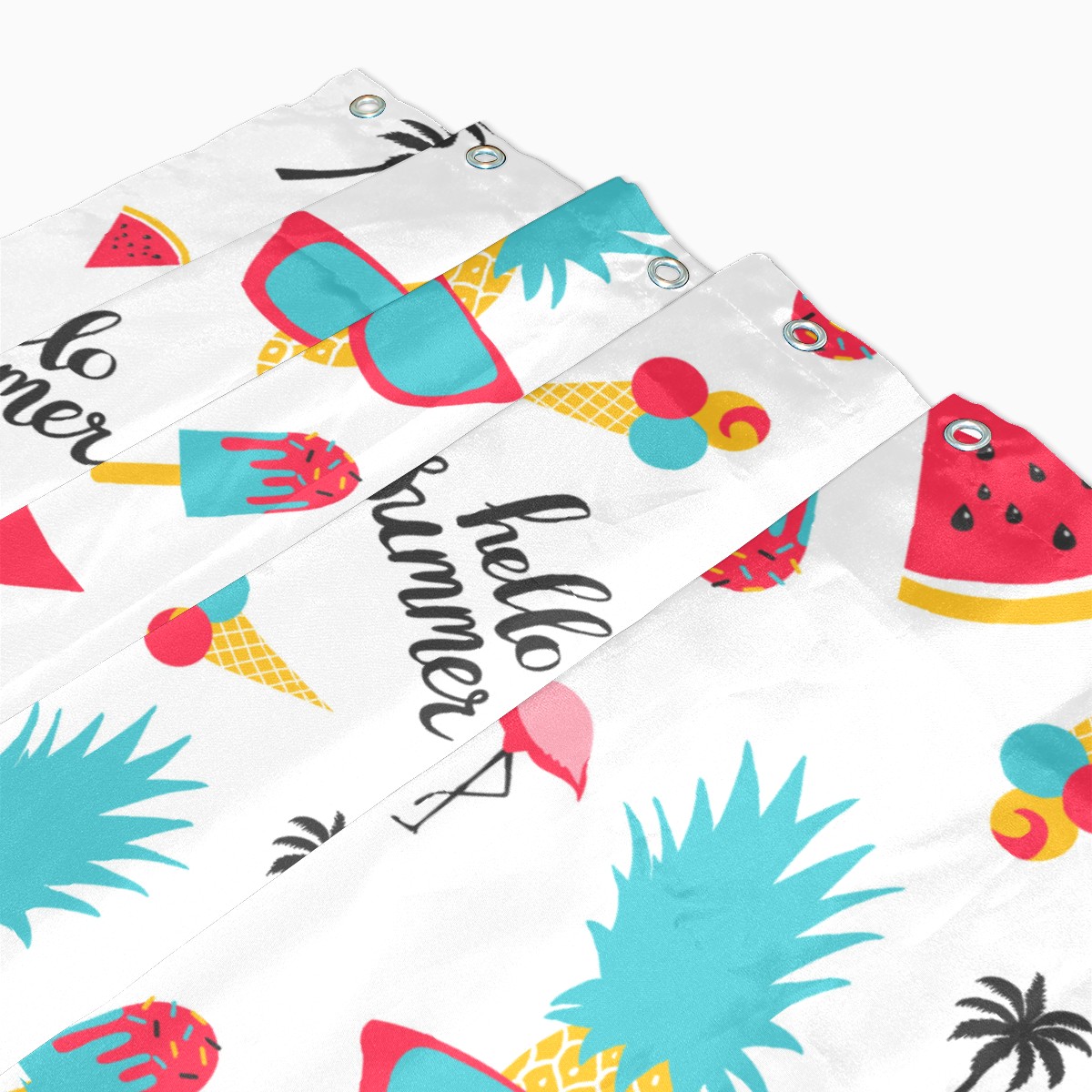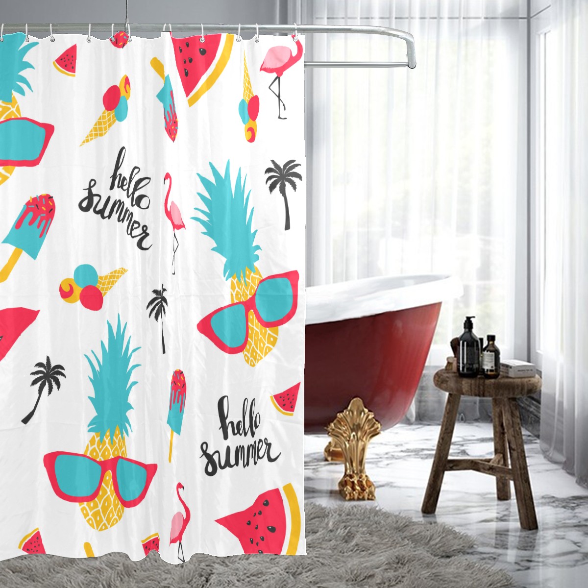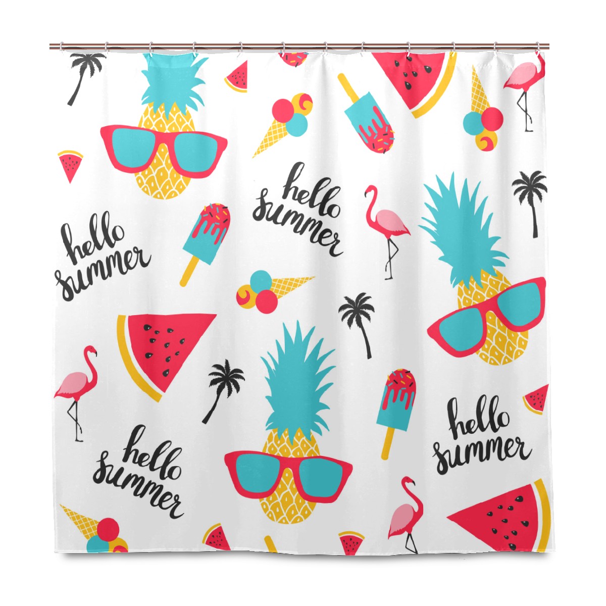 Shower Curtains for Bathroom Hello Summer Pineapple Flamingo Watermelon Waterproof Polyester 60 x 72 inches Bathroom Curtains for Girls Boys with 12 Hooks