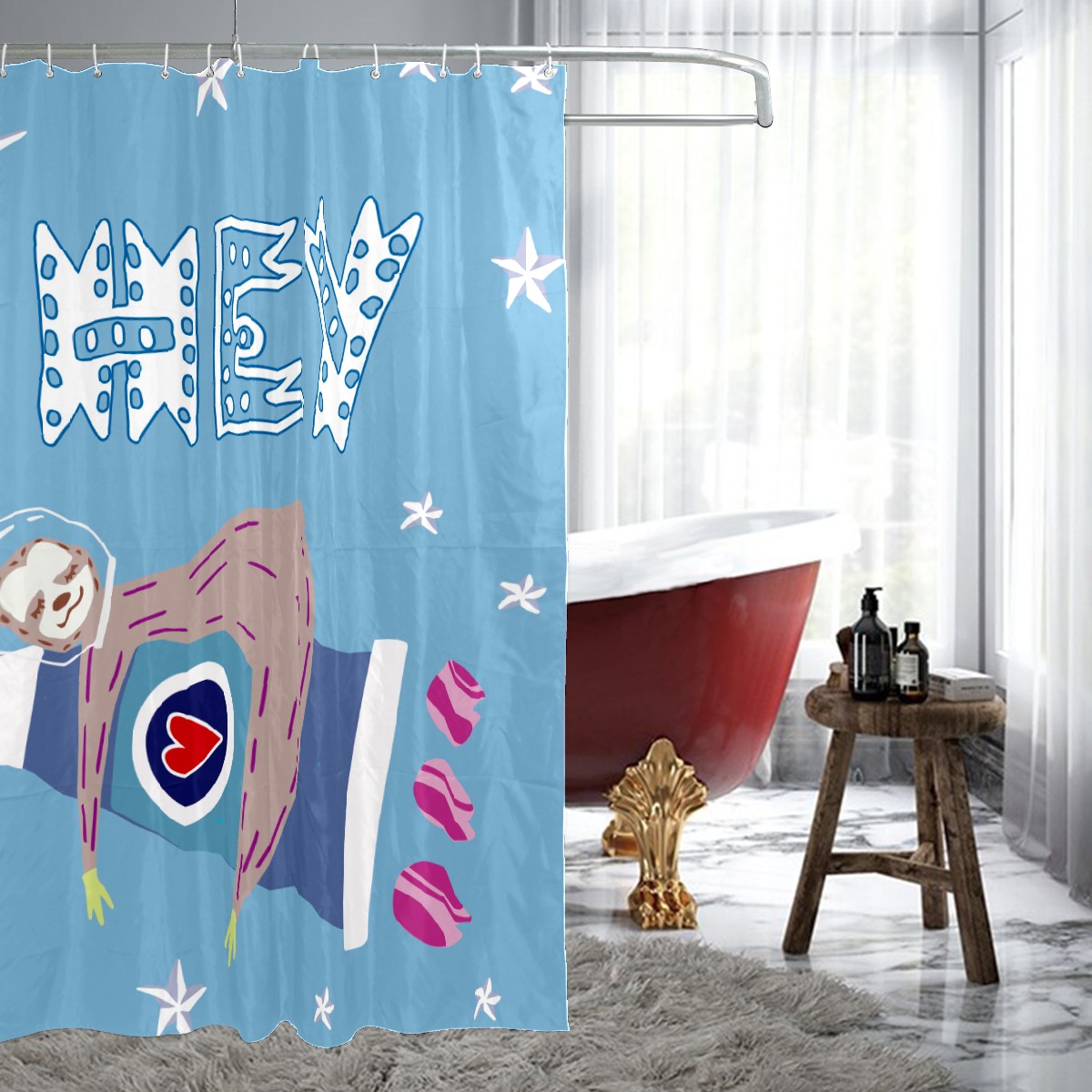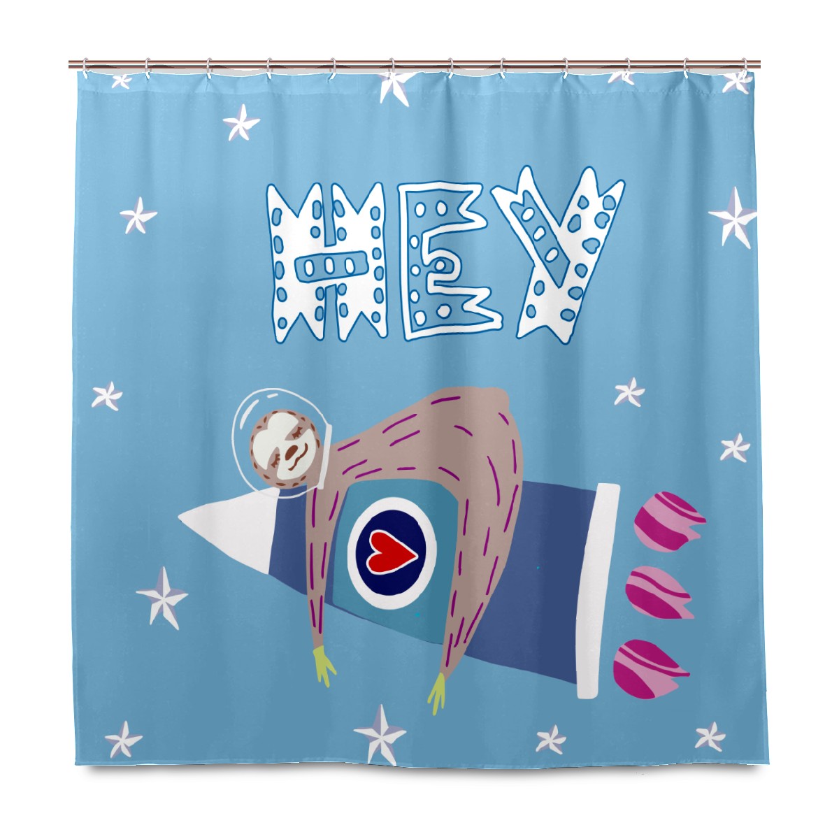 Shower Curtains for Bathroom Funny Sloth With Rockets Hey Waterproof Polyester 60 x 72 inches Bathroom Curtains for Girls Boys with 12 Hooks