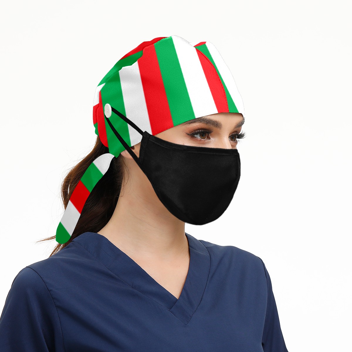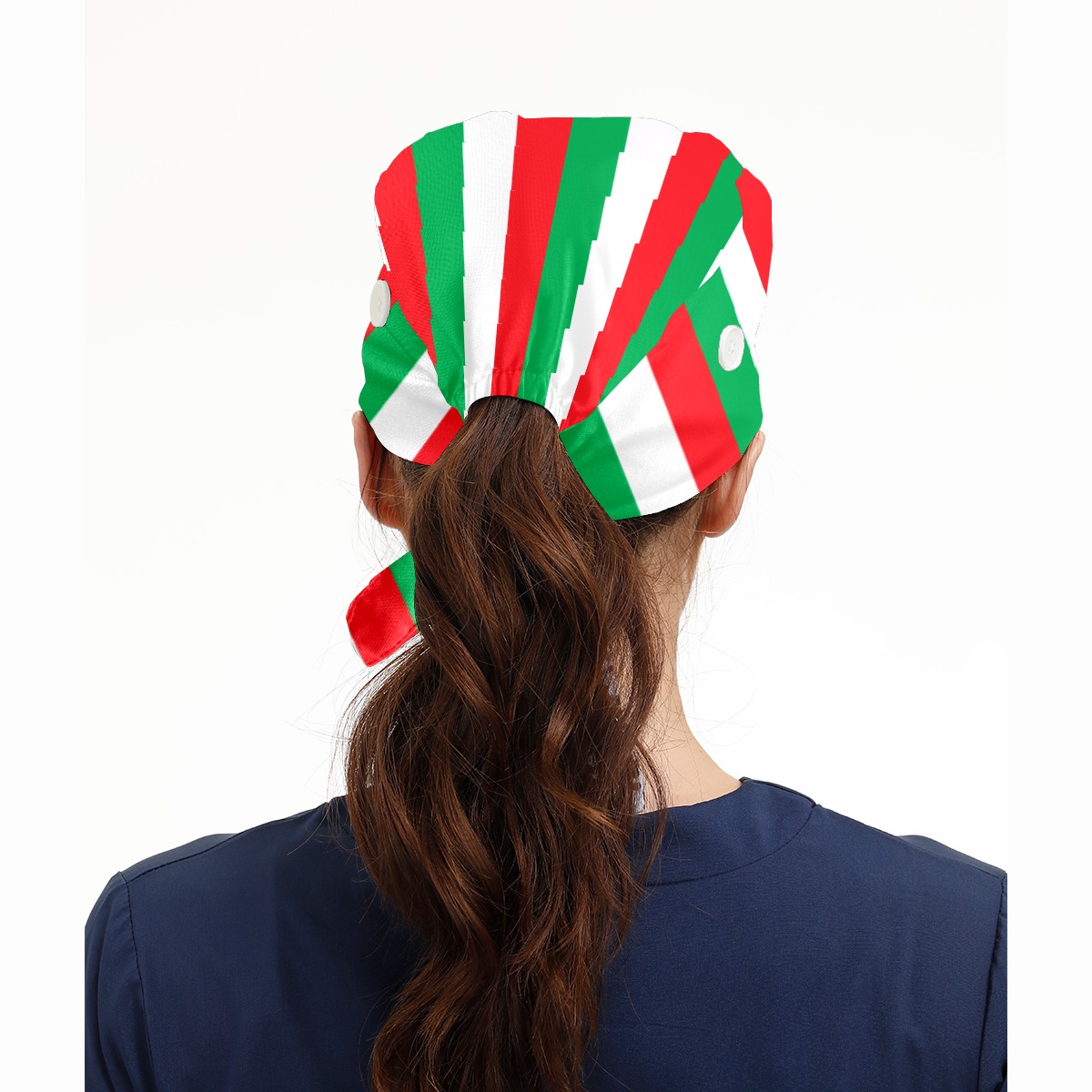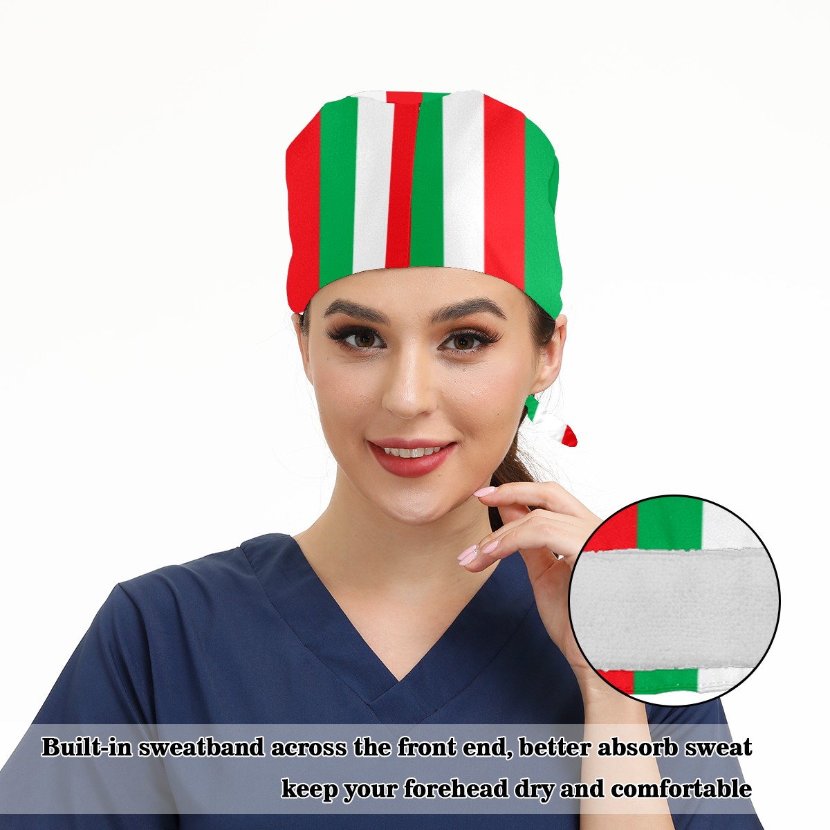 One Size Working Cap for Women Men Sweatband Adjustable Tie Back Printed Headwear Green White Red Italian Flag