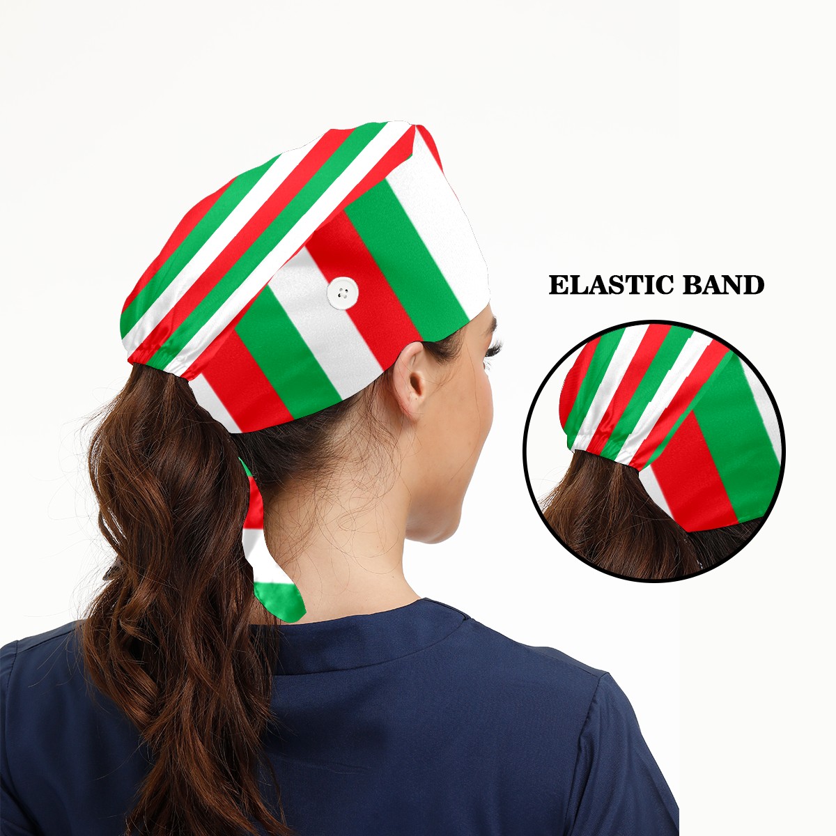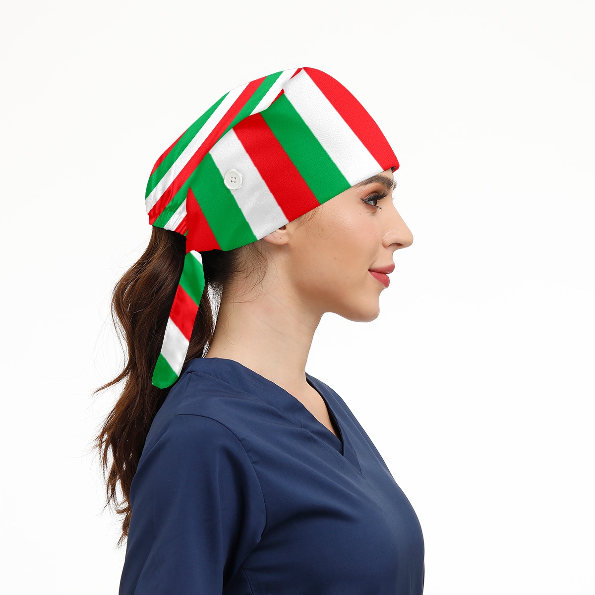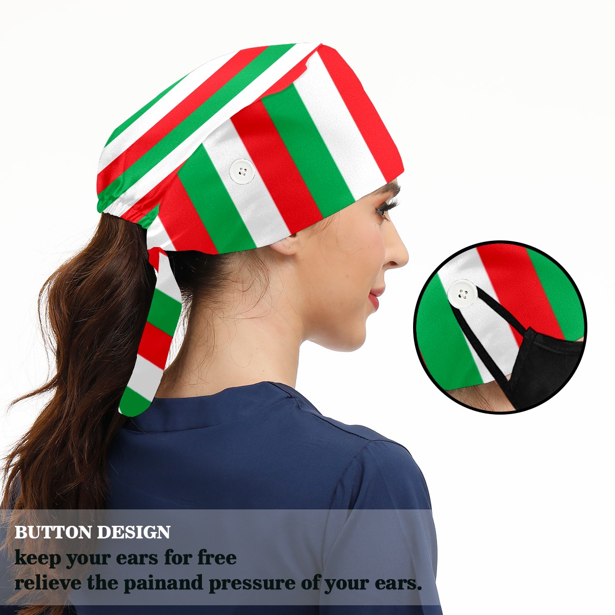 One Size Working Cap for Women Men Sweatband Adjustable Tie Back Printed Headwear Green White Red Italian Flag