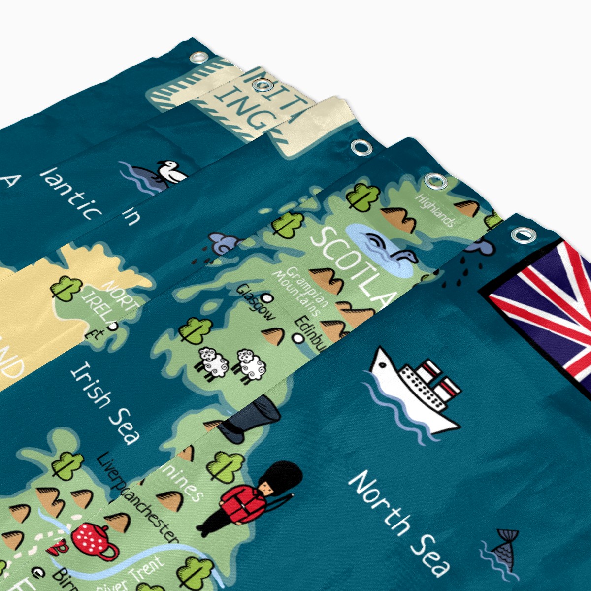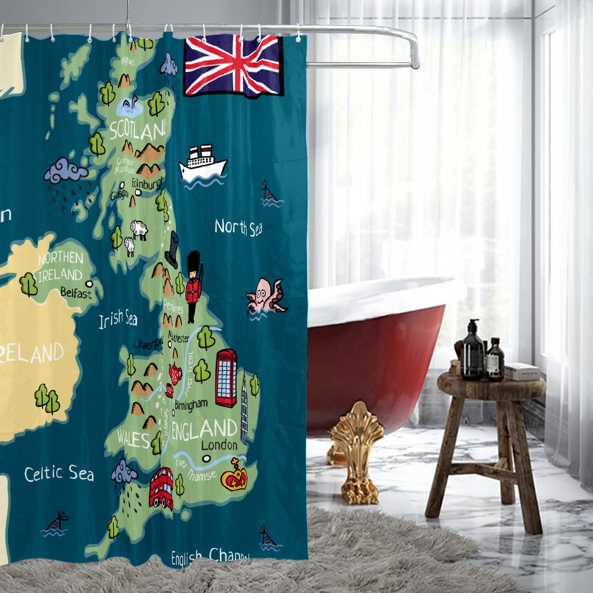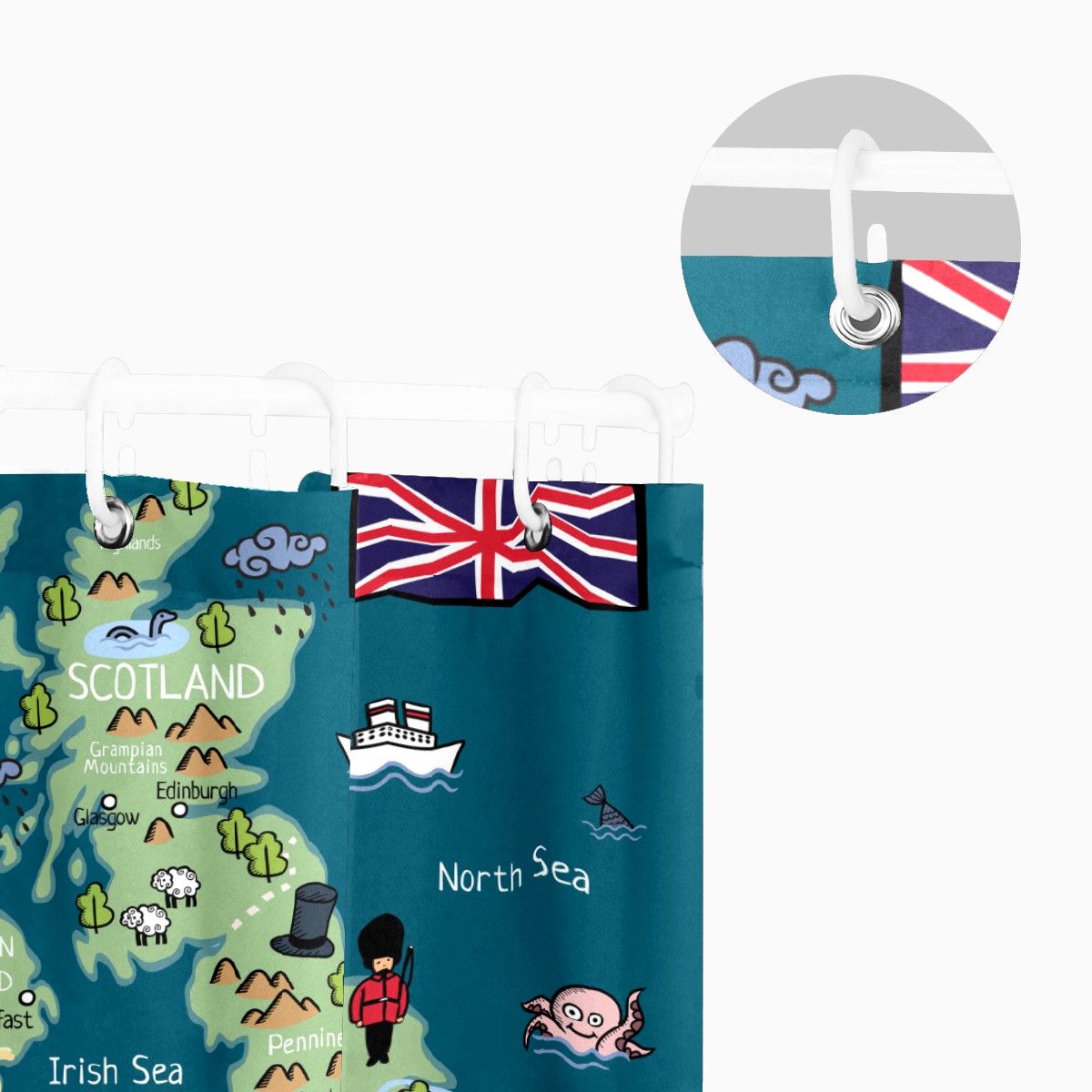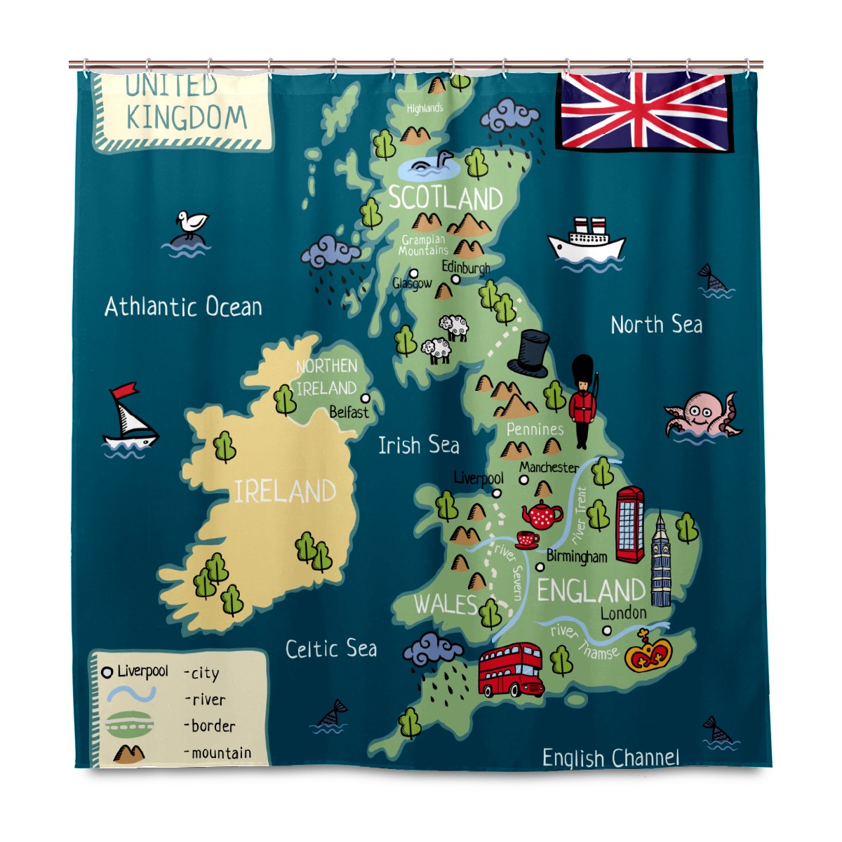 Shower Curtains for Bathroom Funny Cartoon UK United Kingdom Map Waterproof Polyester 60 x 72 inches Bathroom Curtains for Girls Boys with 12 Hooks