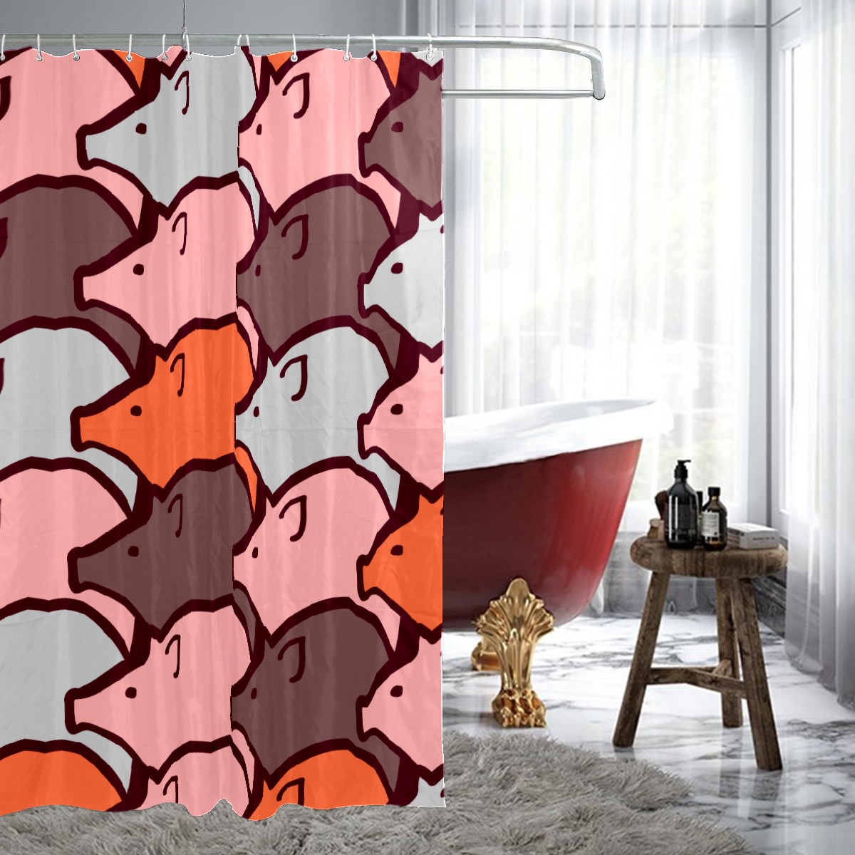 Shower Curtains for Bathroom Funny Cartoon Pig Pattern Waterproof Polyester 60 x 72 inches Bathroom Curtains for Girls Boys with 12 Hooks