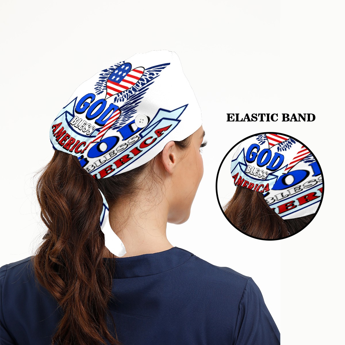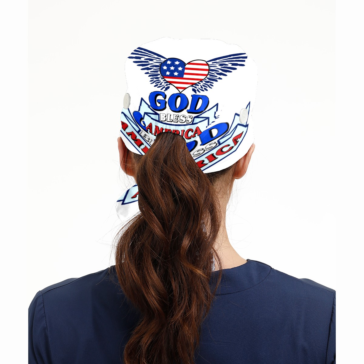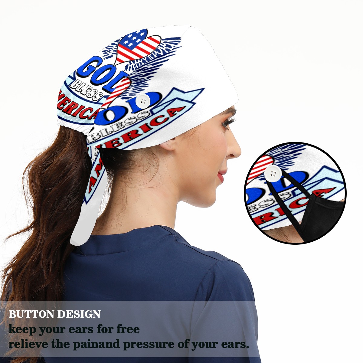 One Size Working Cap for Women Men Sweatband Adjustable Tie Back Printed Headwear God Bless American With Heart Flag