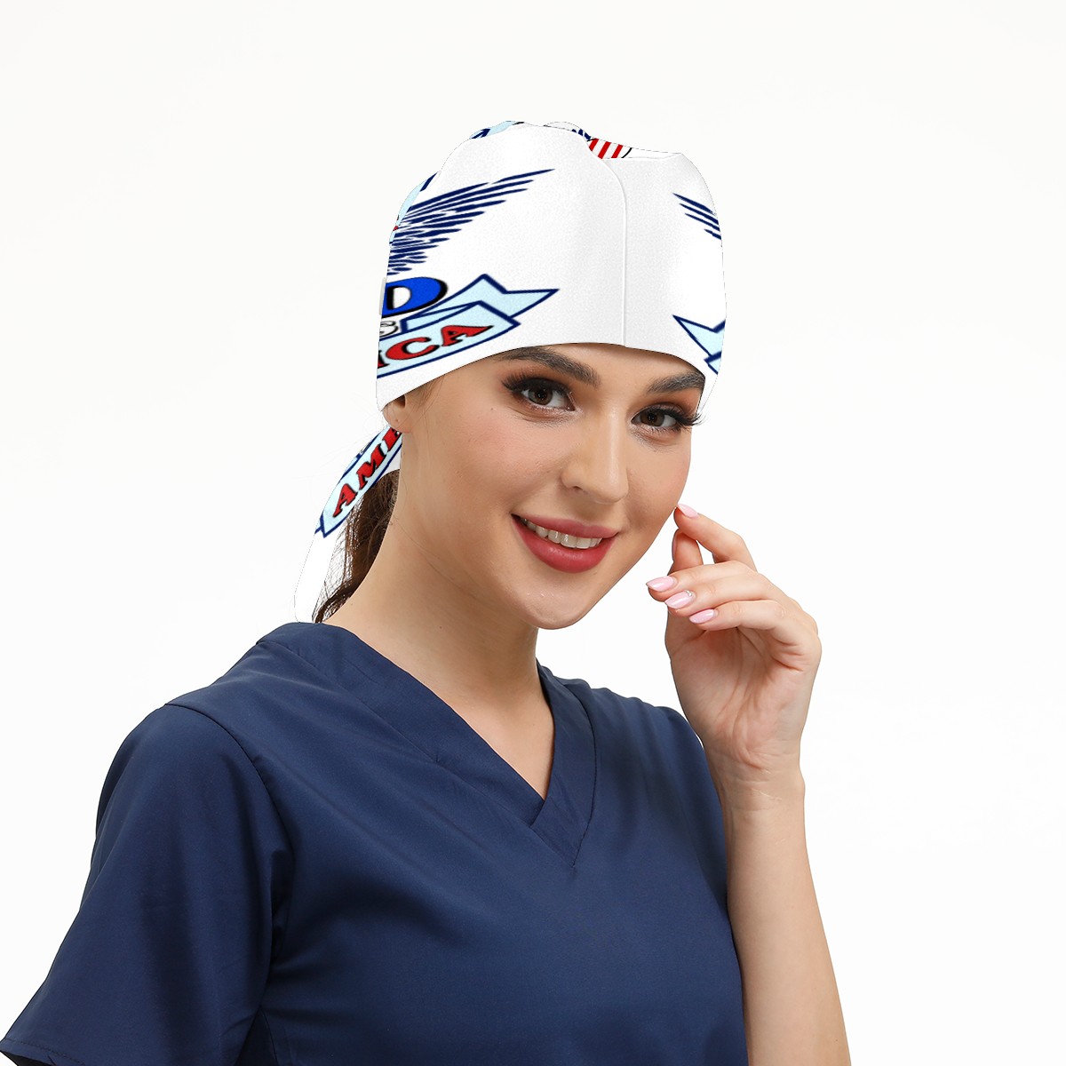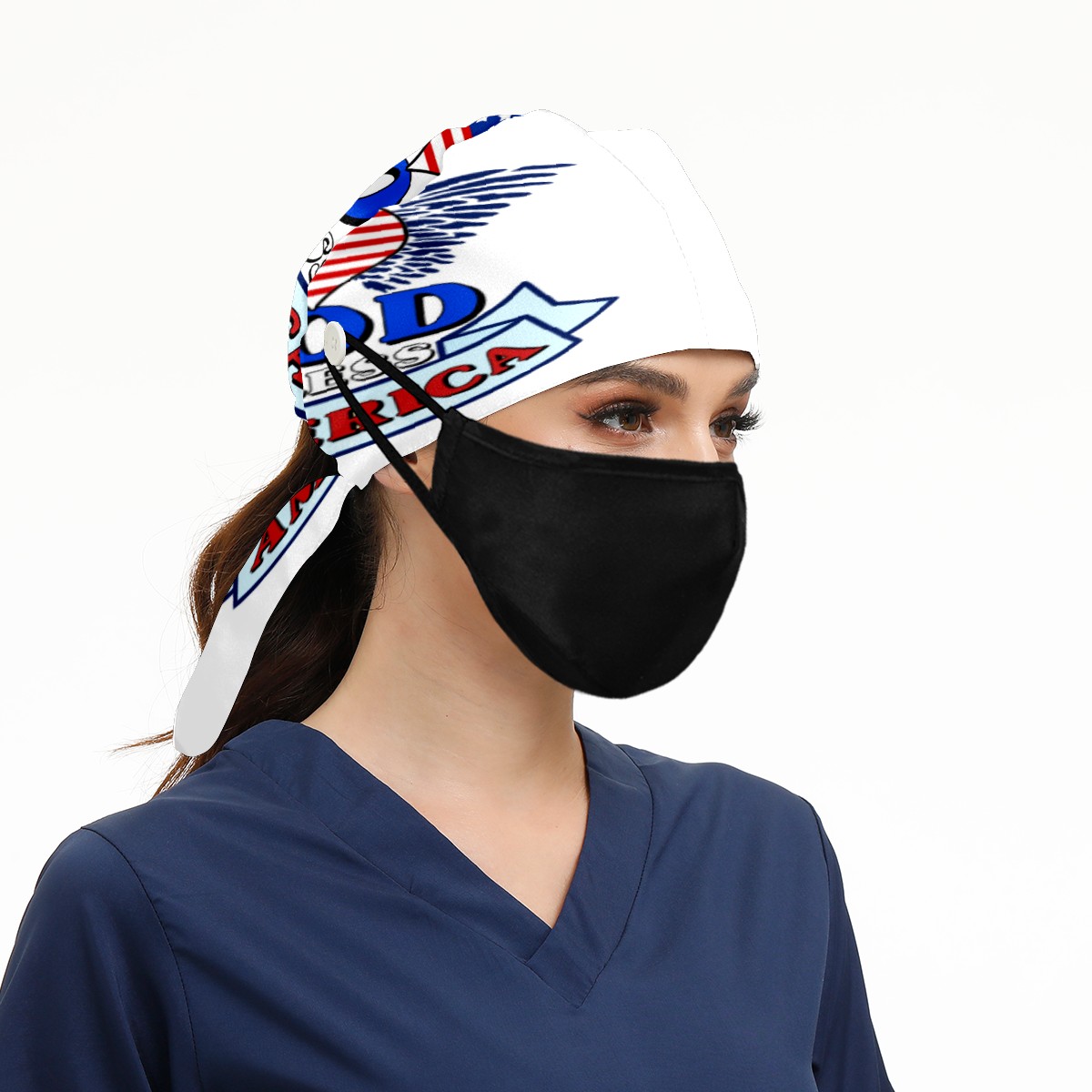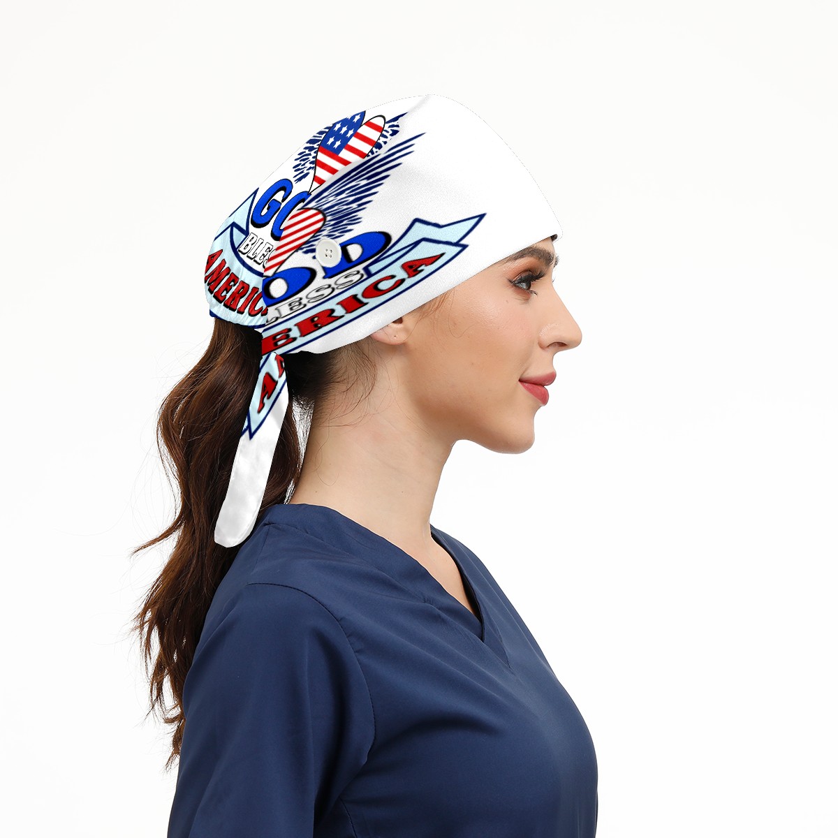 One Size Working Cap for Women Men Sweatband Adjustable Tie Back Printed Headwear God Bless American With Heart Flag