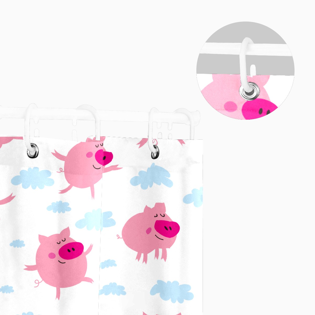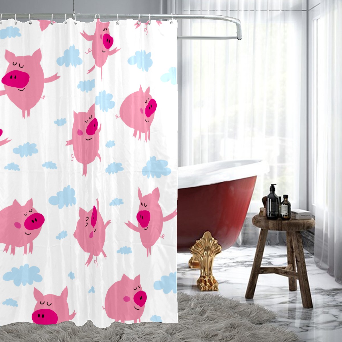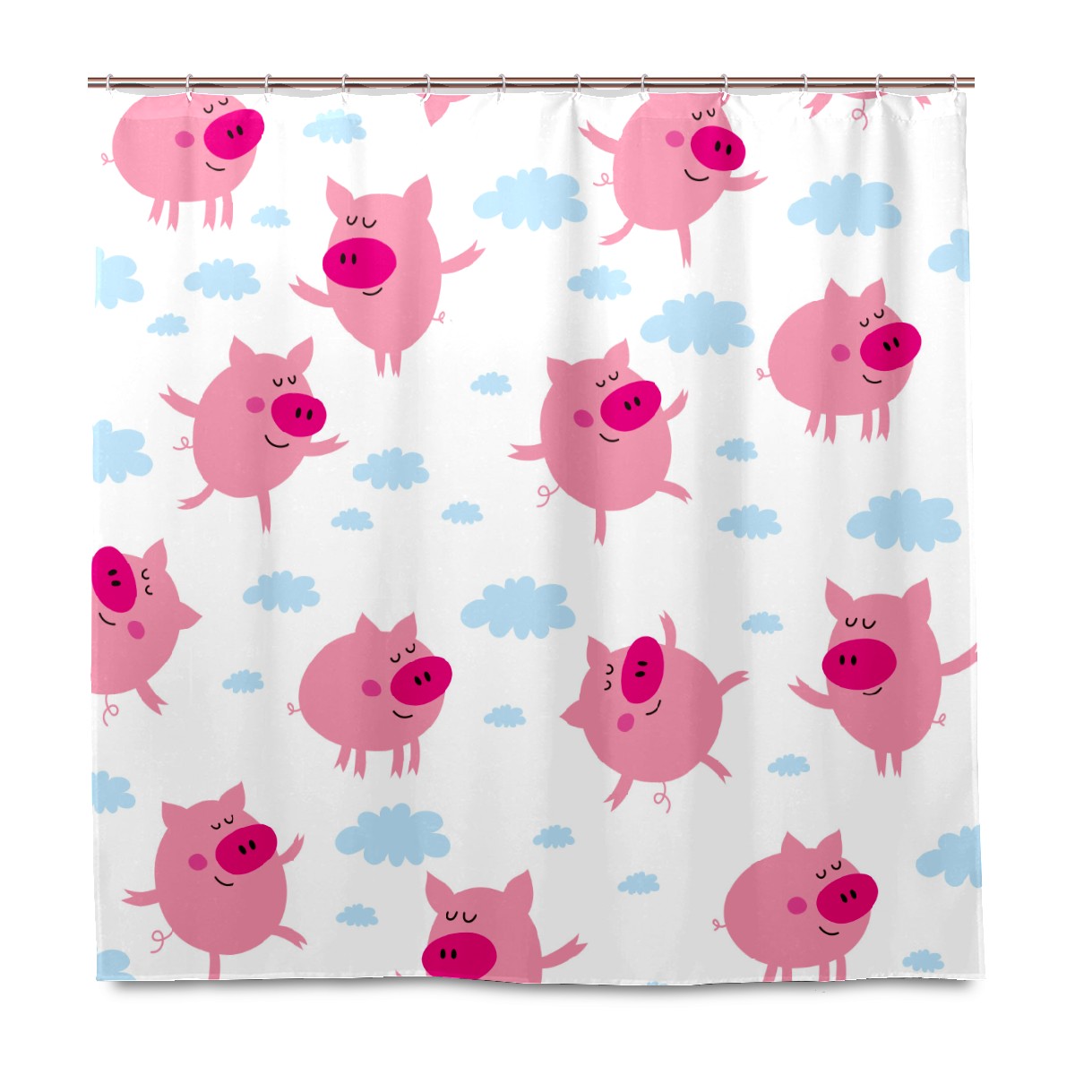 Shower Curtains for Bathroom Funny Cartoon Pink Pig Pattern Waterproof Polyester 60 x 72 inches Bathroom Curtains for Girls Boys with 12 Hooks