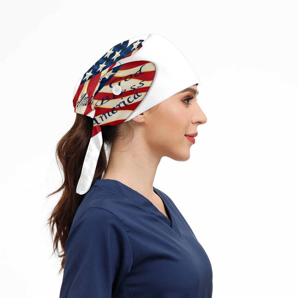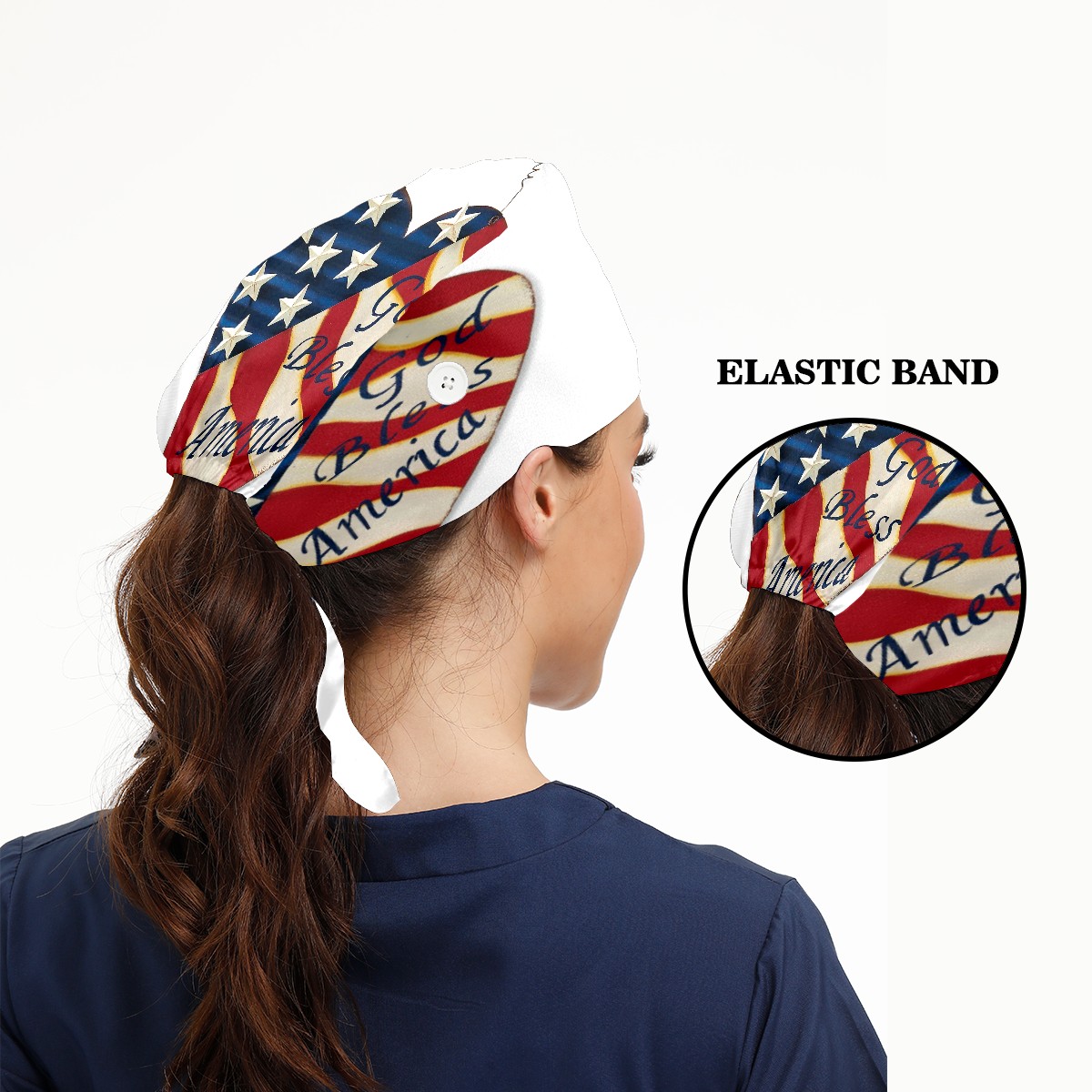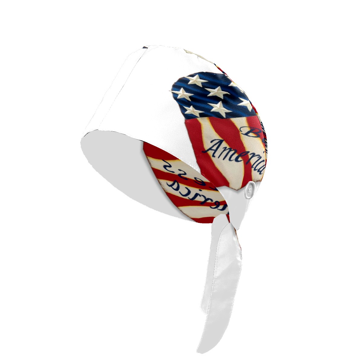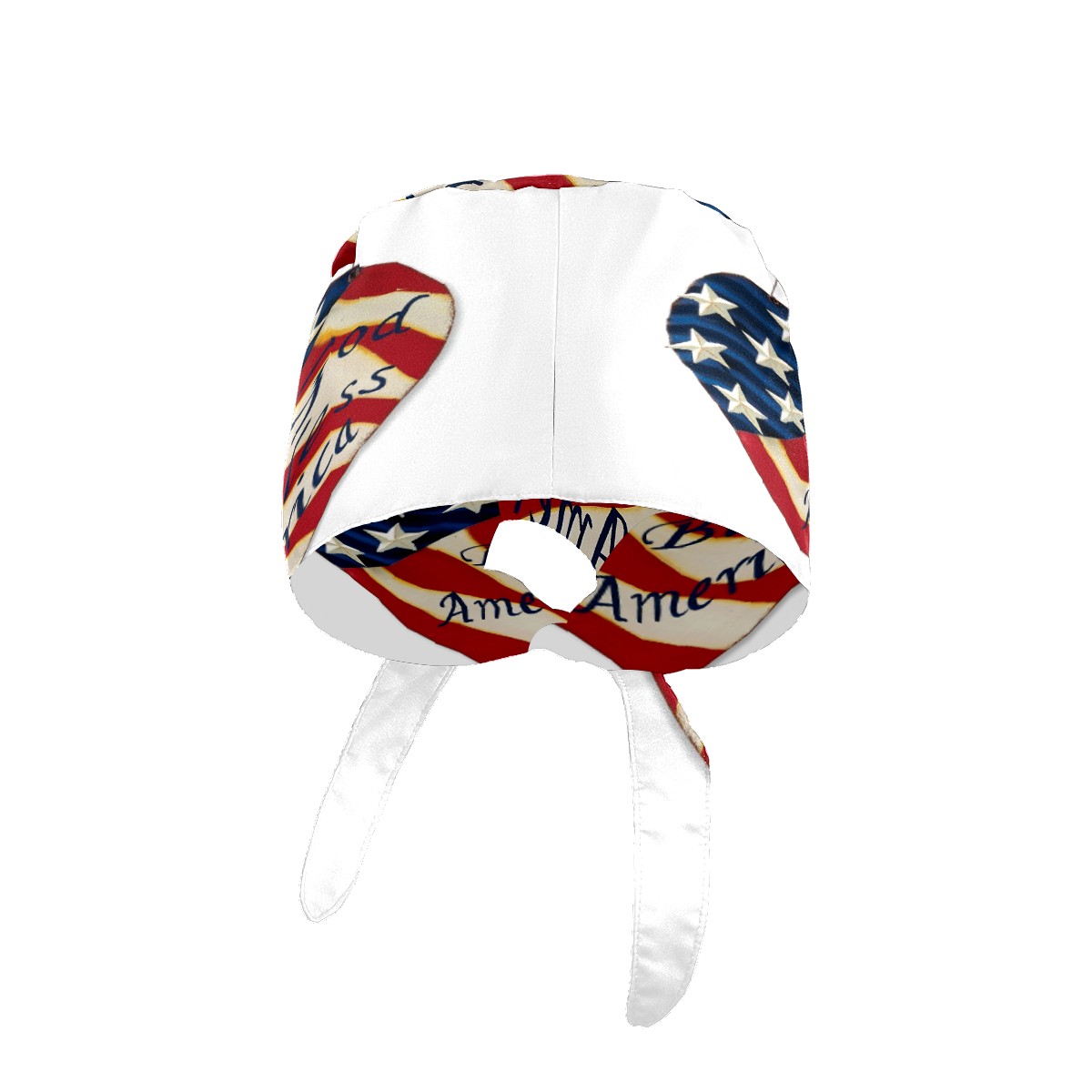 One Size Working Cap for Women Men Sweatband Adjustable Tie Back Printed Headwear God Bless American Retro Flag