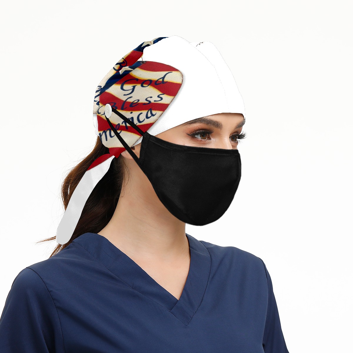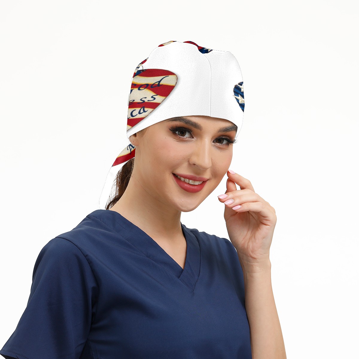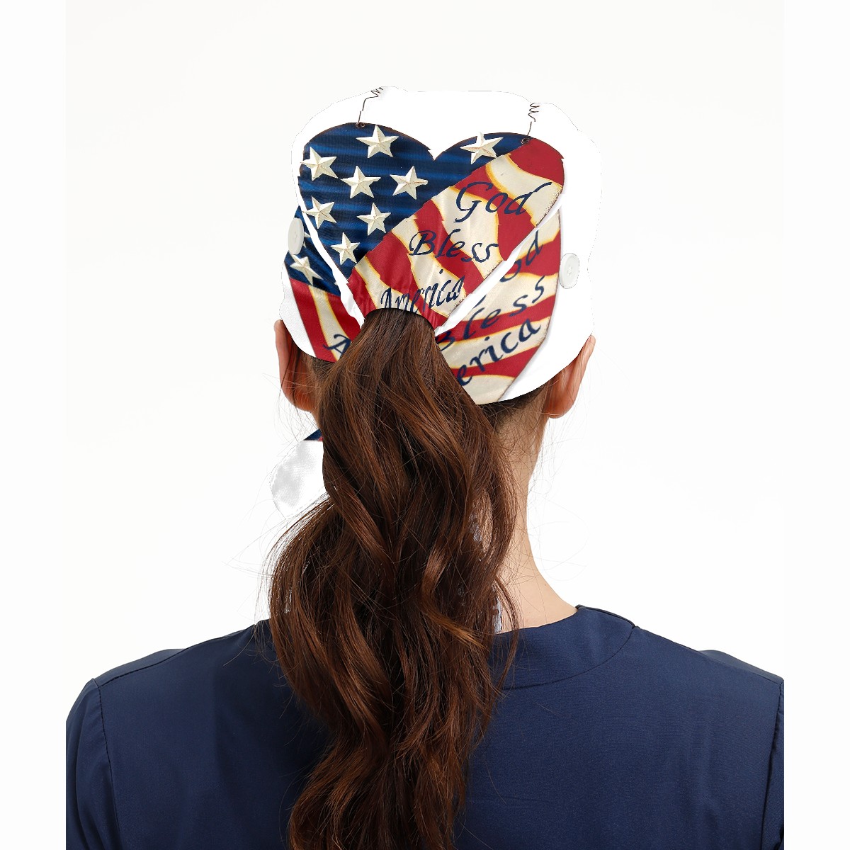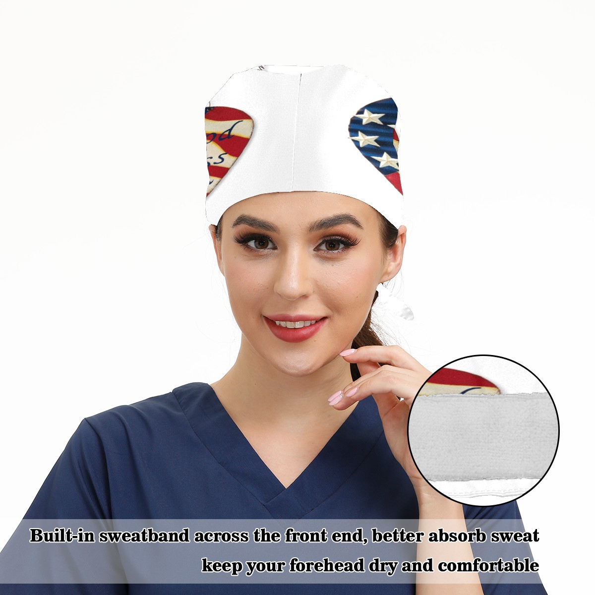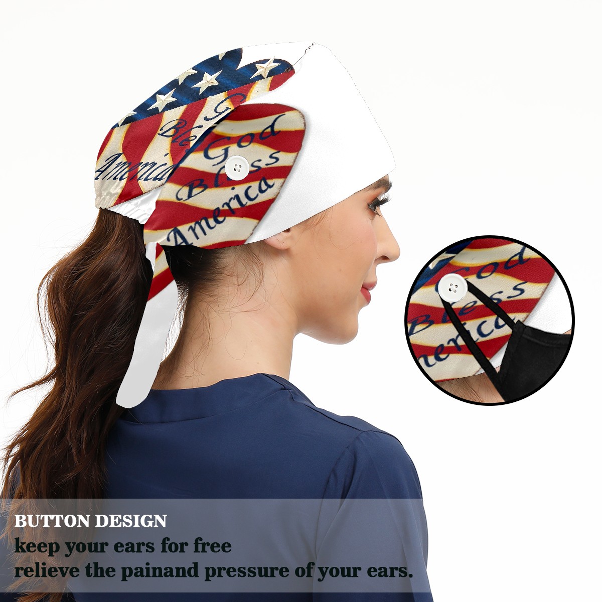 One Size Working Cap for Women Men Sweatband Adjustable Tie Back Printed Headwear God Bless American Retro Flag