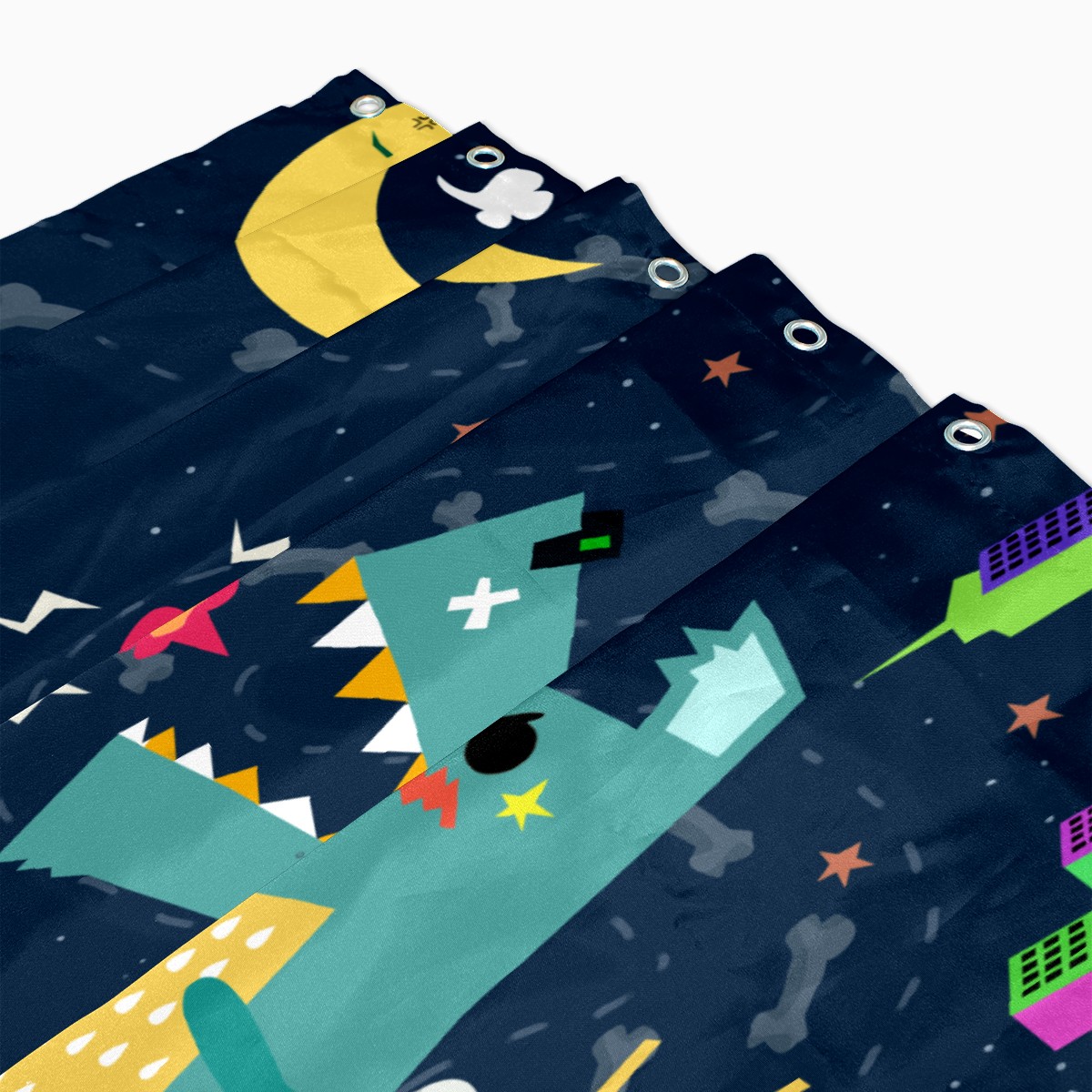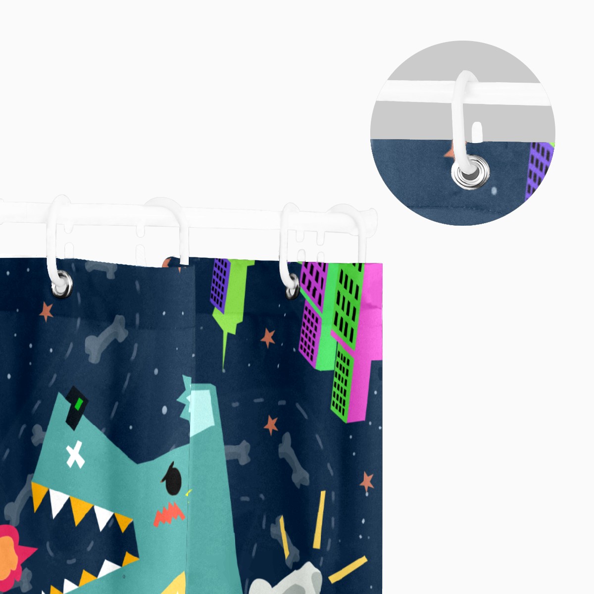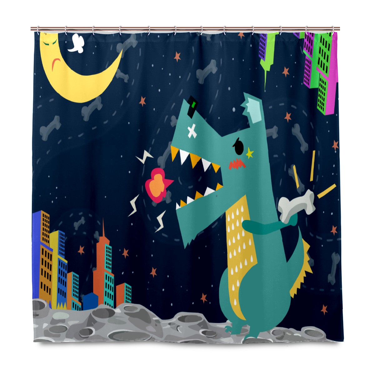 Shower Curtains for Bathroom Funny Cartoon Dinosaur Waterproof Polyester 60 x 72 inches Bathroom Curtains for Girls Boys with 12 Hooks