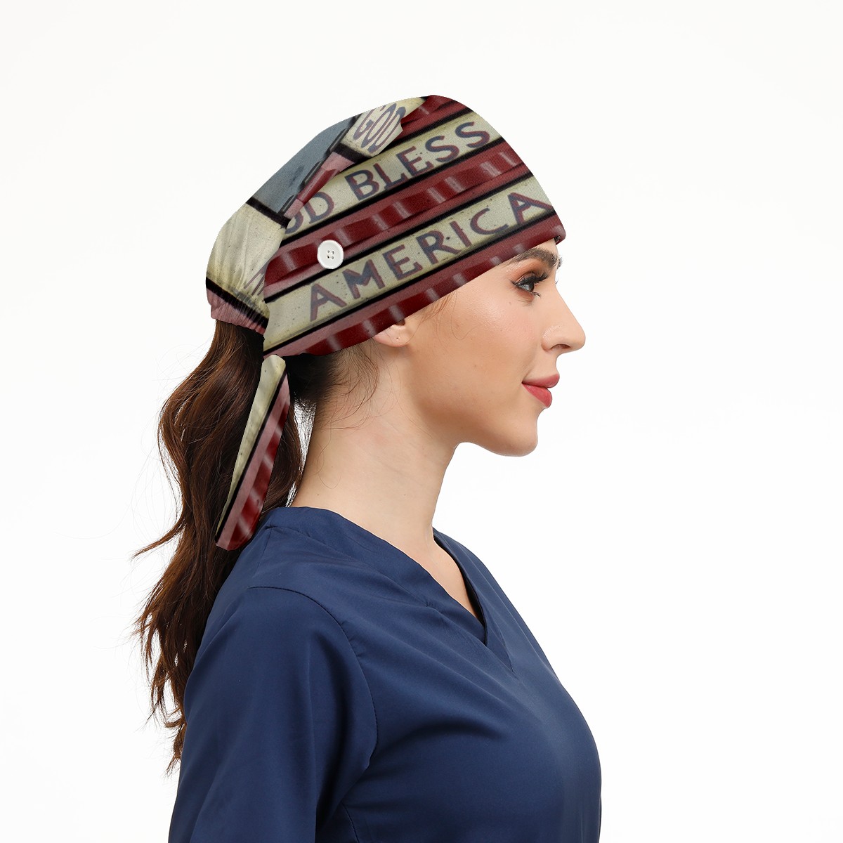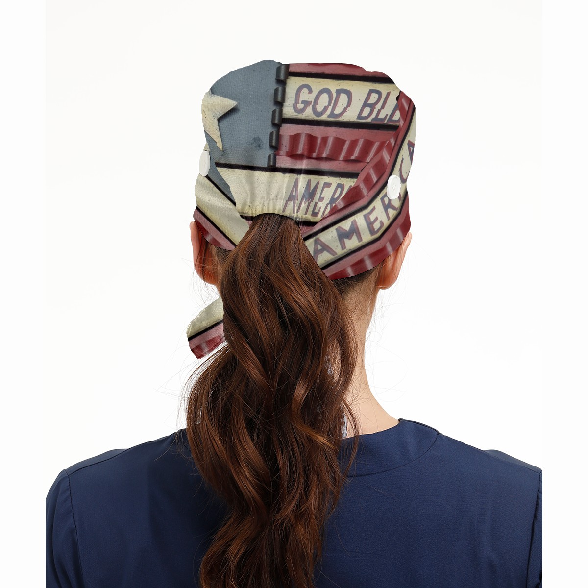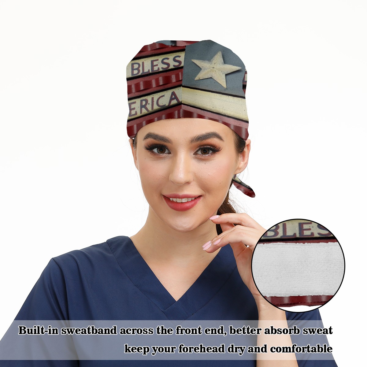 One Size Working Cap for Women Men Sweatband Adjustable Tie Back Printed Headwear God Bless America Sign