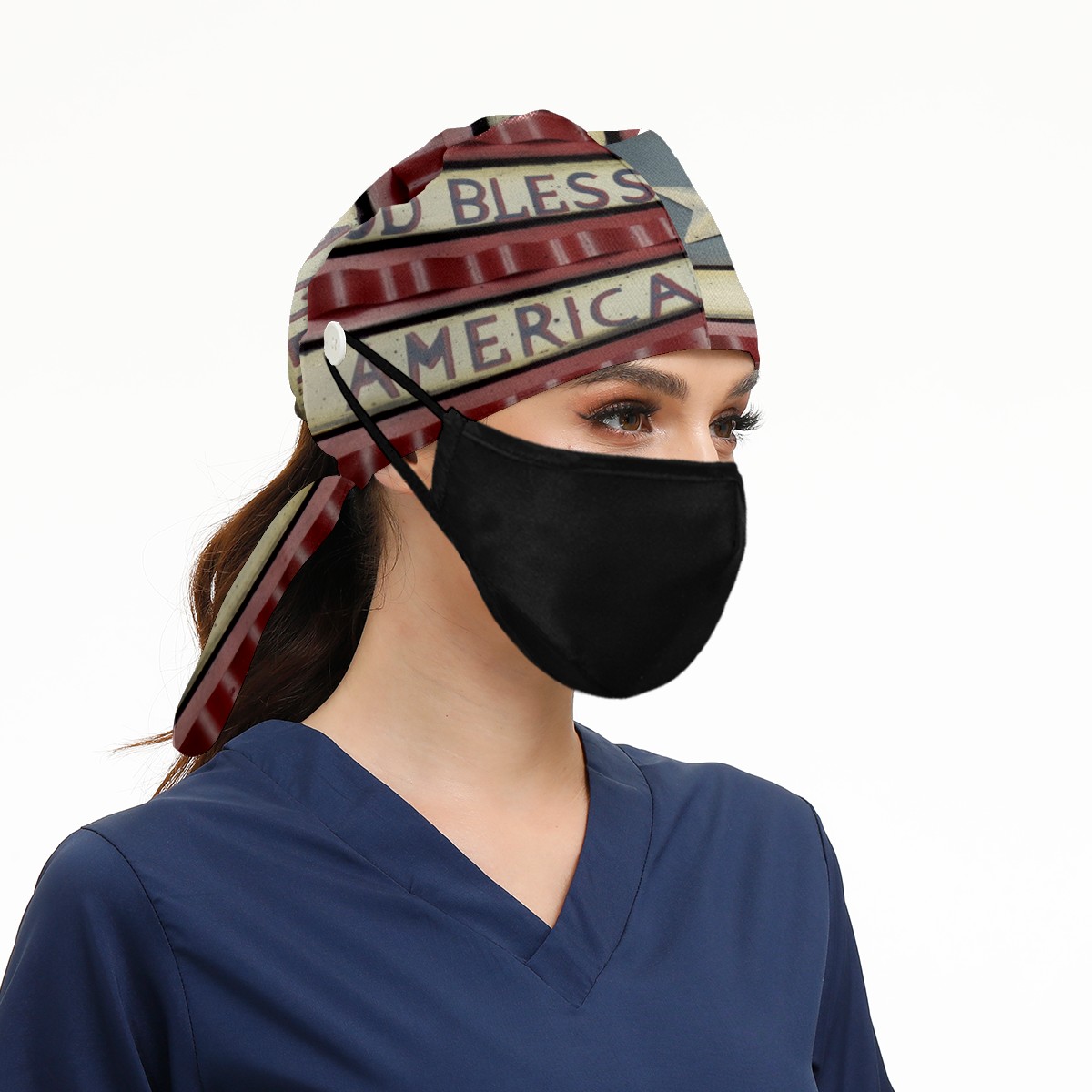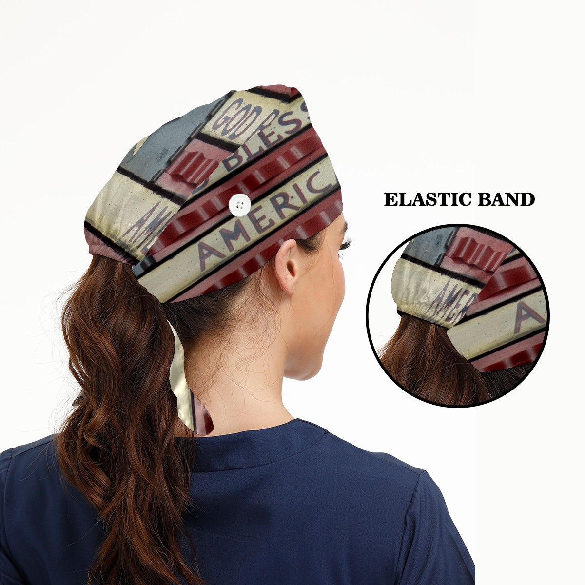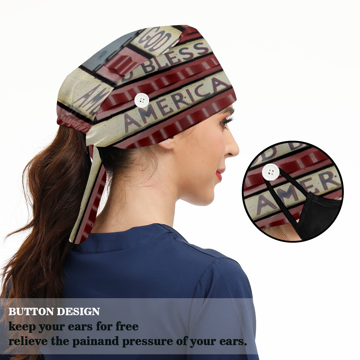 One Size Working Cap for Women Men Sweatband Adjustable Tie Back Printed Headwear God Bless America Sign