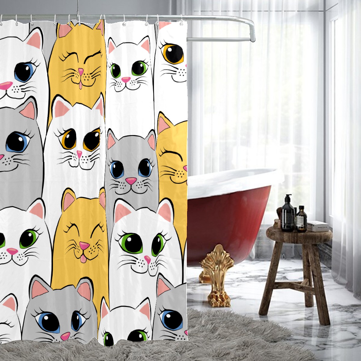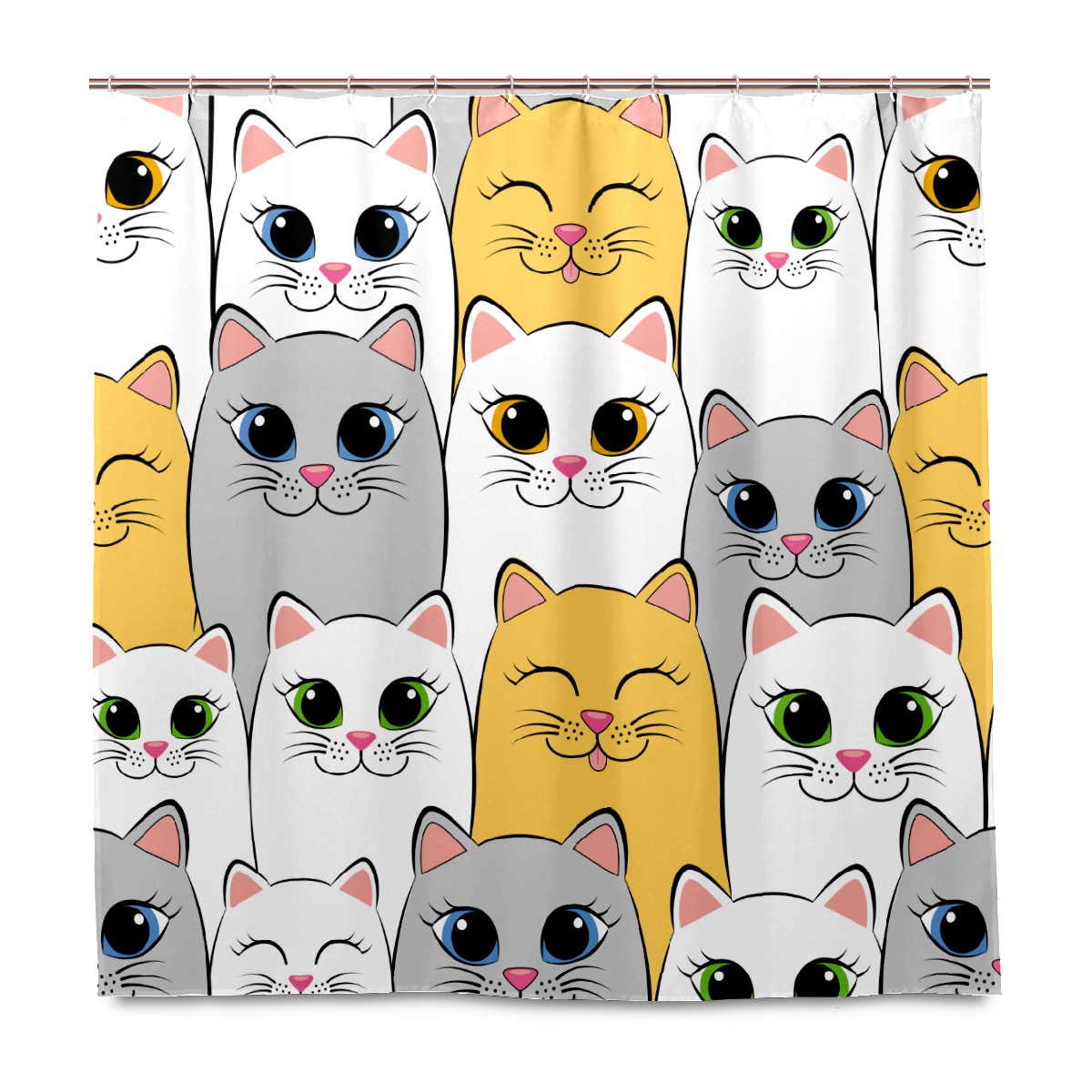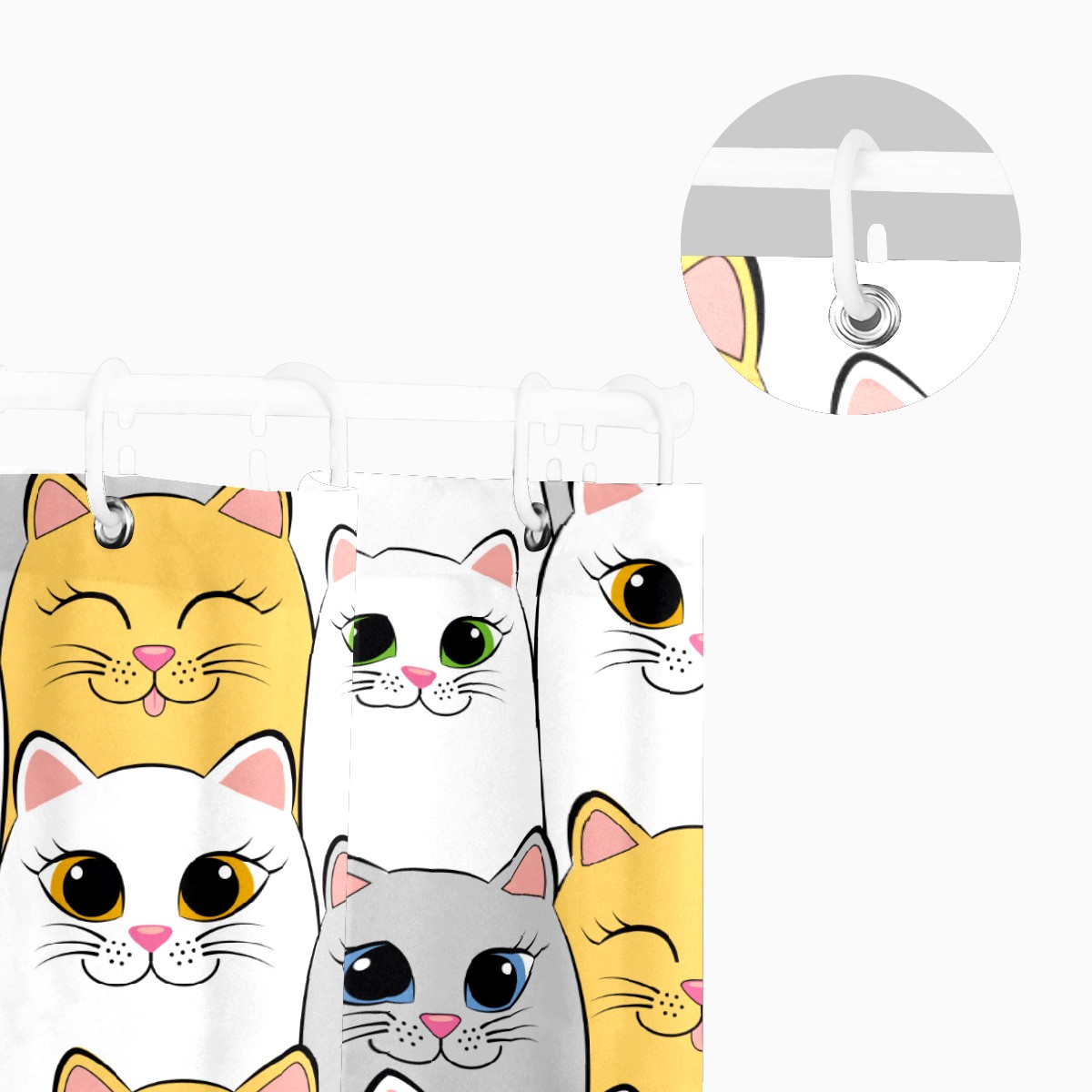 Shower Curtains for Bathroom Funny Cartoon Cat Waterproof Polyester 60 x 72 inches Bathroom Curtains for Girls Boys with 12 Hooks