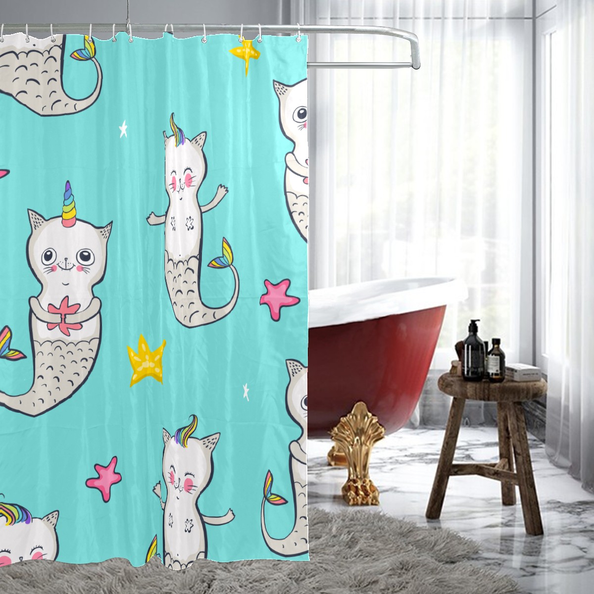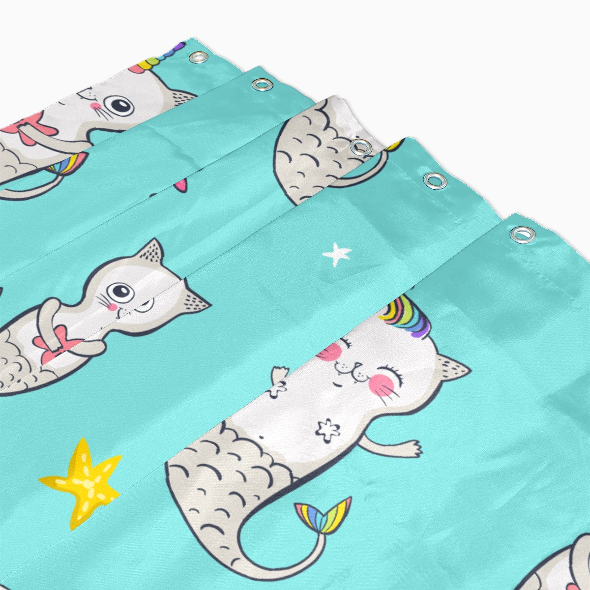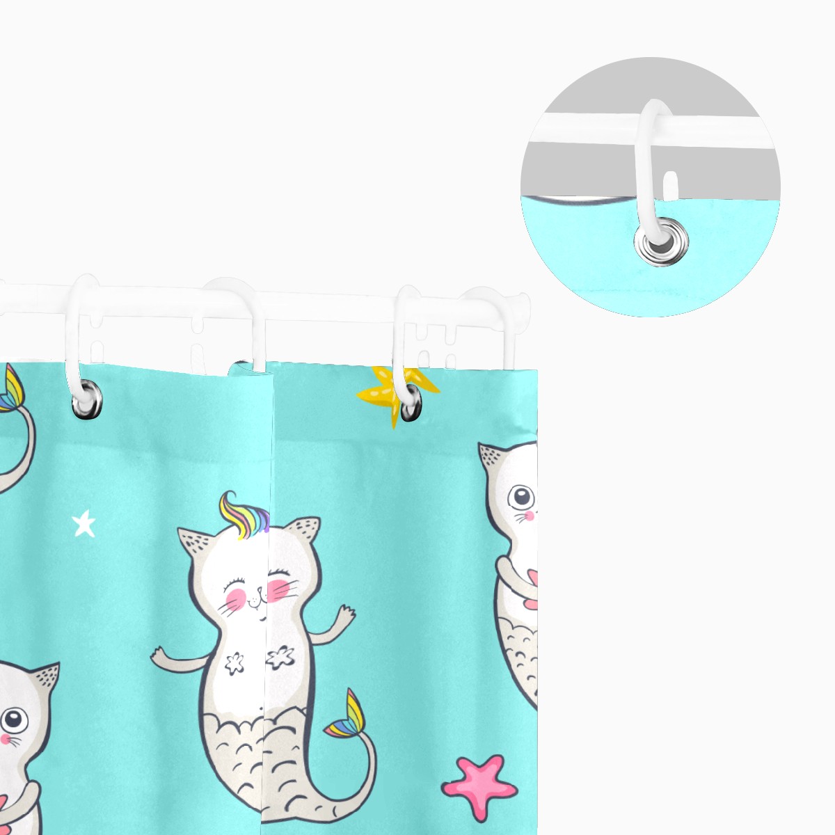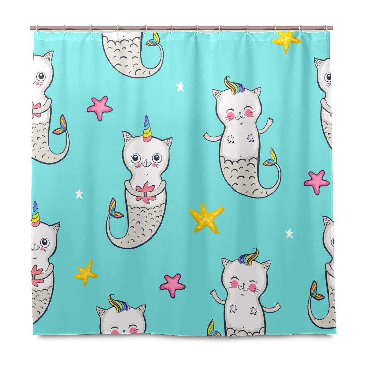 Shower Curtains for Bathroom Funny Cartoon Cat Mermaid Unicorn Waterproof Polyester 60 x 72 inches Bathroom Curtains for Girls Boys with 12 Hooks