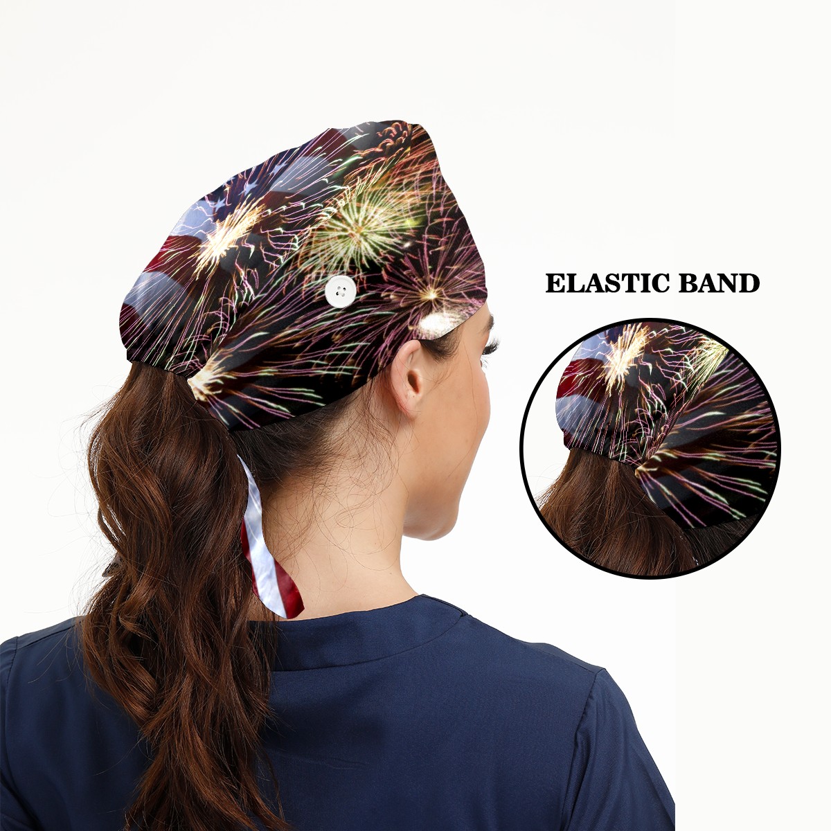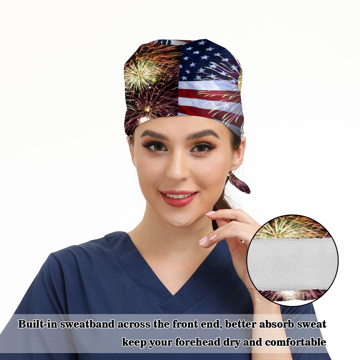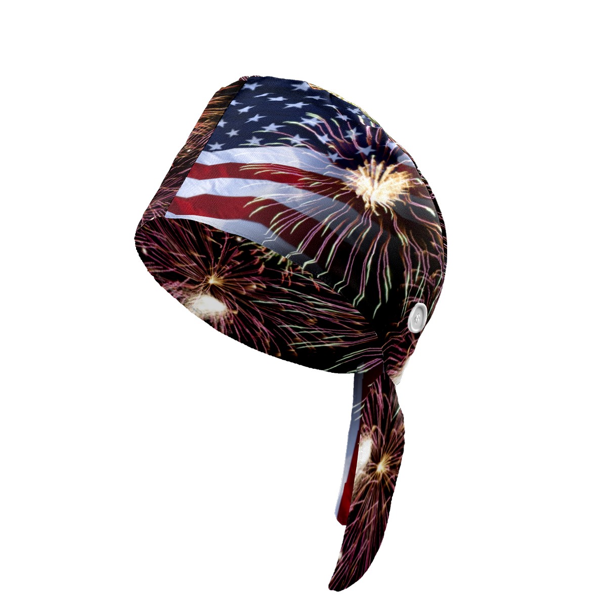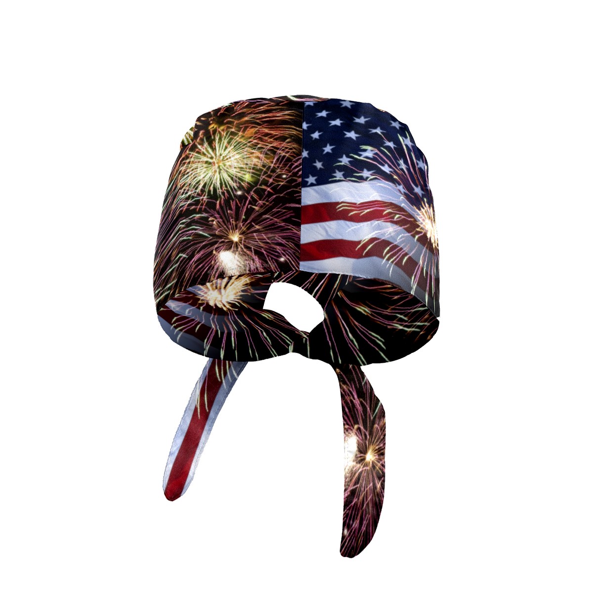 One Size Working Cap for Women Men Sweatband Adjustable Tie Back Printed Headwear Fireworks And American Flag