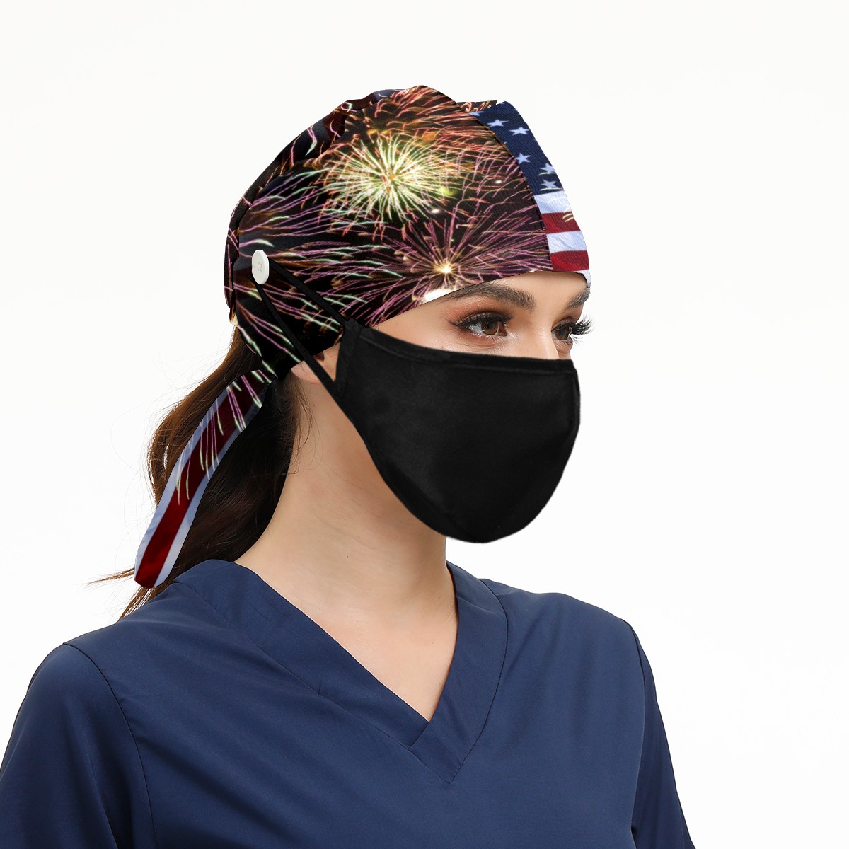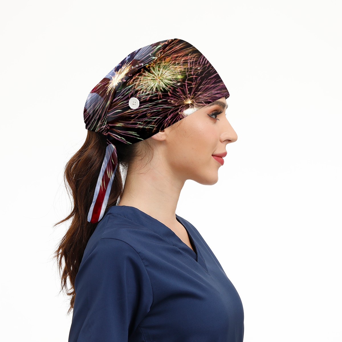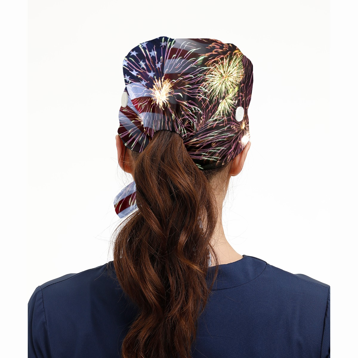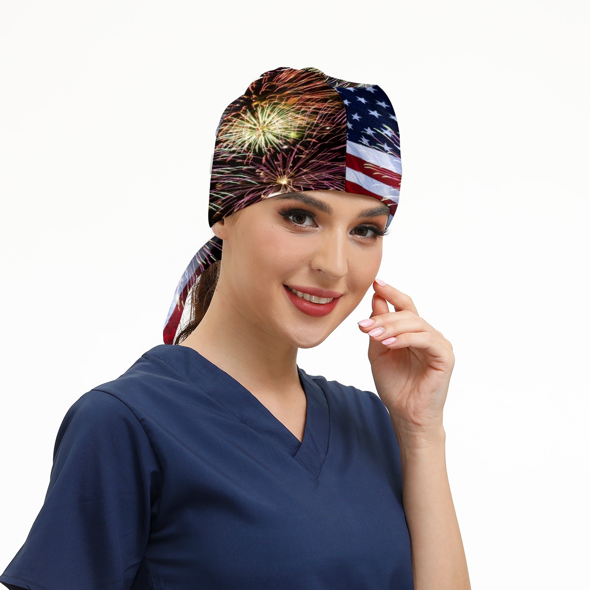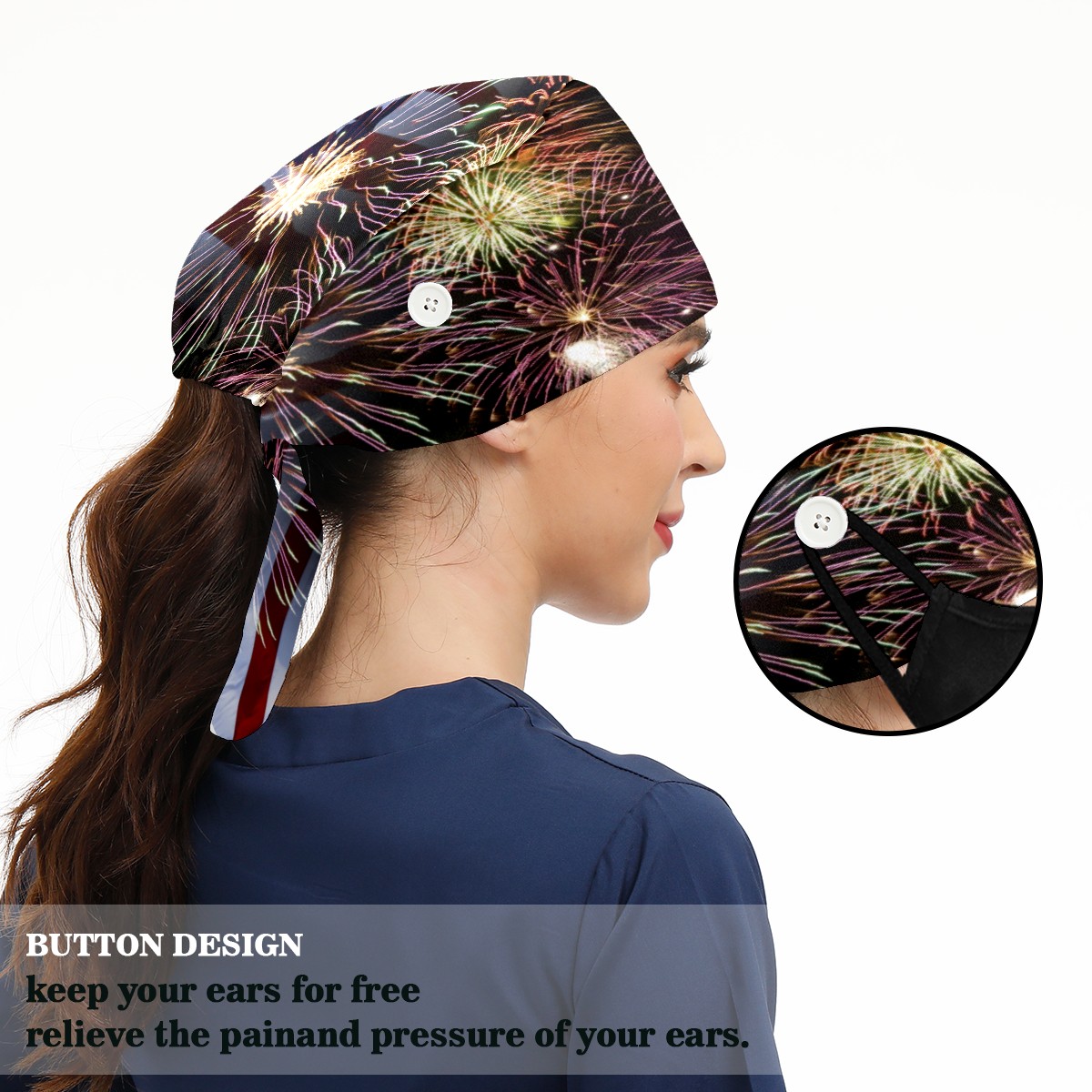 One Size Working Cap for Women Men Sweatband Adjustable Tie Back Printed Headwear Fireworks And American Flag