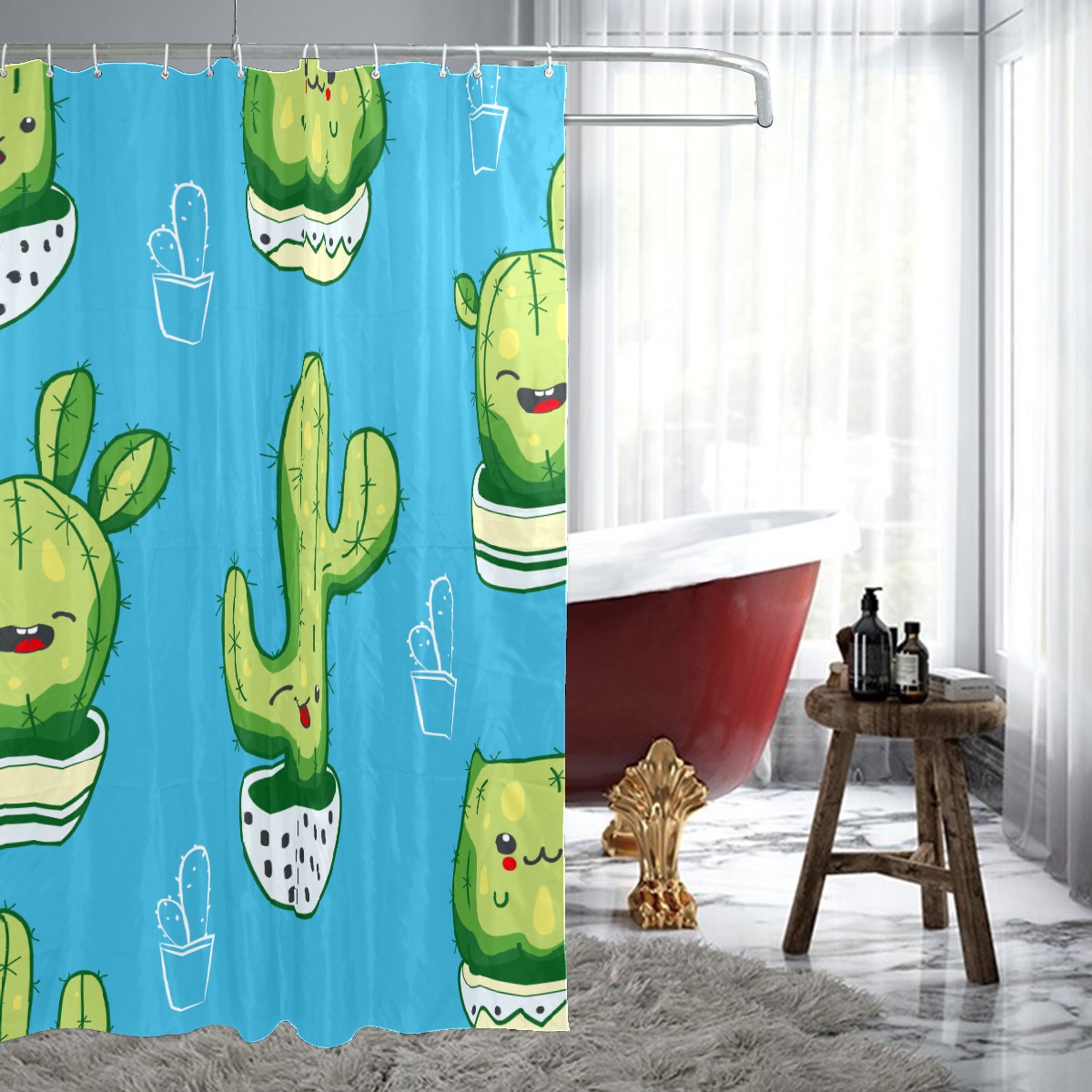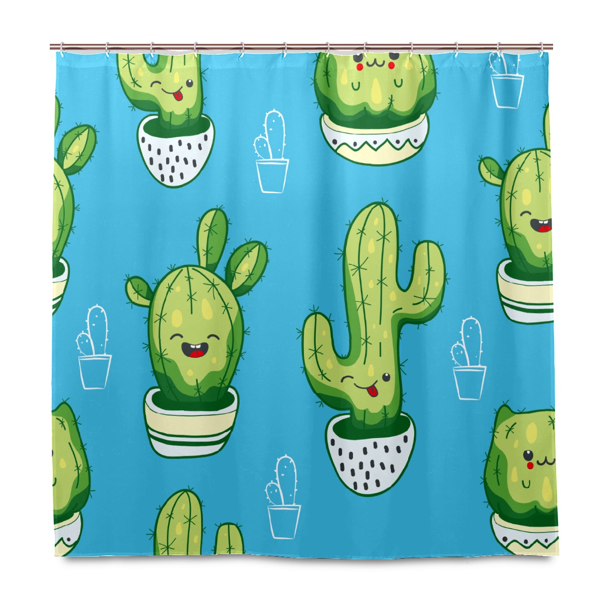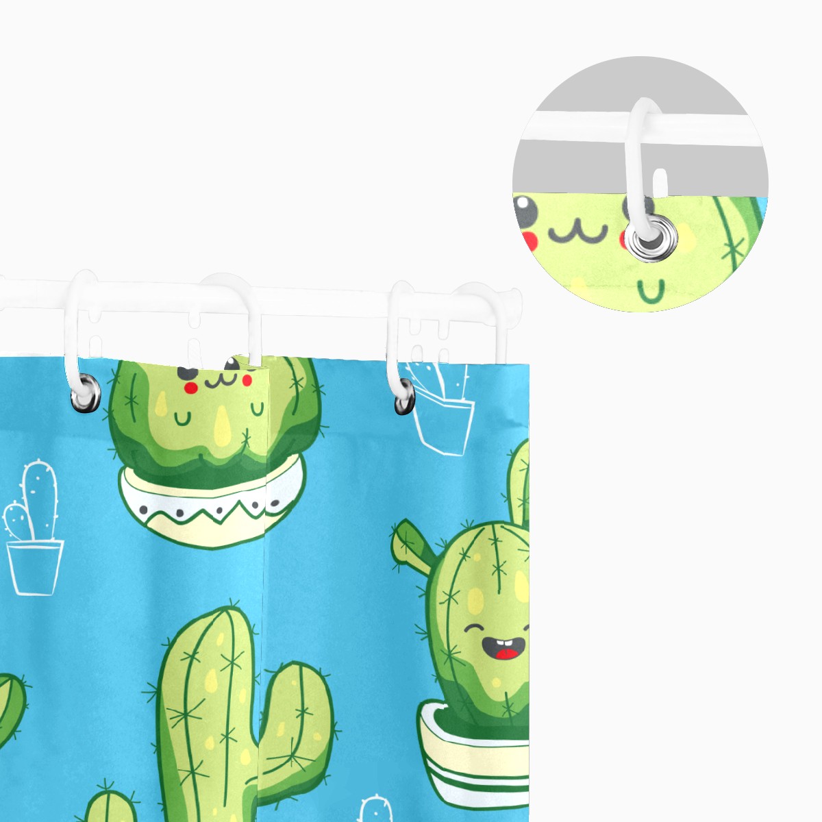 Shower Curtains for Bathroom Funny Cartoon Cactus Cacti Smile Pattern Waterproof Polyester 60 x 72 inches Bathroom Curtains for Girls Boys with 12 Hooks