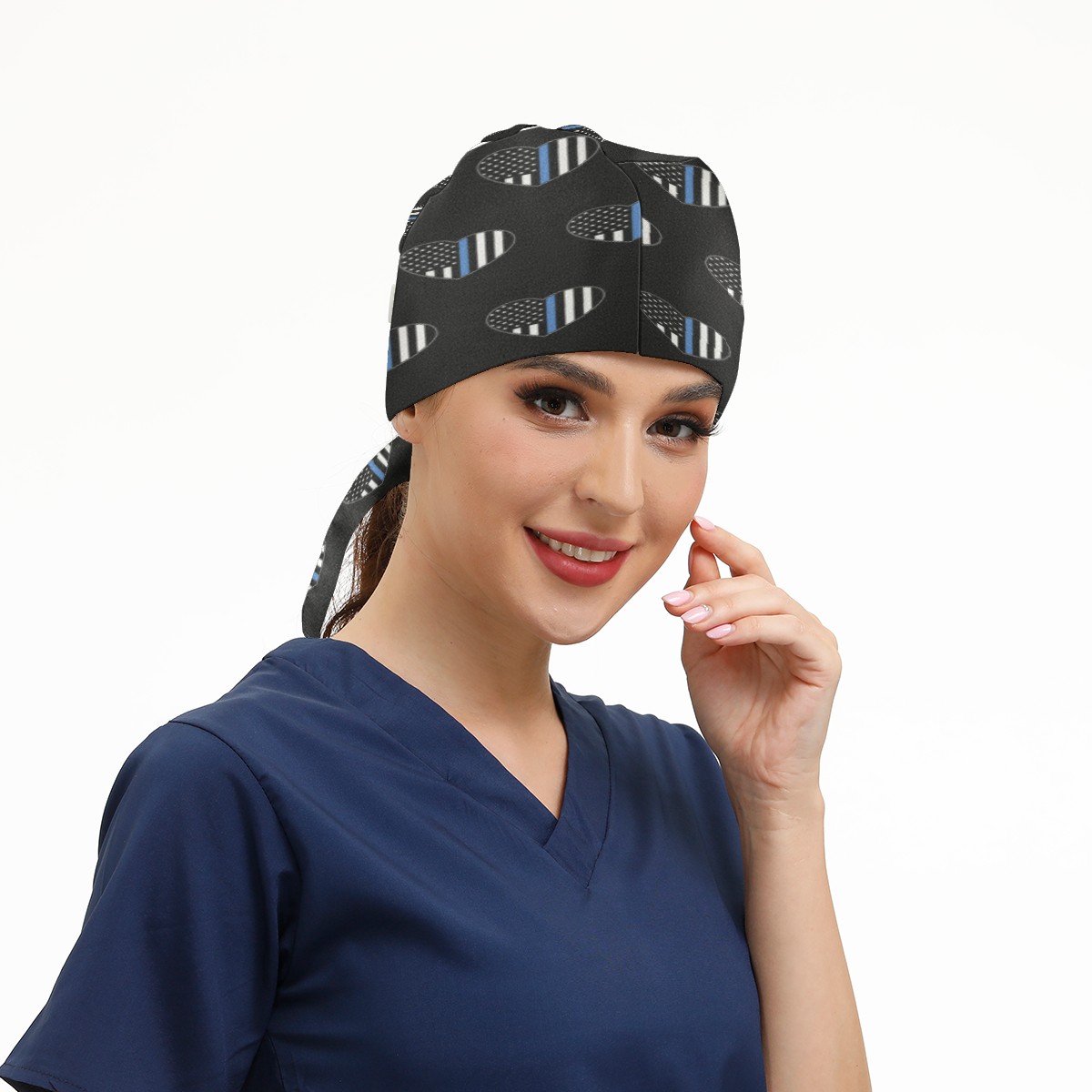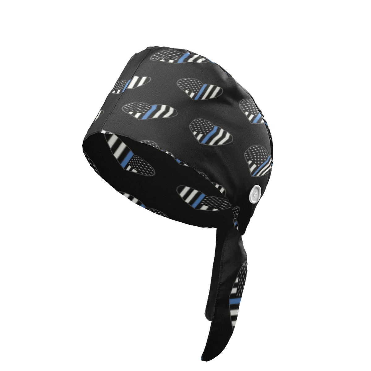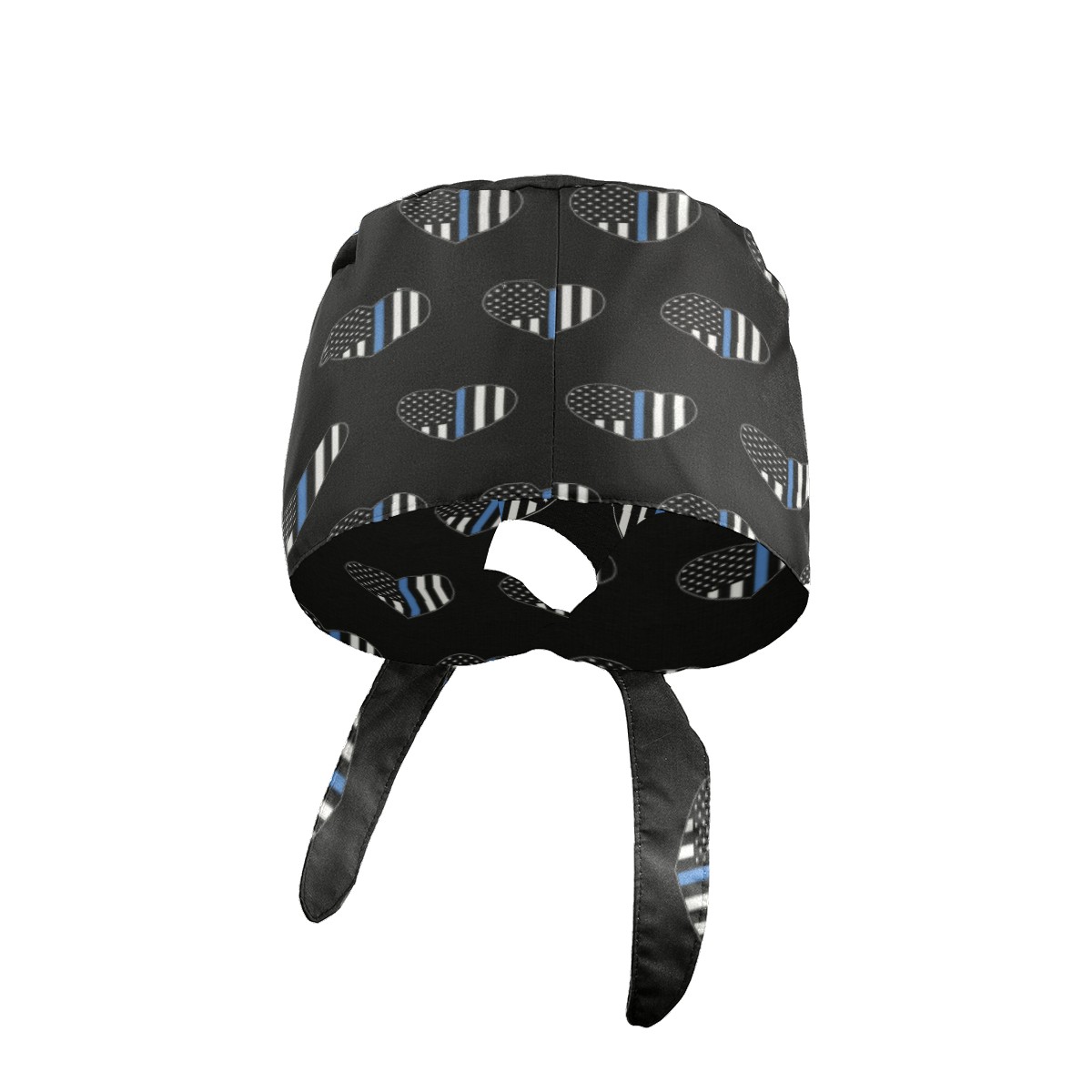 One Size Working Cap for Women Men Sweatband Adjustable Tie Back Printed Headwear Blue Thin Line American Flag Heart