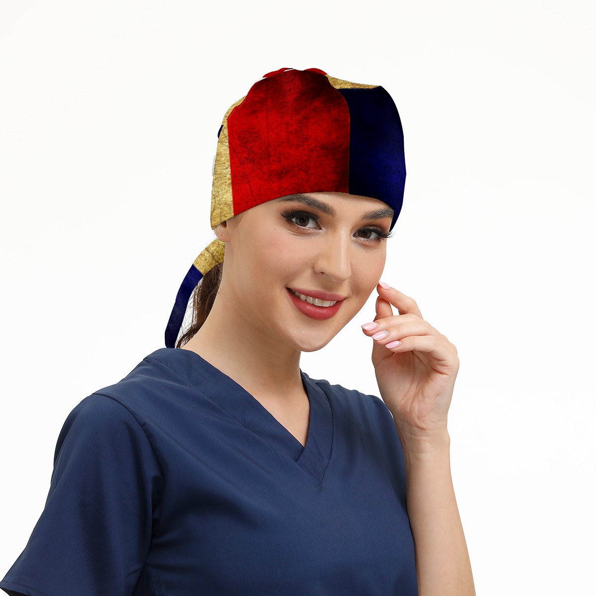 One Size Working Cap for Women Men Sweatband Adjustable Tie Back Printed Headwear Flag Of France Vintage Grunge