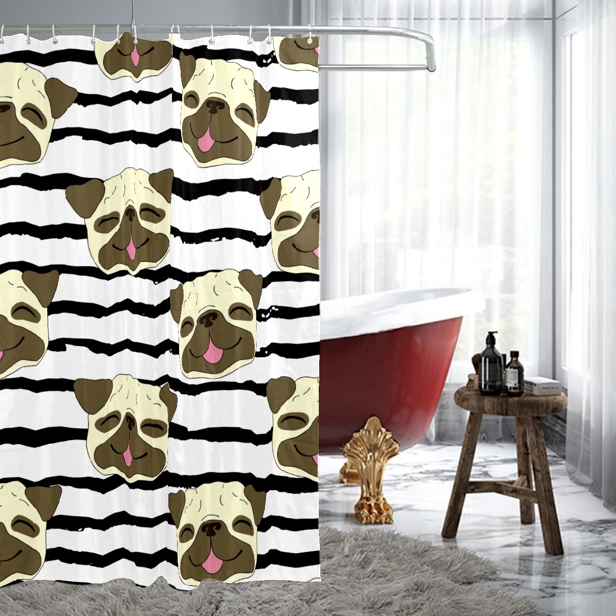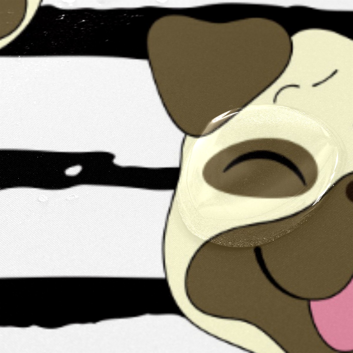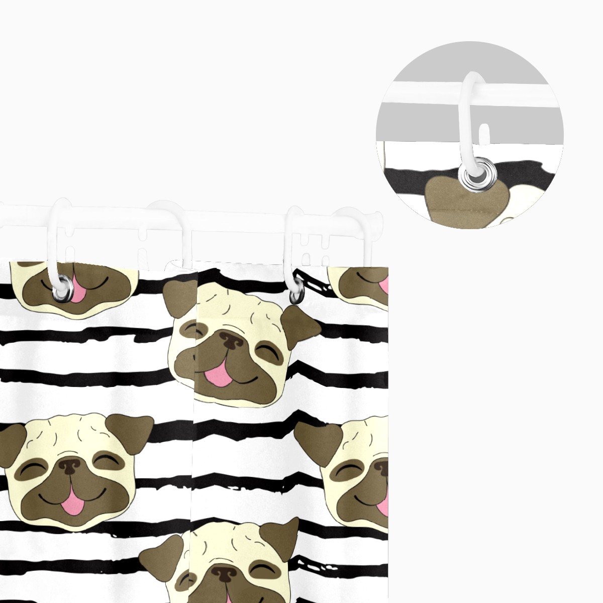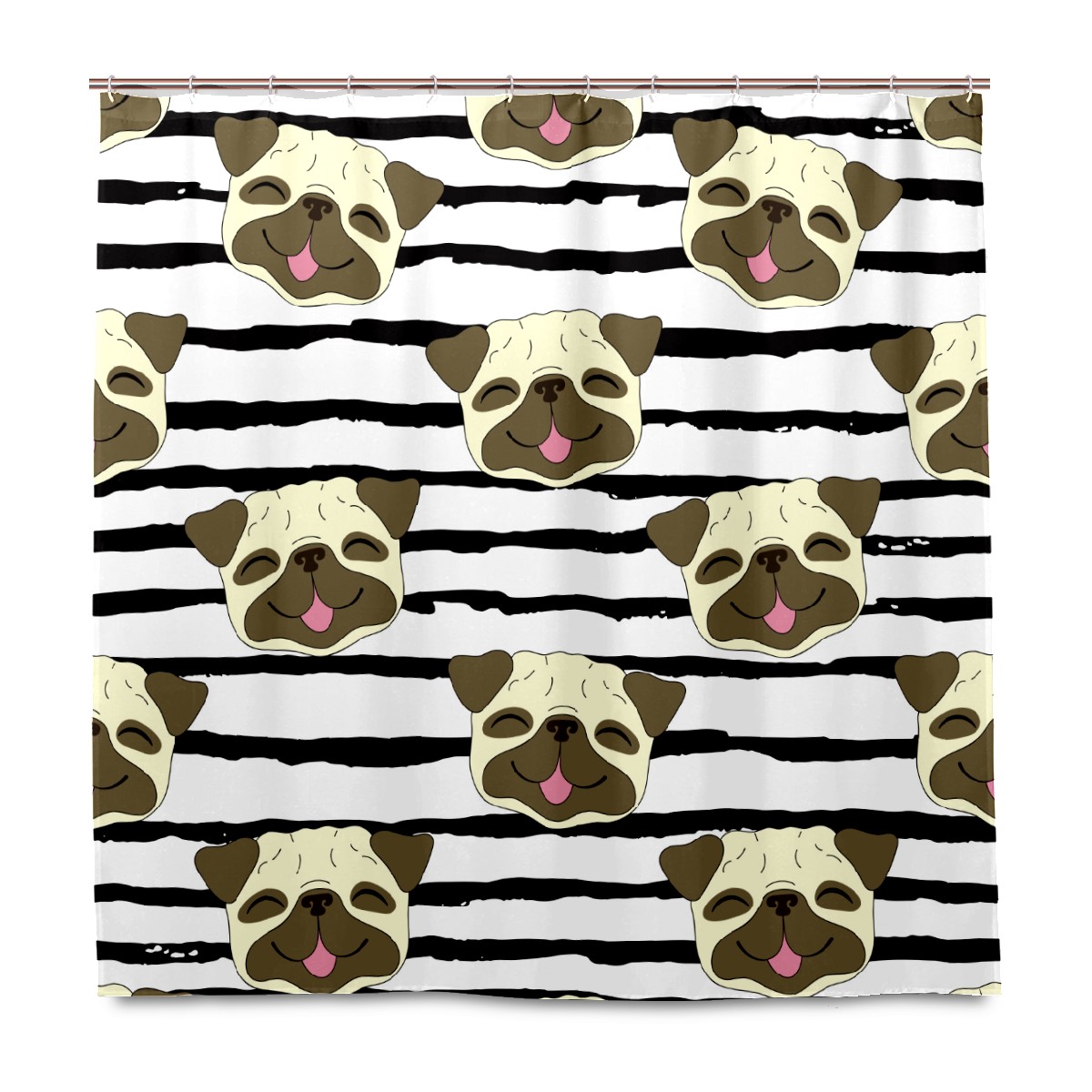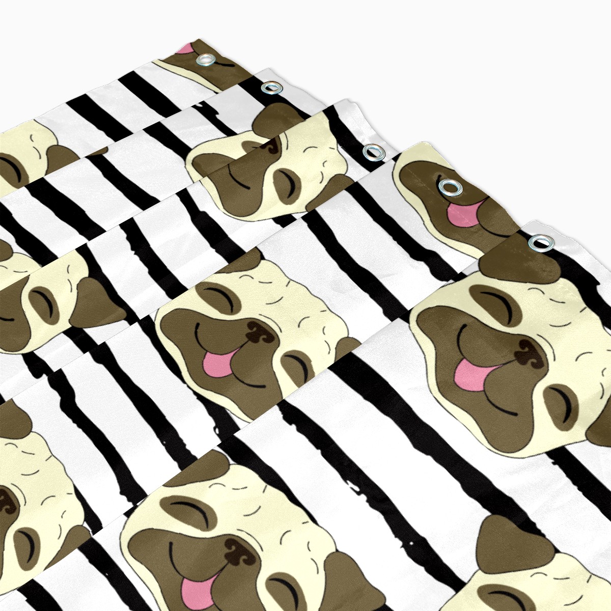 Shower Curtains for Bathroom Cute Pug Smile Stripe Waterproof Polyester 60 x 72 inches Bathroom Curtains for Girls Boys with 12 Hooks