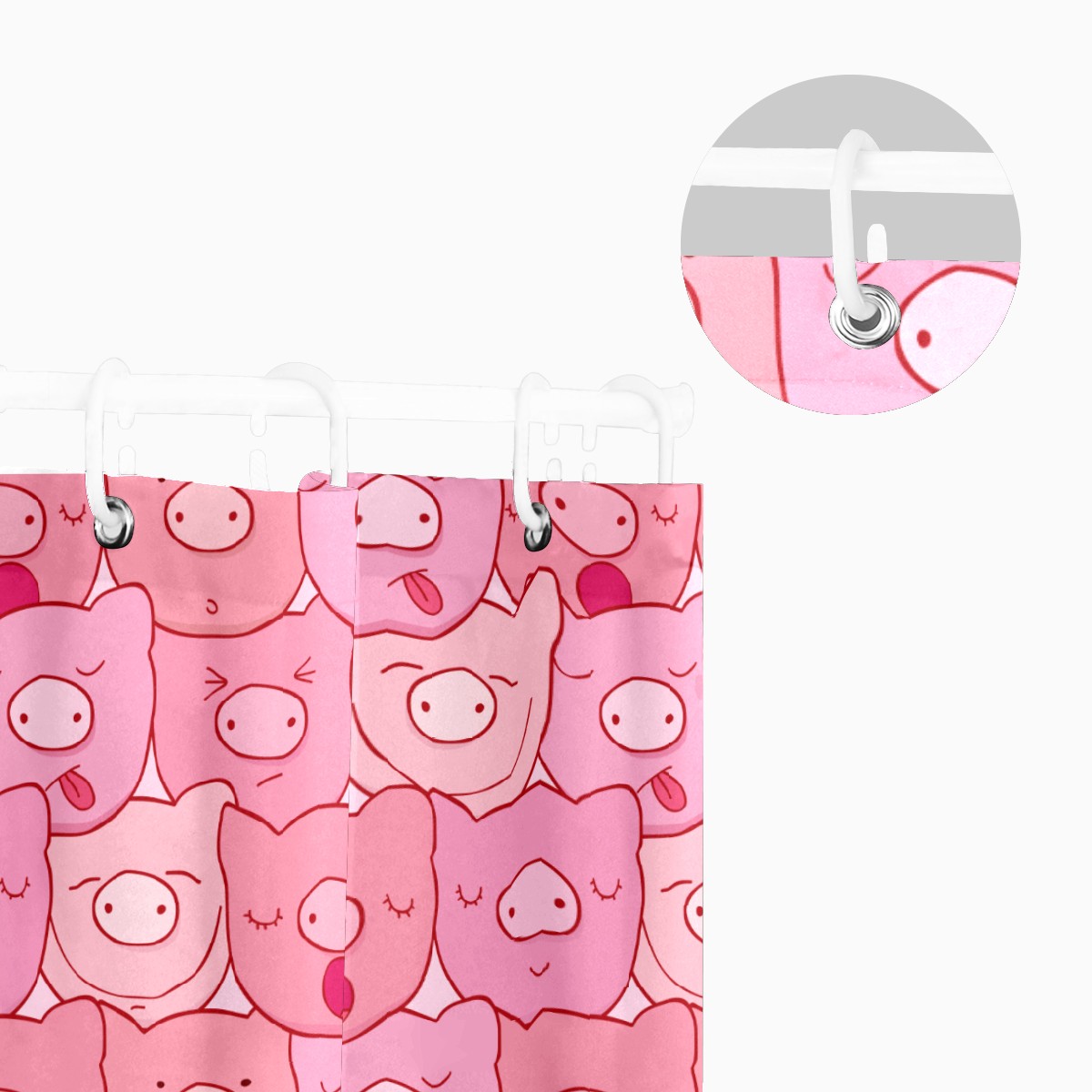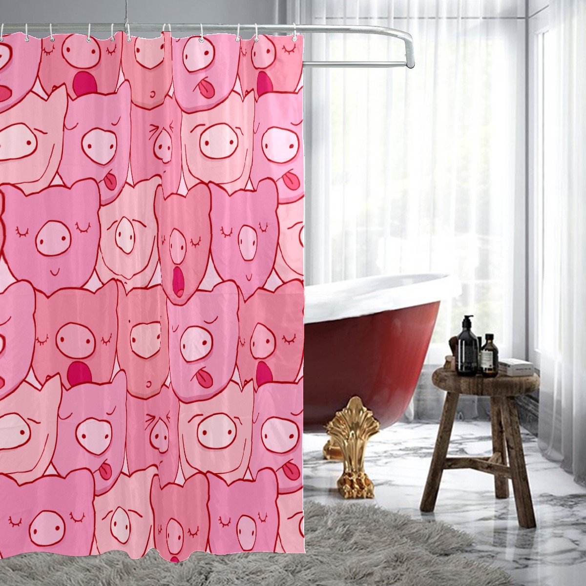 Shower Curtains for Bathroom Cute Pink Pig Head Pattern Waterproof Polyester 60 x 72 inches Bathroom Curtains for Girls Boys with 12 Hooks