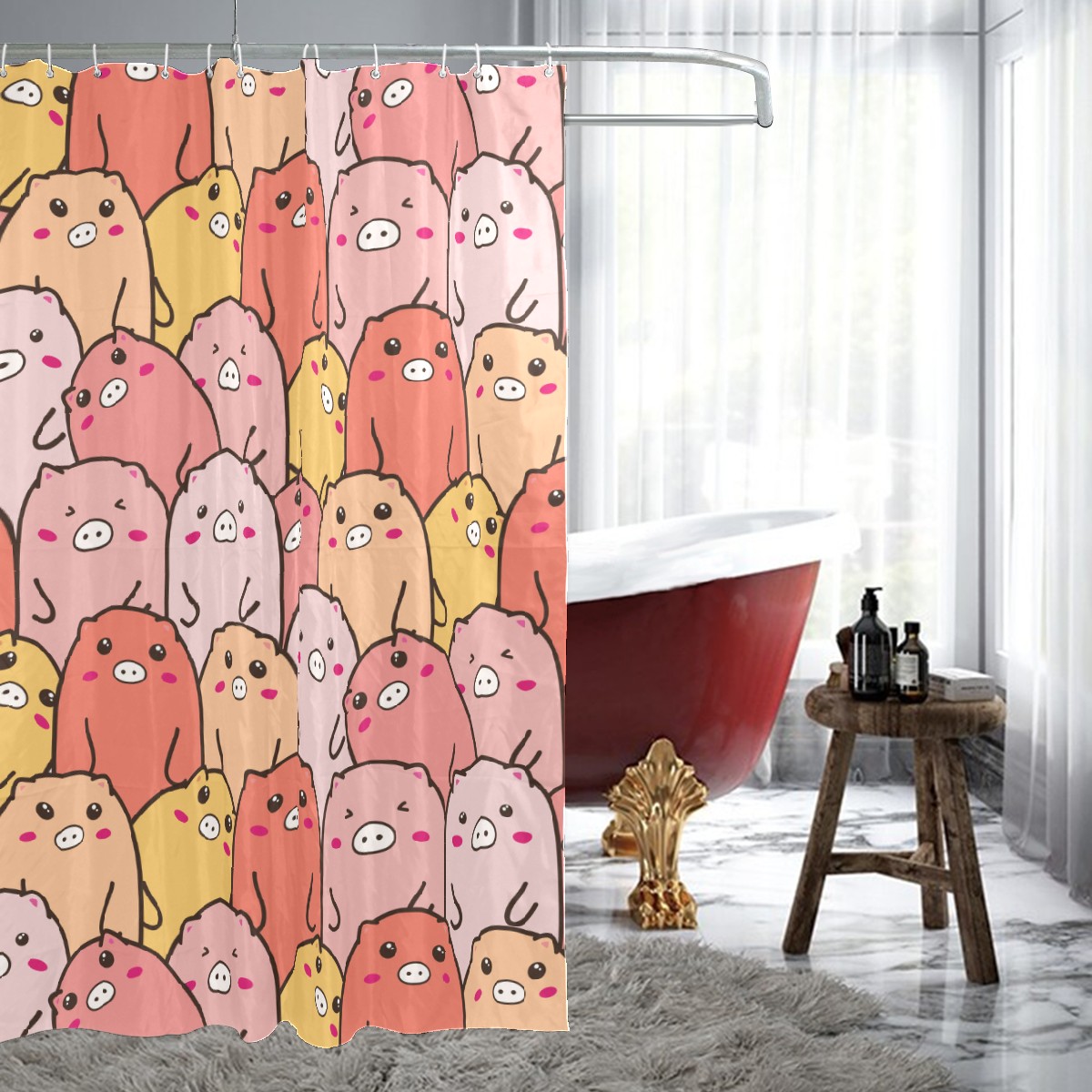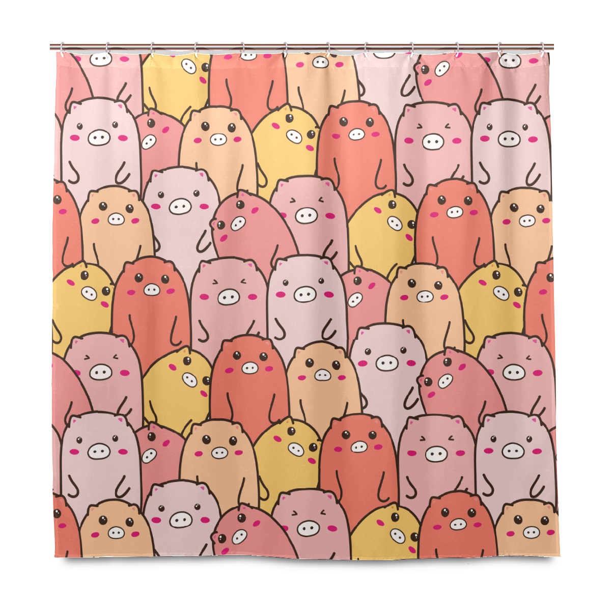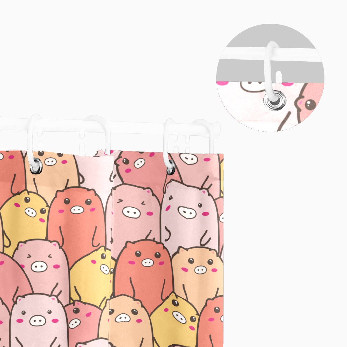 Shower Curtains for Bathroom Cute Pig Face Pattern Waterproof Polyester 60 x 72 inches Bathroom Curtains for Girls Boys with 12 Hooks