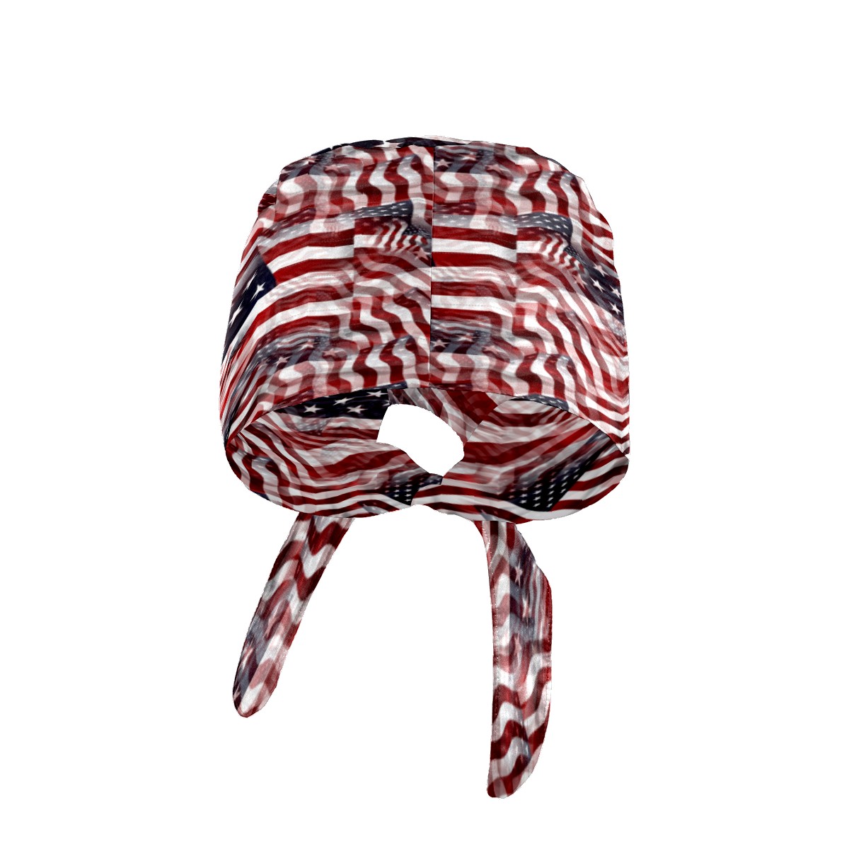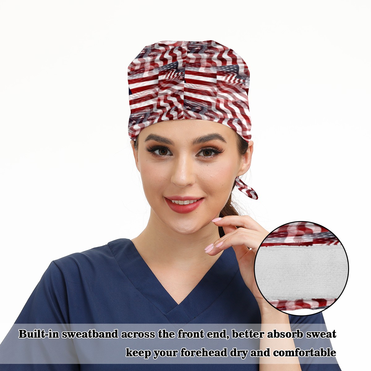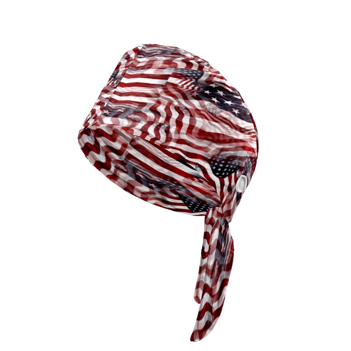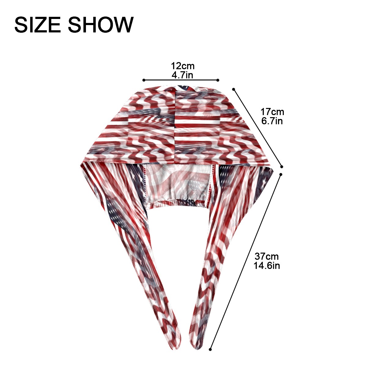 One Size Working Cap for Women Men Sweatband Adjustable Tie Back Printed Headwear American Flag Red White Blue Stripe