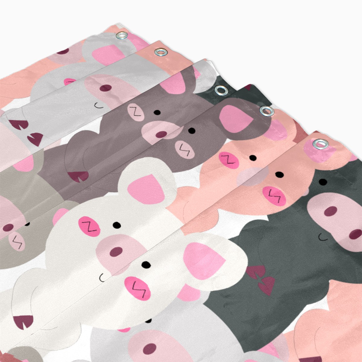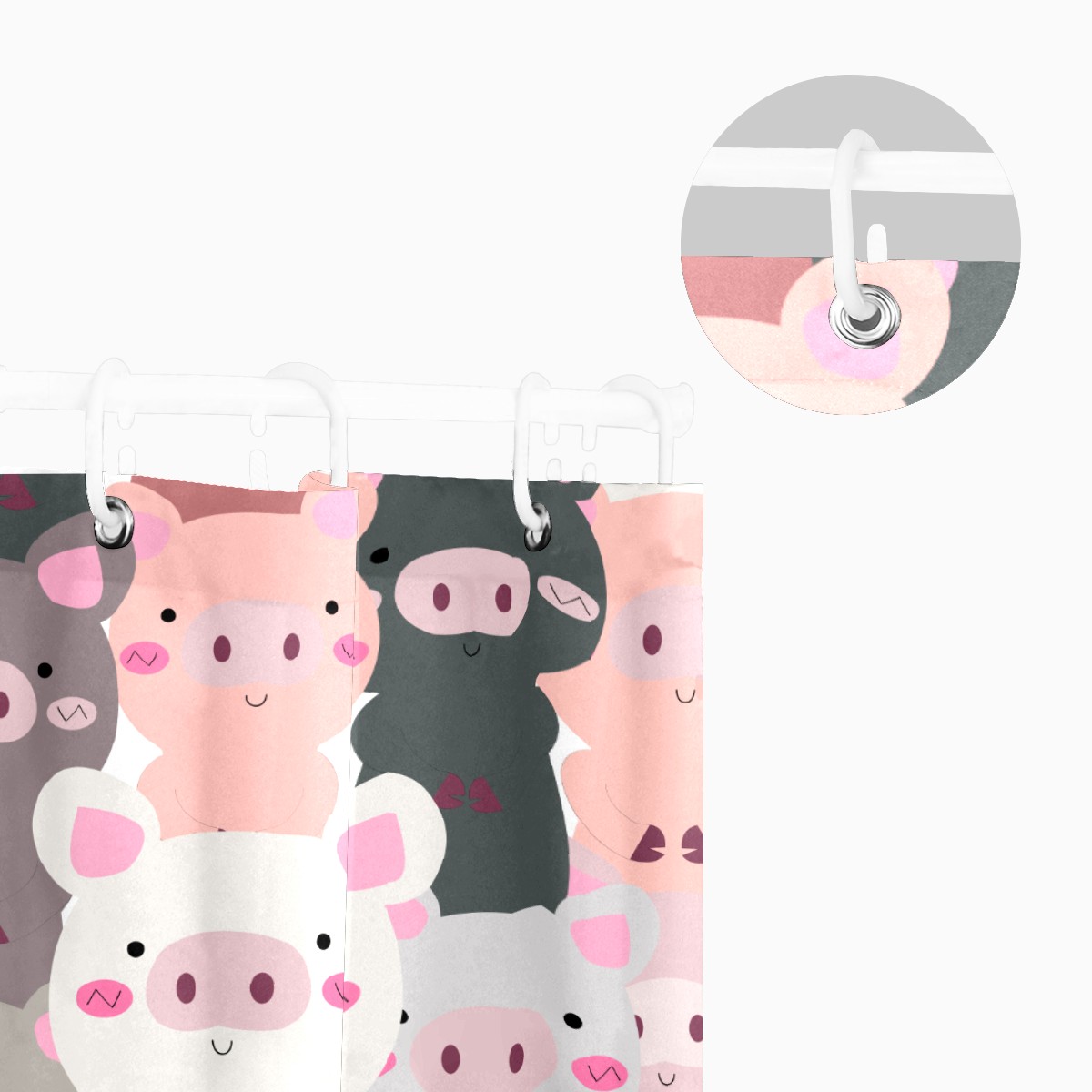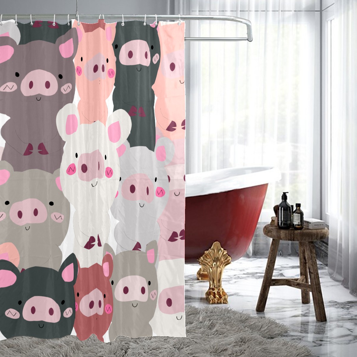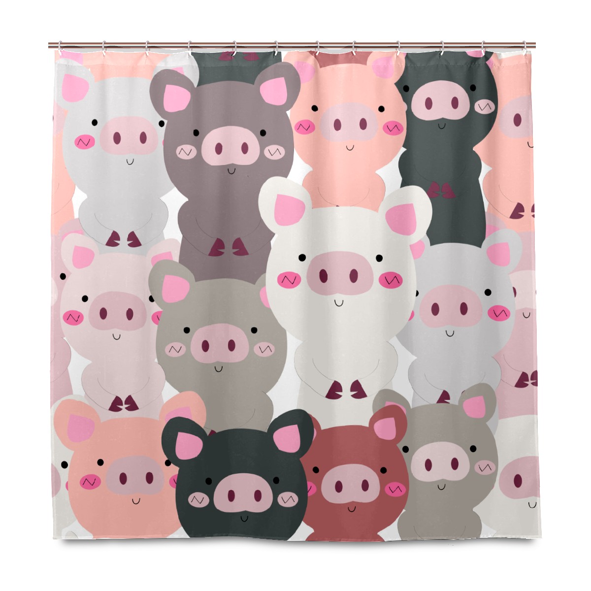 Shower Curtains for Bathroom Cute Cartoon Pig Pattern Waterproof Polyester 60 x 72 inches Bathroom Curtains for Girls Boys with 12 Hooks