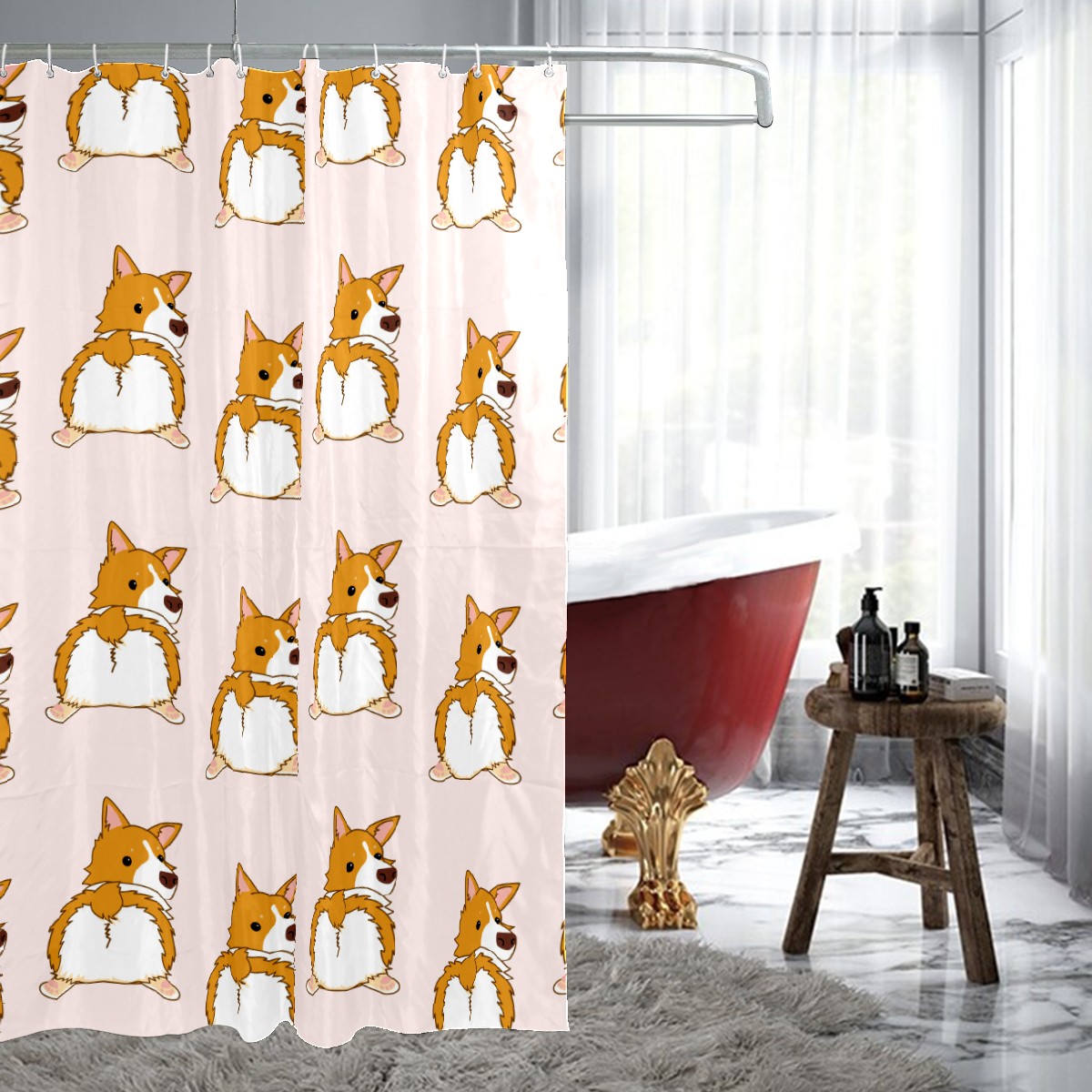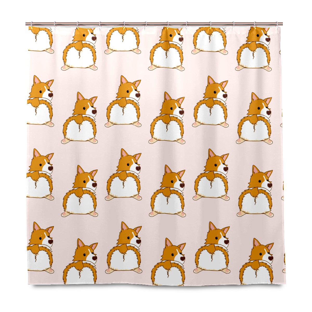 Shower Curtains for Bathroom Corgi Dog Pattern Waterproof Polyester 60 x 72 inches Bathroom Curtains for Girls Boys with 12 Hooks