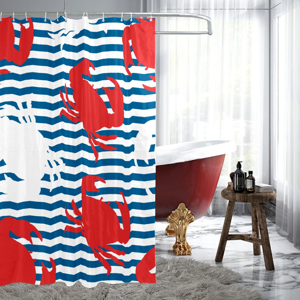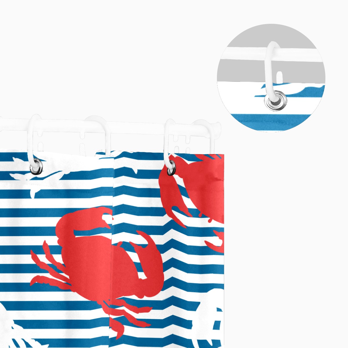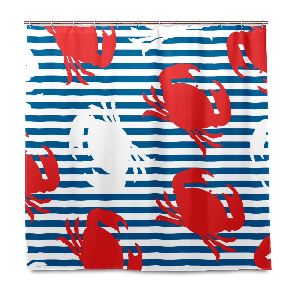 Shower Curtains for Bathroom Crab Pattern Blue White Blue Stripes Waterproof Polyester 60 x 72 inches Bathroom Curtains for Girls Boys with 12 Hooks