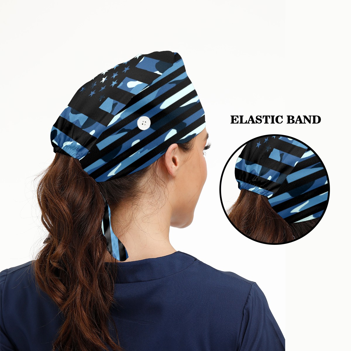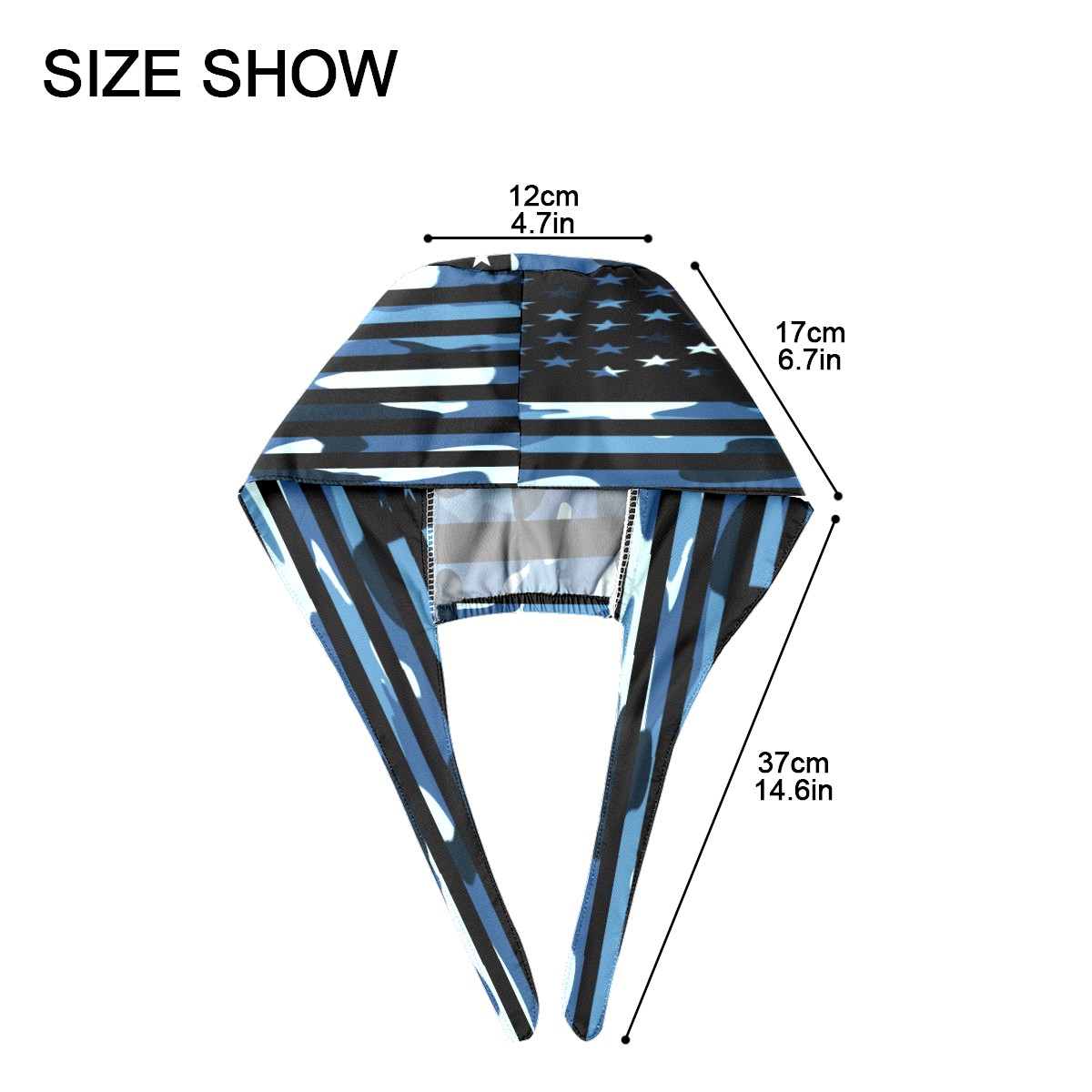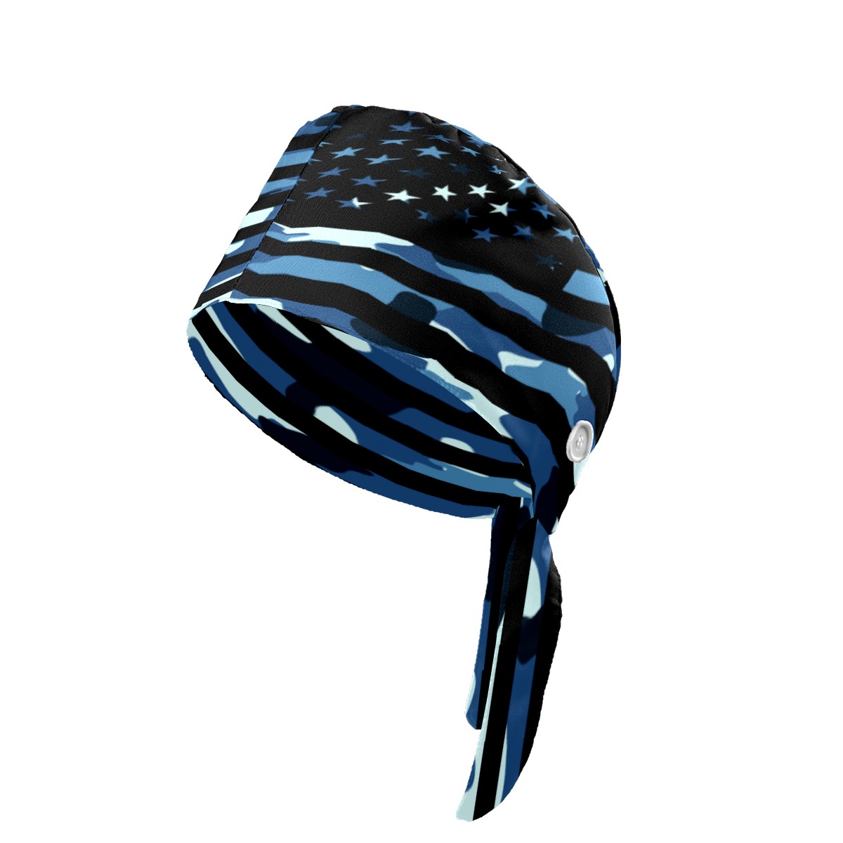 One Size Working Cap for Women Men Sweatband Adjustable Tie Back Printed Headwear Black Blue Camouflage Camo American USA Flag