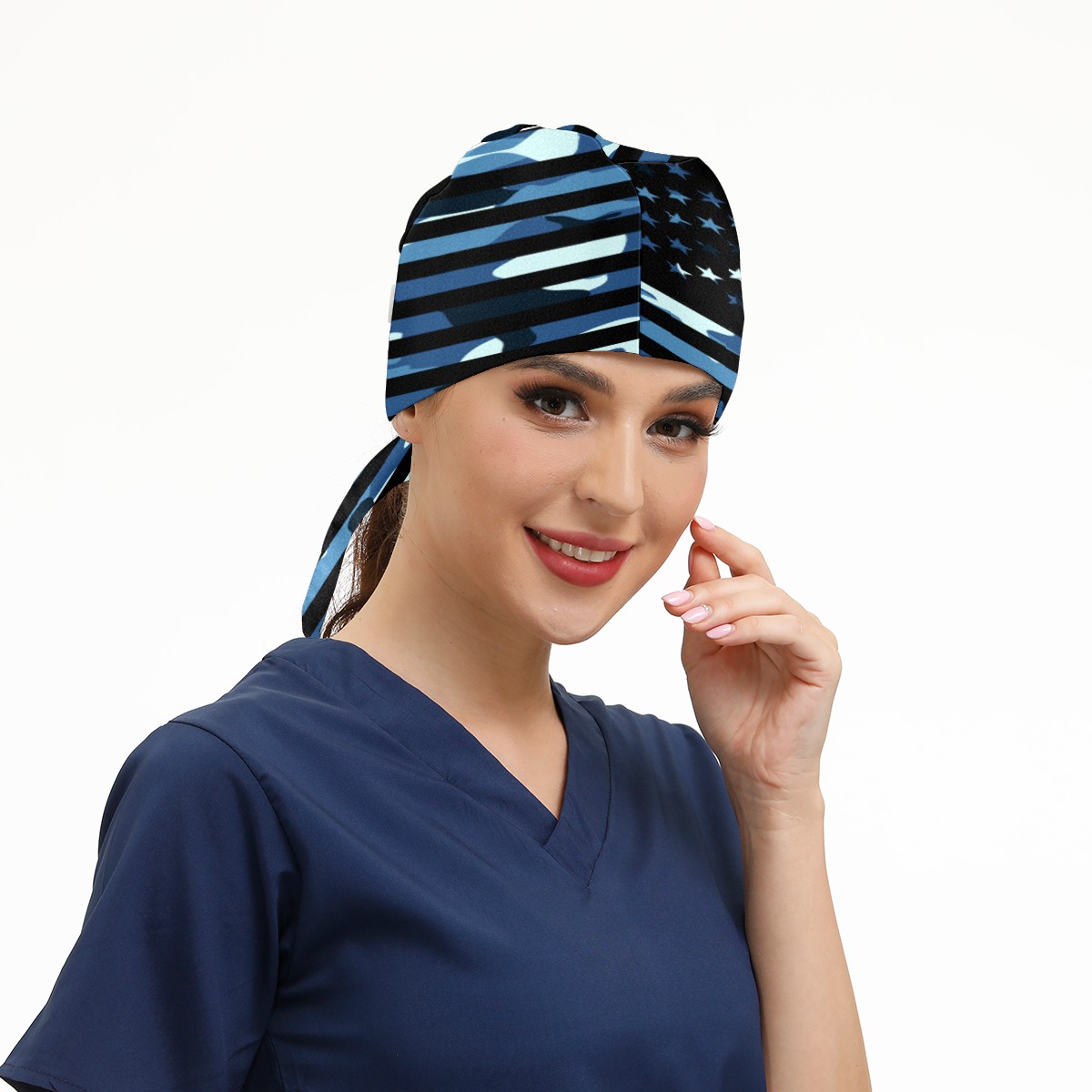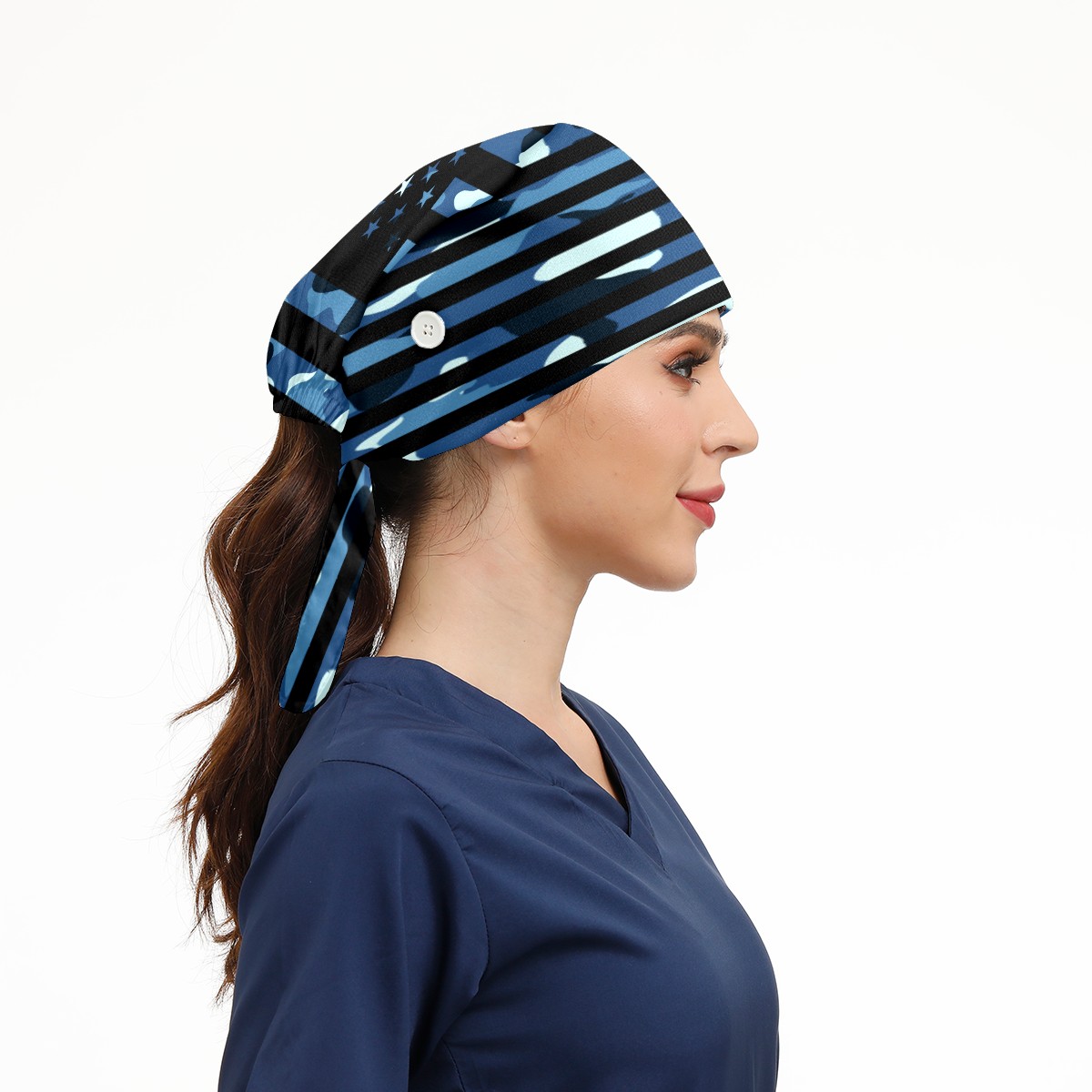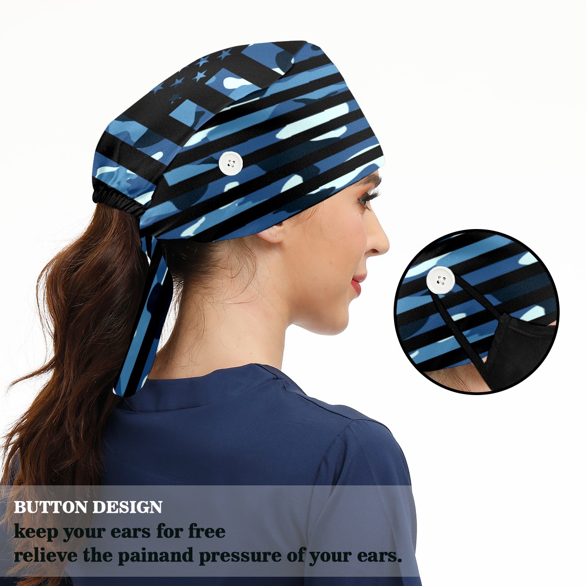 One Size Working Cap for Women Men Sweatband Adjustable Tie Back Printed Headwear Black Blue Camouflage Camo American USA Flag