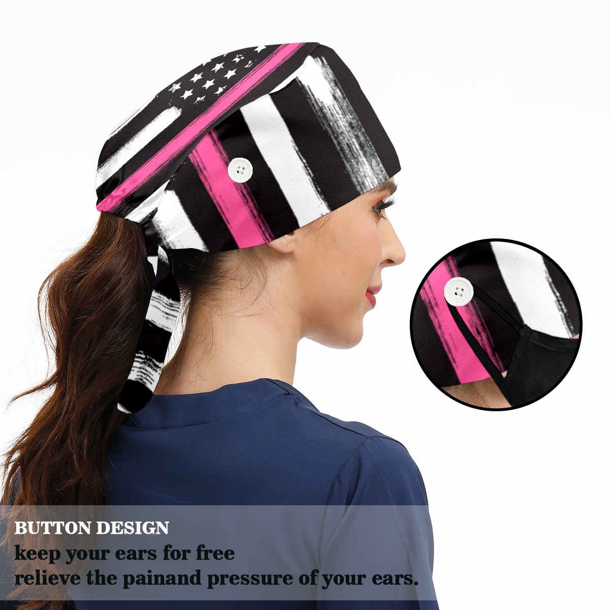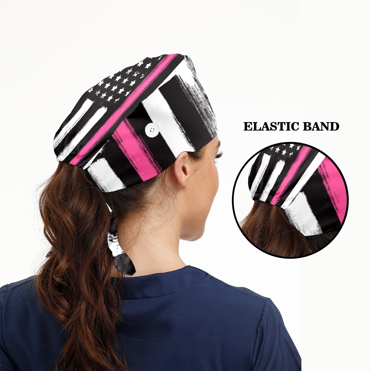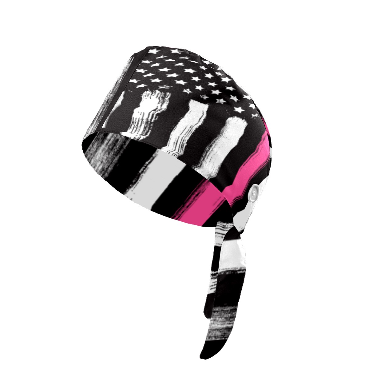 One Size Working Cap for Women Men Sweatband Adjustable Tie Back Printed Headwear American Flag Thin Pink Line