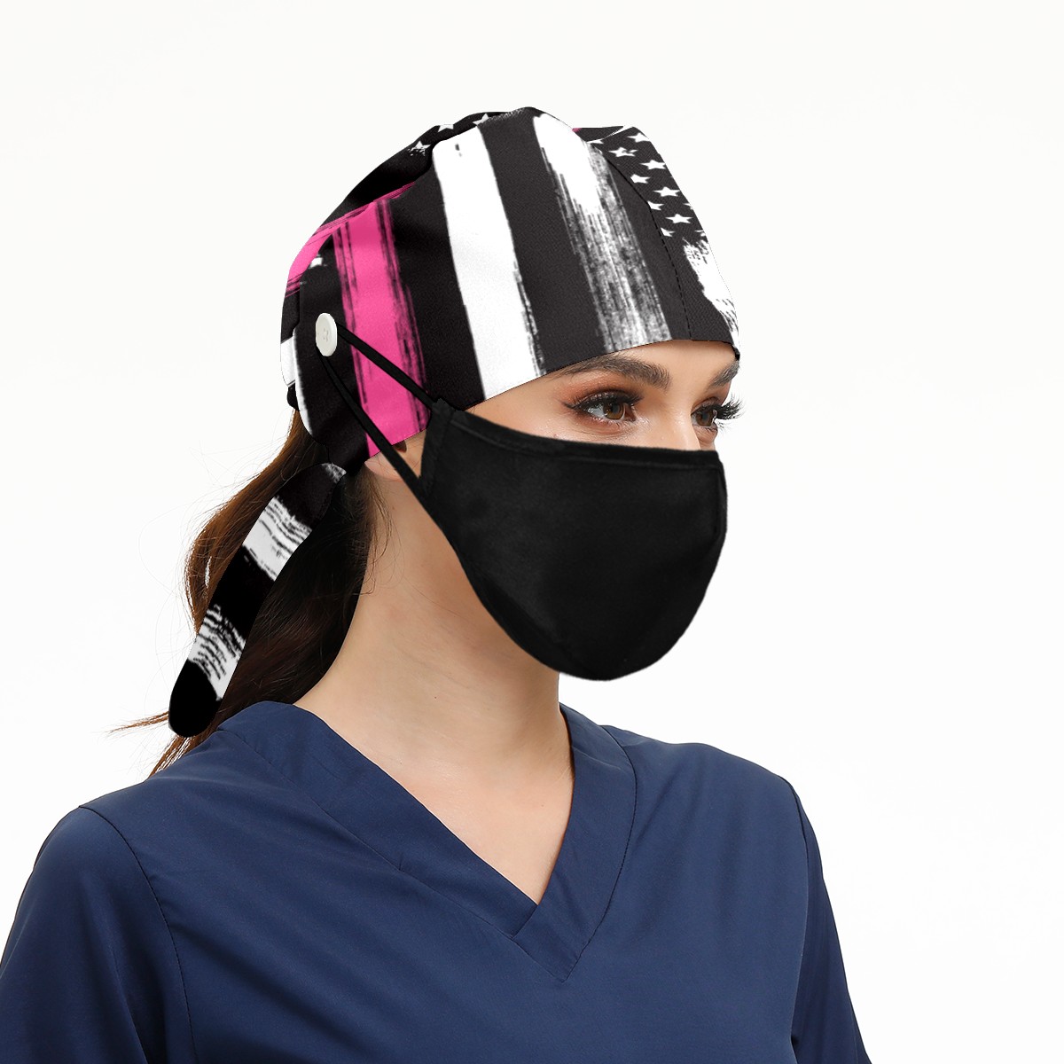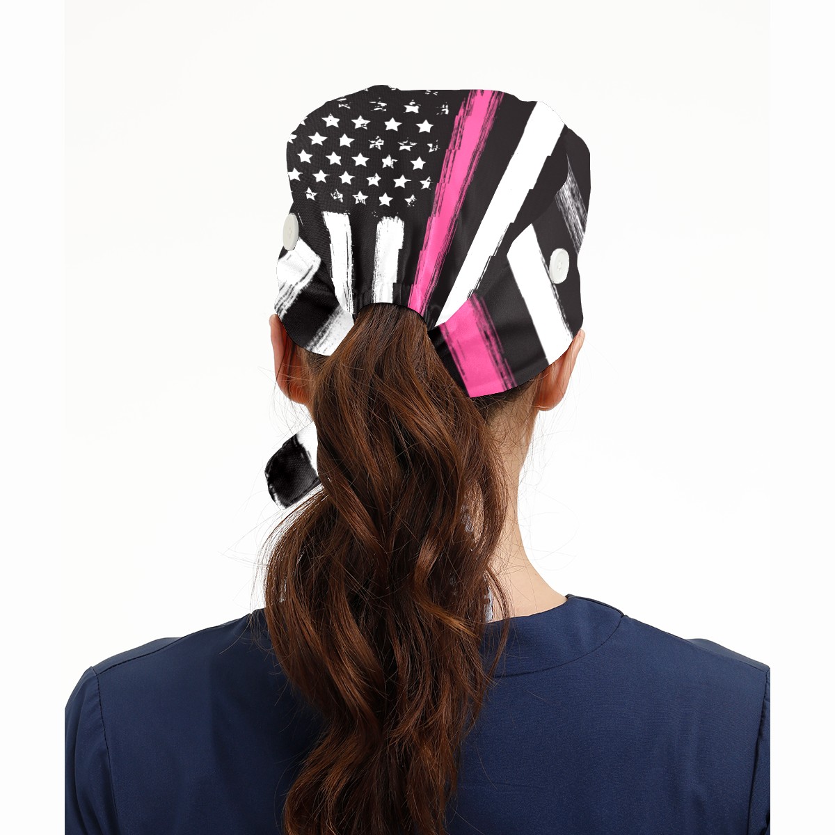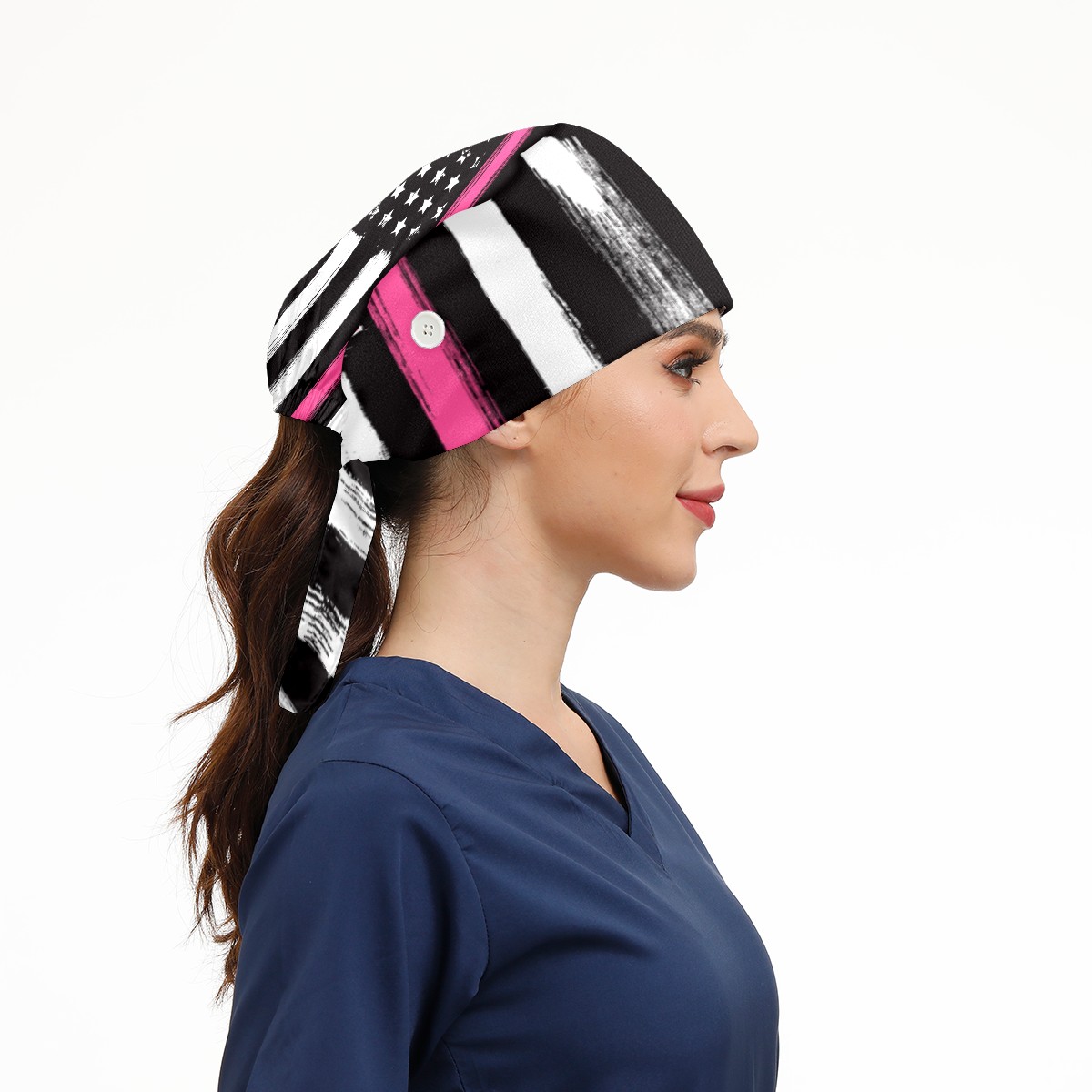 One Size Working Cap for Women Men Sweatband Adjustable Tie Back Printed Headwear American Flag Thin Pink Line