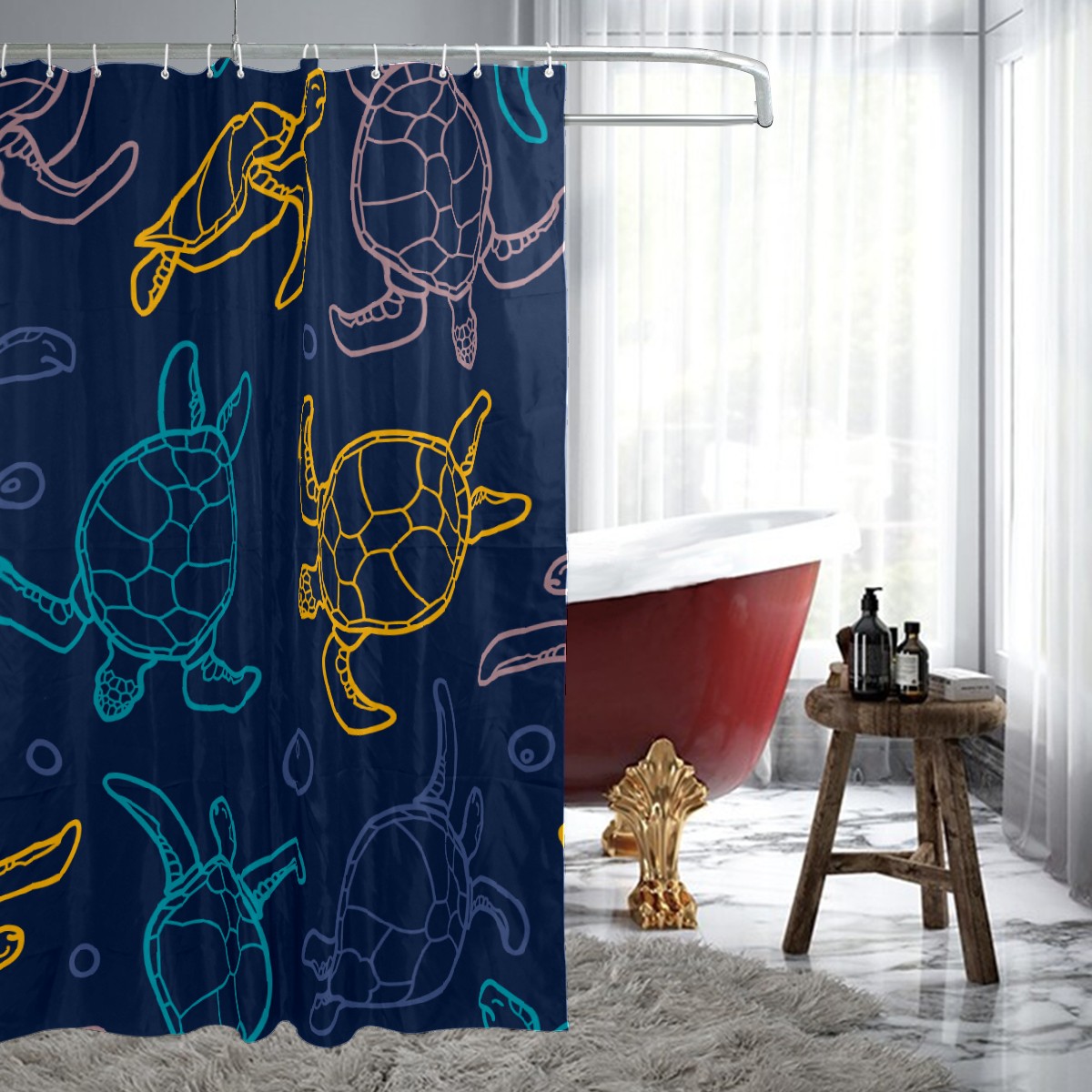 Shower Curtains for Bathroom Colorful Sea Turtle Pattern Waterproof Polyester 60 x 72 inches Bathroom Curtains for Girls Boys with 12 Hooks
