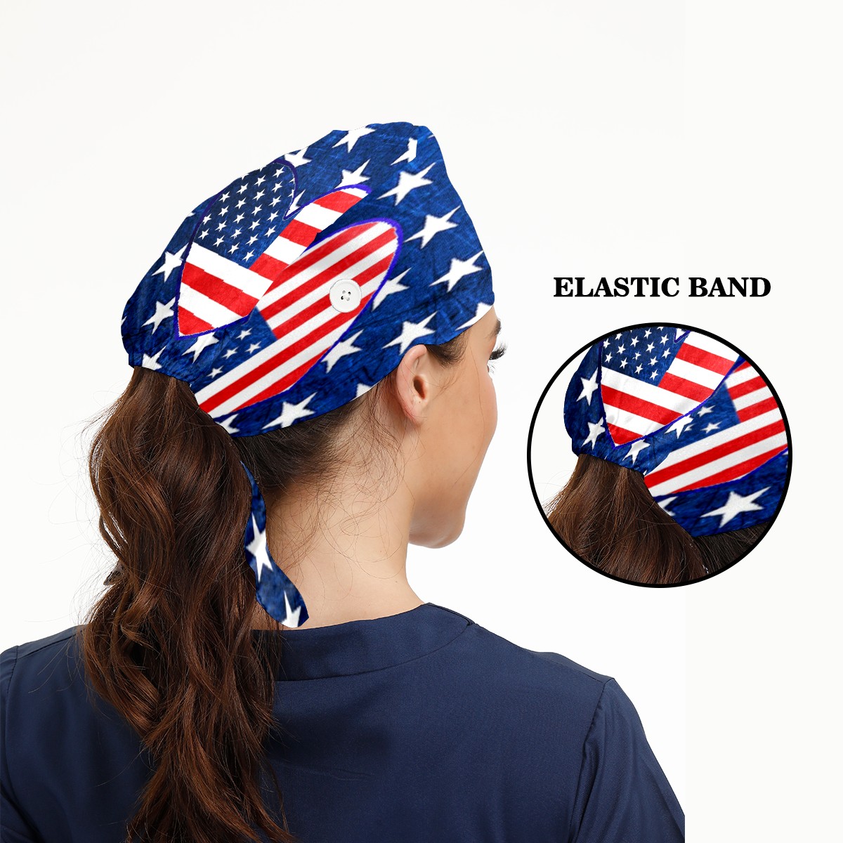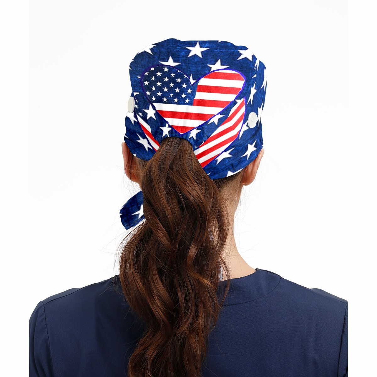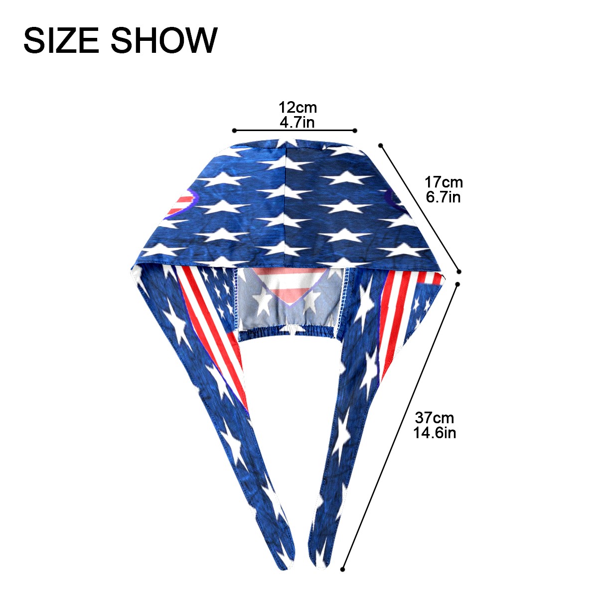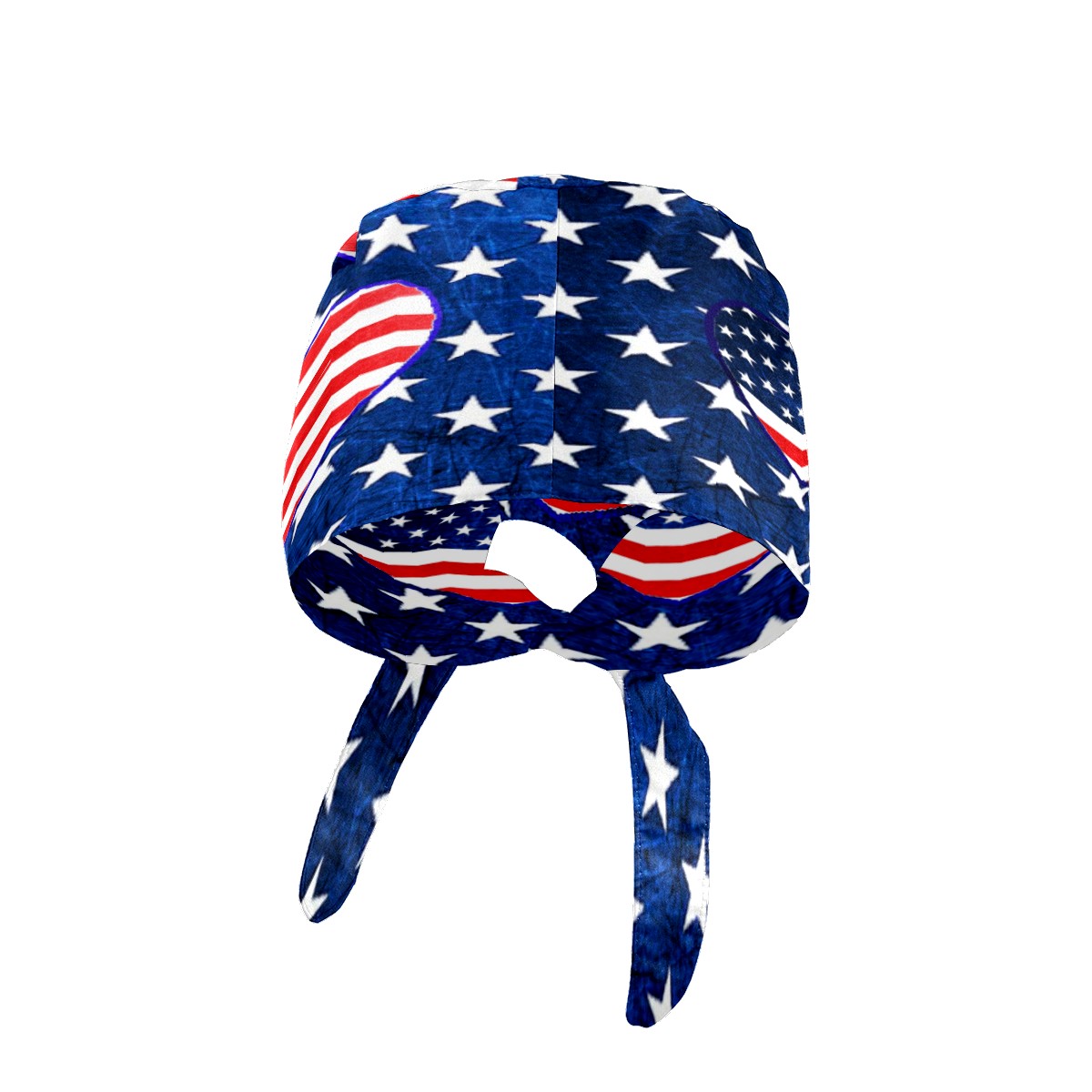 One Size Working Cap for Women Men Sweatband Adjustable Tie Back Printed Headwear American Flag Heart Red White Blue