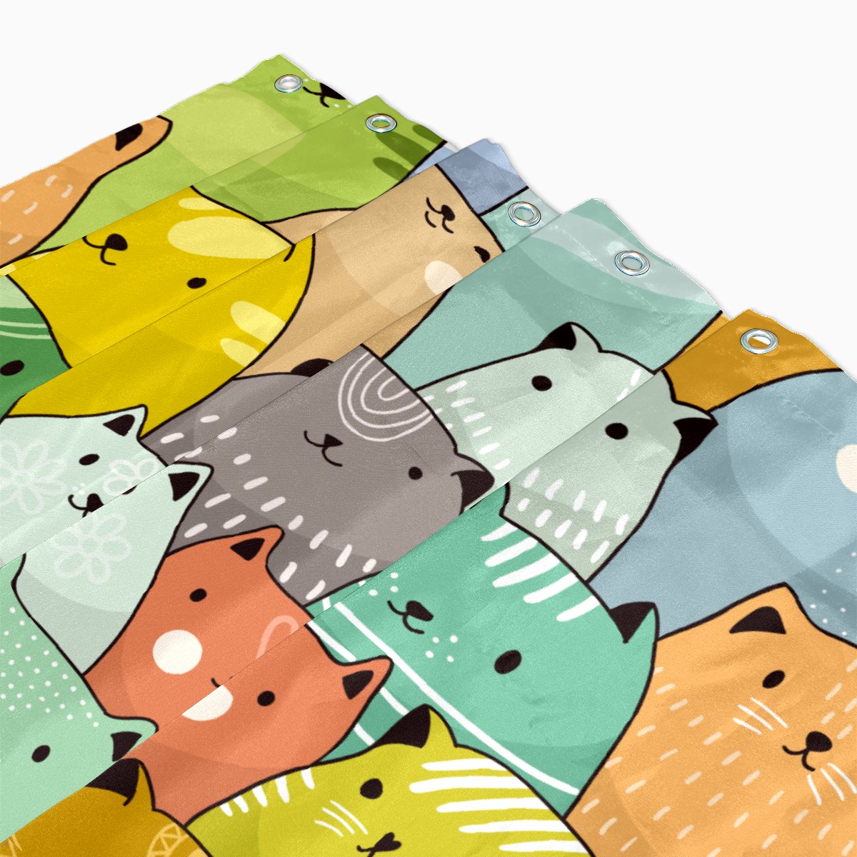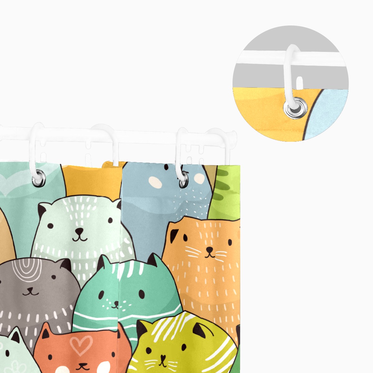 Shower Curtains for Bathroom Colorful Funny Cat Face Pattern Waterproof Polyester 60 x 72 inches Bathroom Curtains for Girls Boys with 12 Hooks