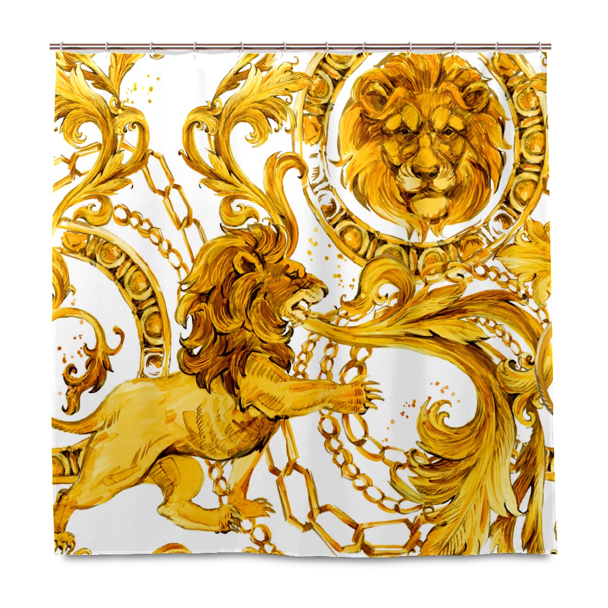Shower Curtains for Bathroom Cartoon Golden Lion King Waterproof Polyester 60 x 72 inches Bathroom Curtains for Girls Boys with 12 Hooks
