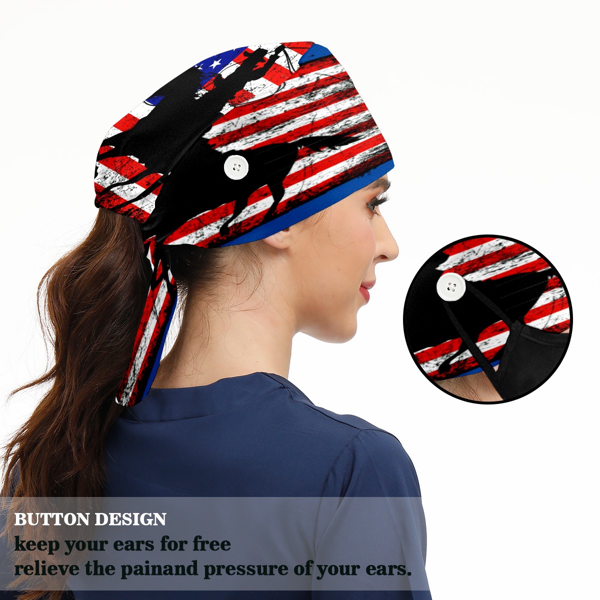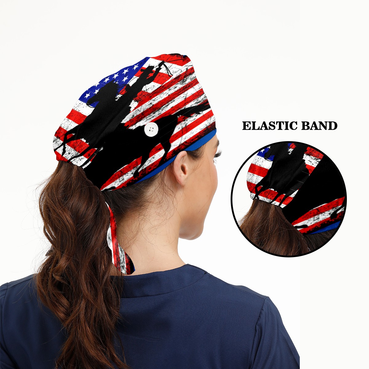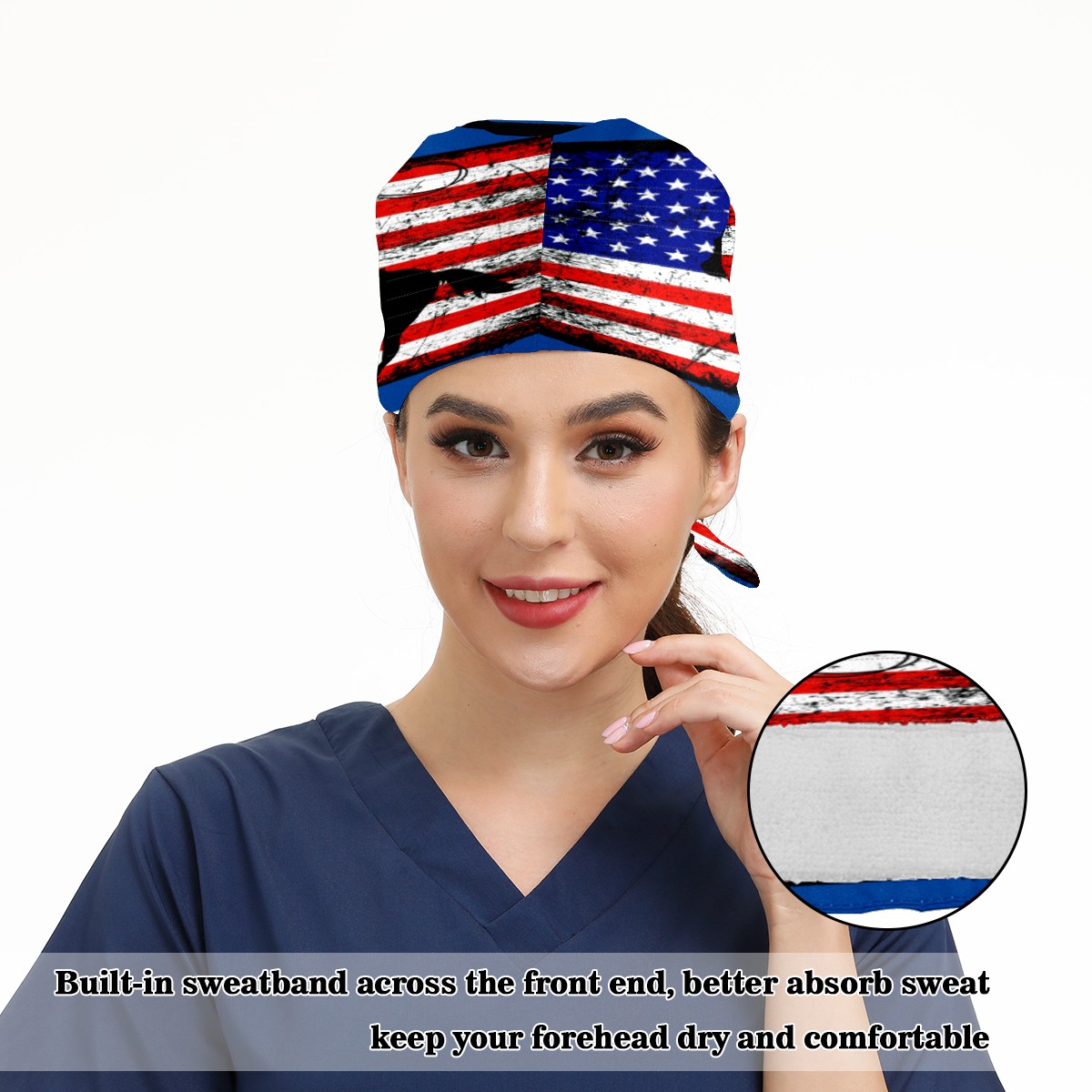 One Size Working Cap for Women Men Sweatband Adjustable Tie Back Printed Headwear American Flag Cowboy