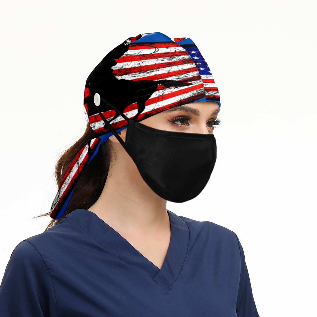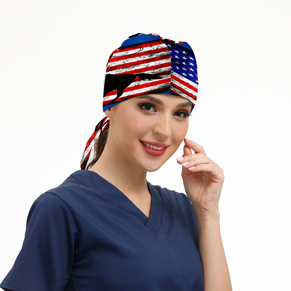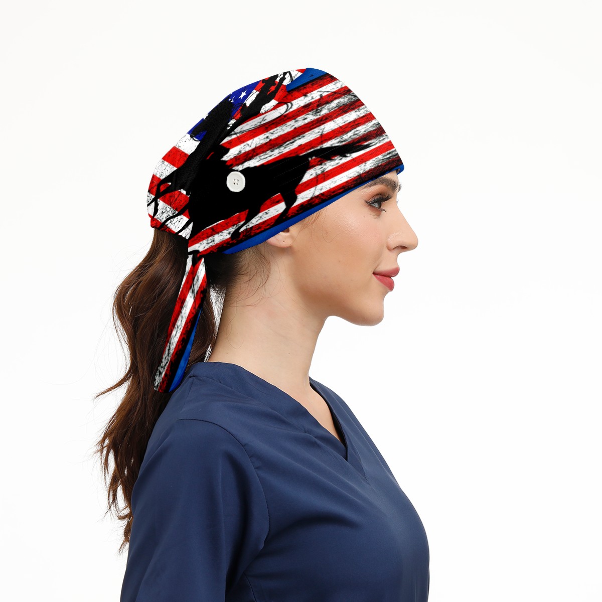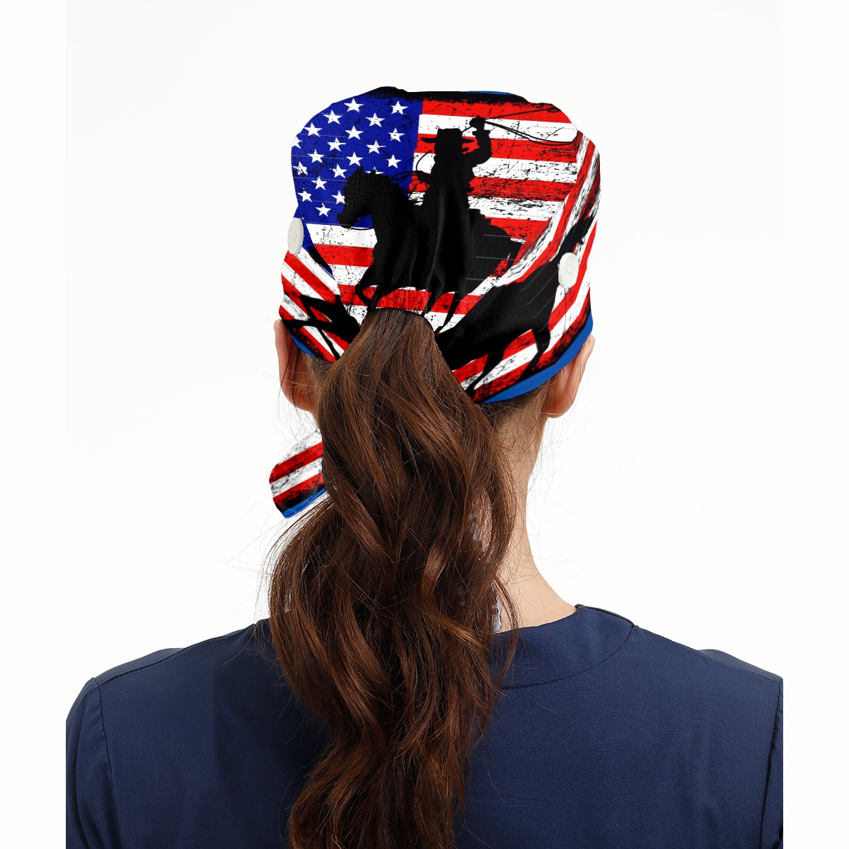 One Size Working Cap for Women Men Sweatband Adjustable Tie Back Printed Headwear American Flag Cowboy