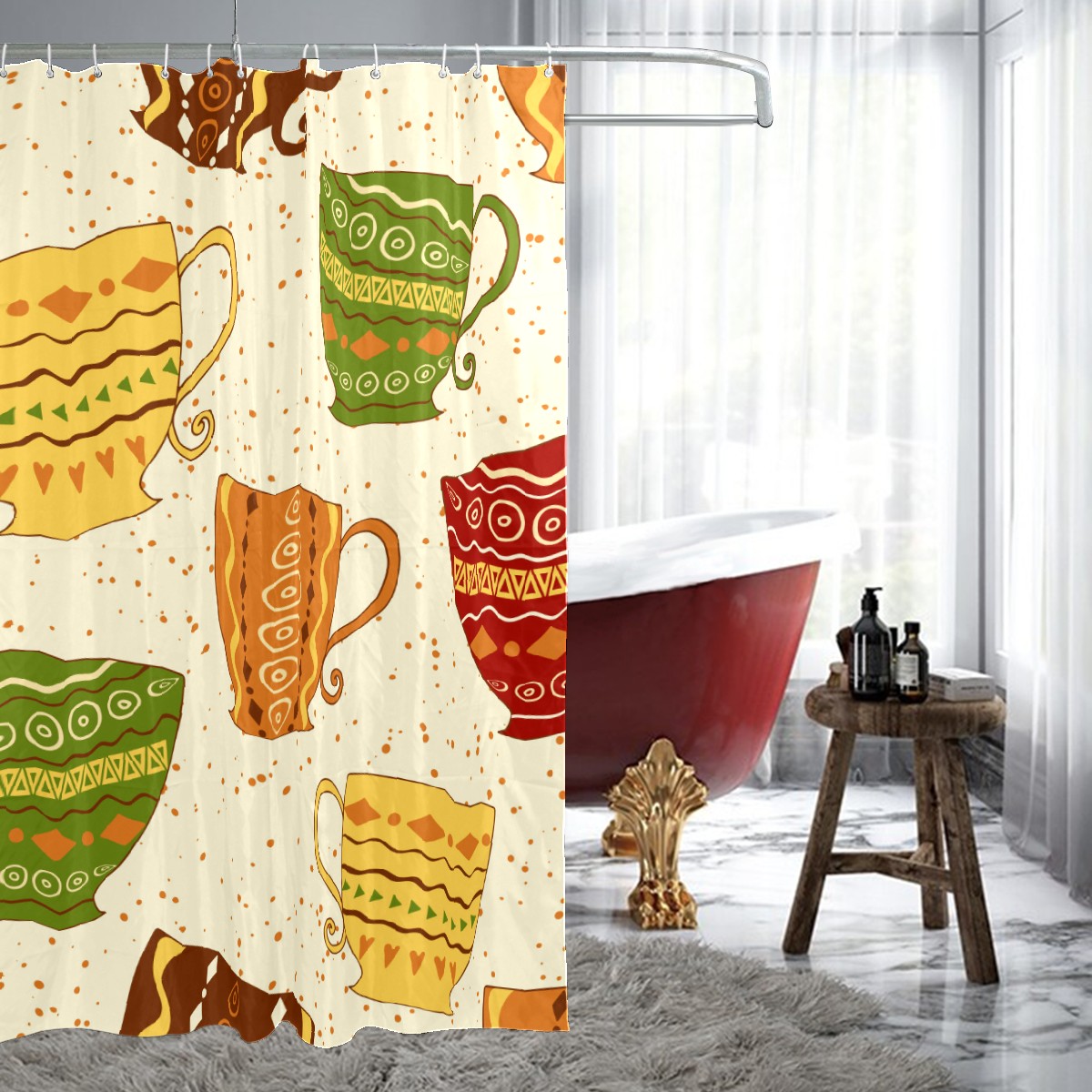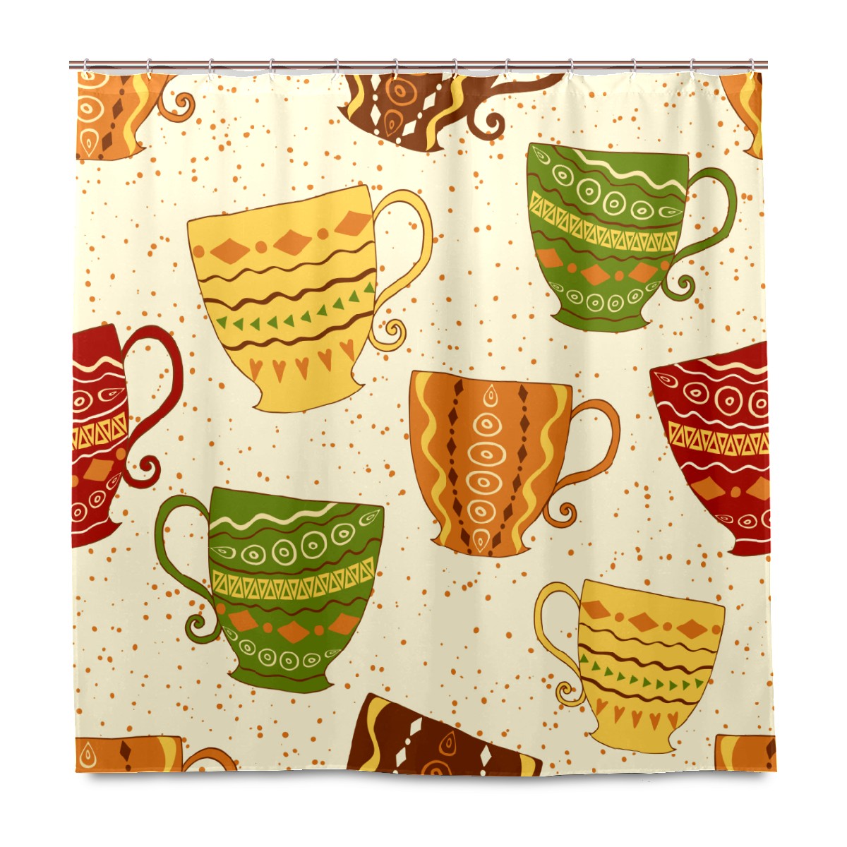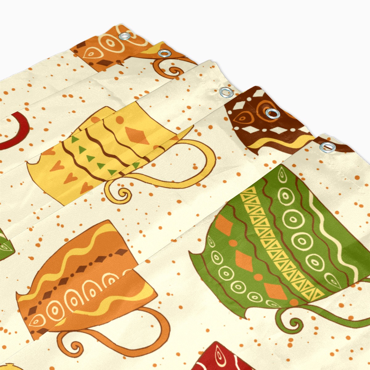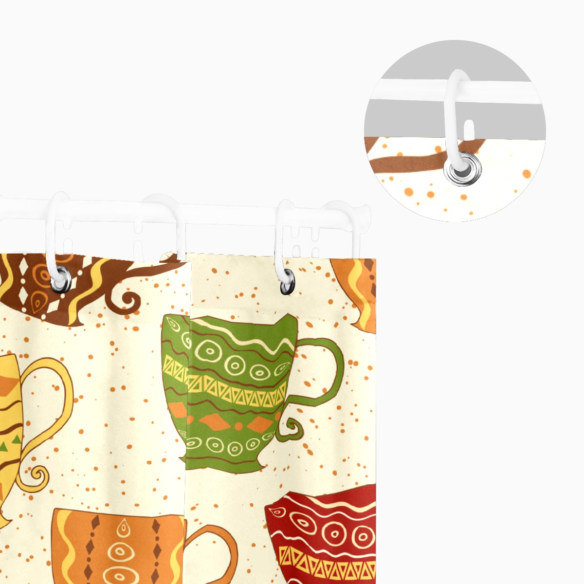 Shower Curtains for Bathroom Colorful Ethnic Tea Cup Boho Pattern Waterproof Polyester 60 x 72 inches Bathroom Curtains for Girls Boys with 12 Hooks