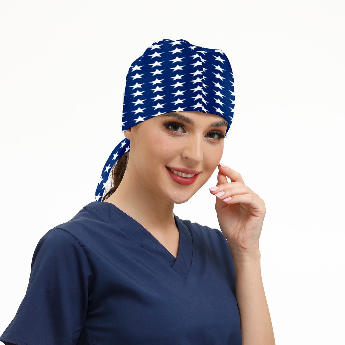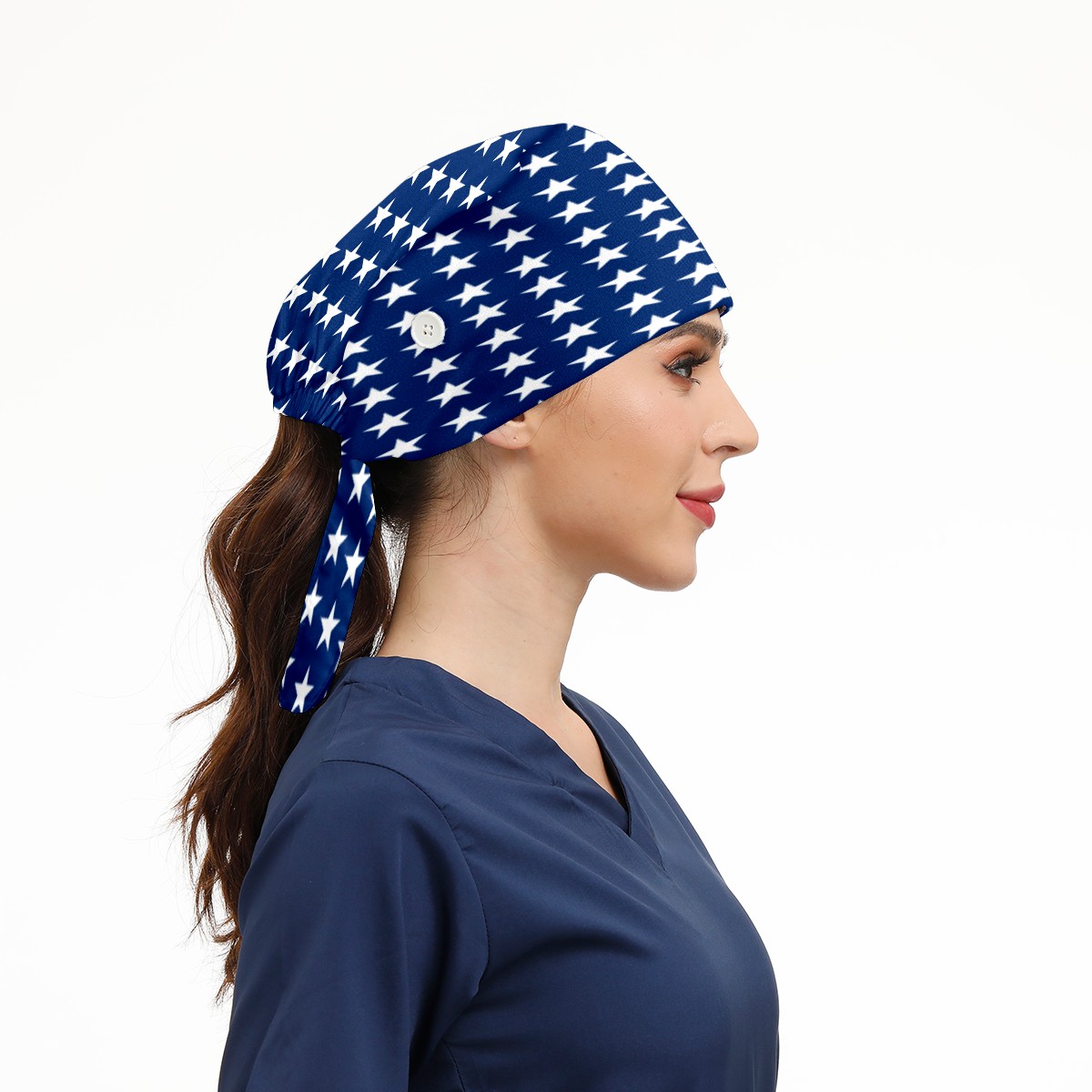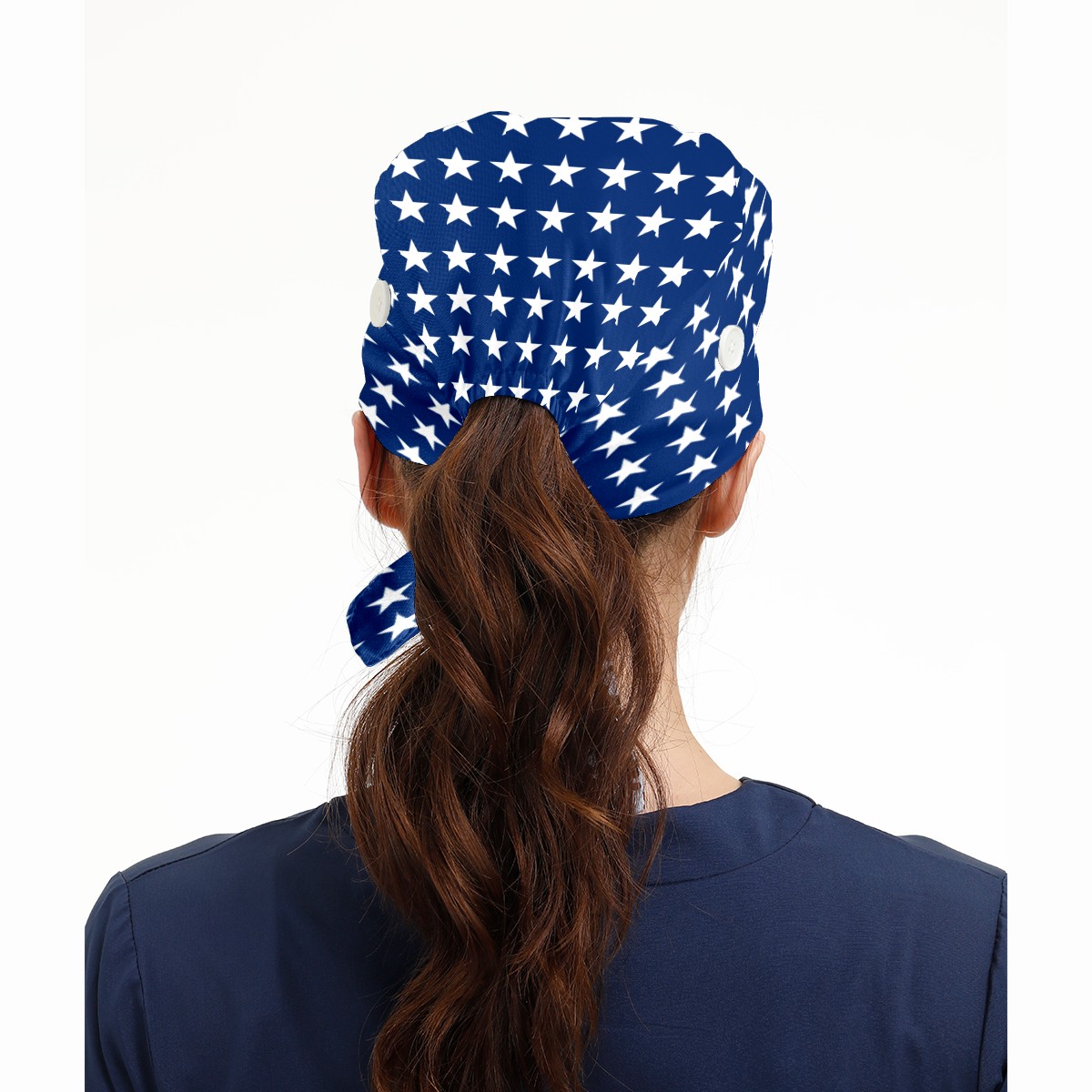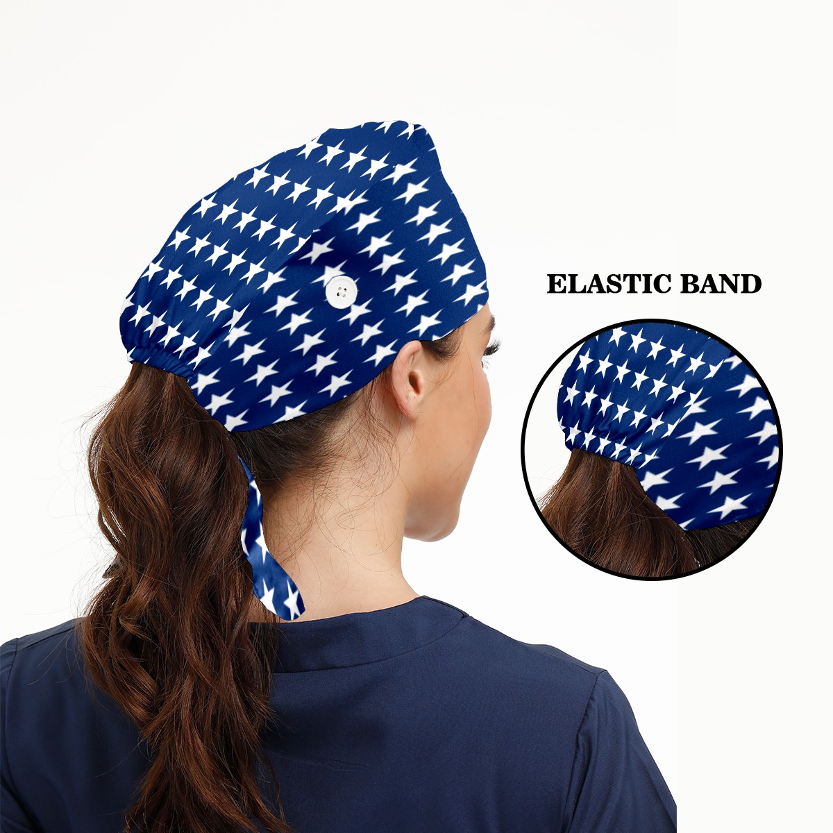 One Size Working Cap for Women Men Sweatband Adjustable Tie Back Printed Headwear American Flag Blue White Stars Pattern