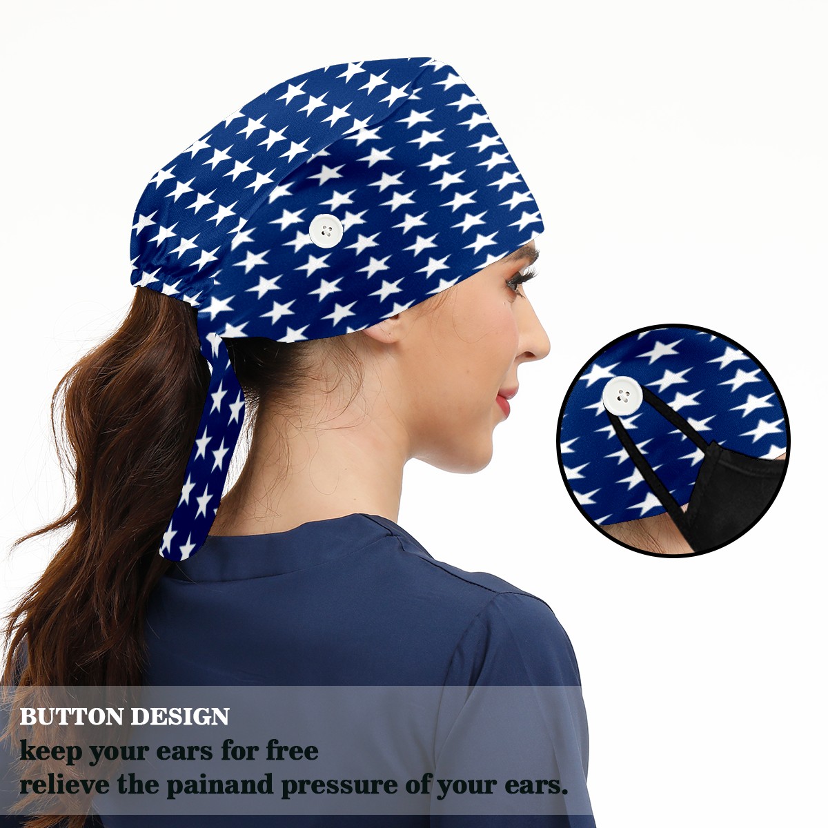 <p><b>Upgrade Working Cap with Buttons Adjustable Bouffant Working Hats with Sweatband Headwear for Womens Mens Boys Girls</b></p><p><b>Size</b>:12x17x37cm/4.7x6.7x14.6inch</p><p><b>Material:</b>Cotton+Polyster</p><p><b>Features:</b></p><p>-These caps come with button design,allowing you to put the straps around the buttons and making you feel more comfortable, hats with adjustable back tie can help your hair not loose, which is so convenient for your work</p><p>-Adjustable size: &nbsp;Elastic cords and cord lock for easy adjustment. You can easily adjust the tightness of the hat to suit your head shape and hair style. No matter how long and thick your hair is, this hat can completely cover it. Bandage design which you can freely adjustable as all head types and hair types of men and woman in deferent industrie</p><p>-Occasion: The cap suitable for home kitchen,&nbsp; and more. Can be used as bouffant head cover, head cap, hair cover, hair cap, hair bonnets, nighthats, shower hats, sleep hats for male and female</p><p><b>Care Instruction:&nbsp;</b>Wash in cold water&nbsp;</p>