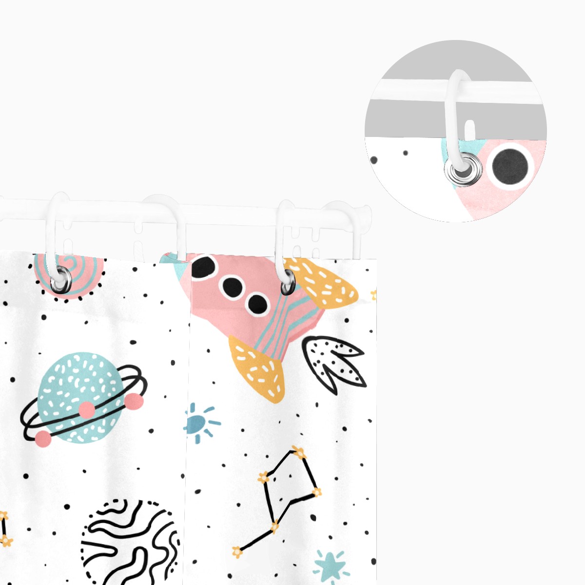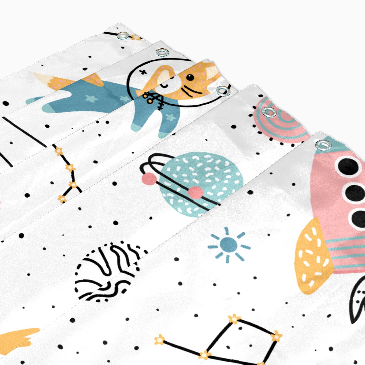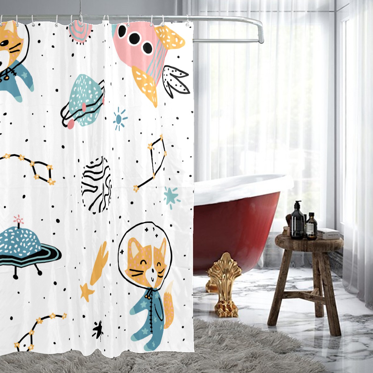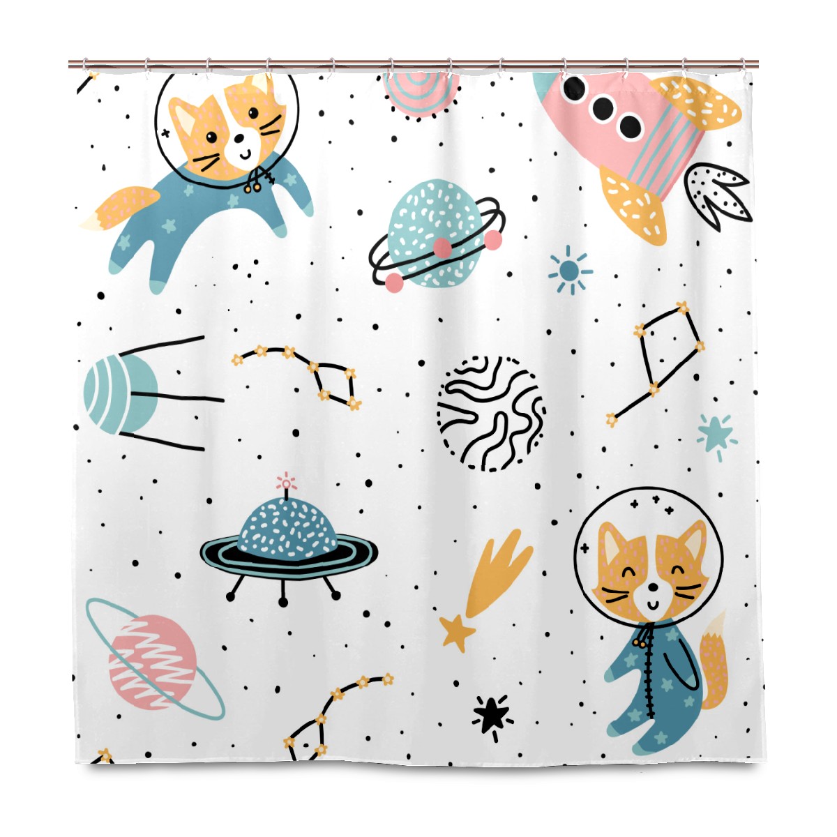 Shower Curtains for Bathroom Cartoon Outer Space Cat Rocket Planet Waterproof Polyester 60 x 72 inches Bathroom Curtains for Girls Boys with 12 Hooks